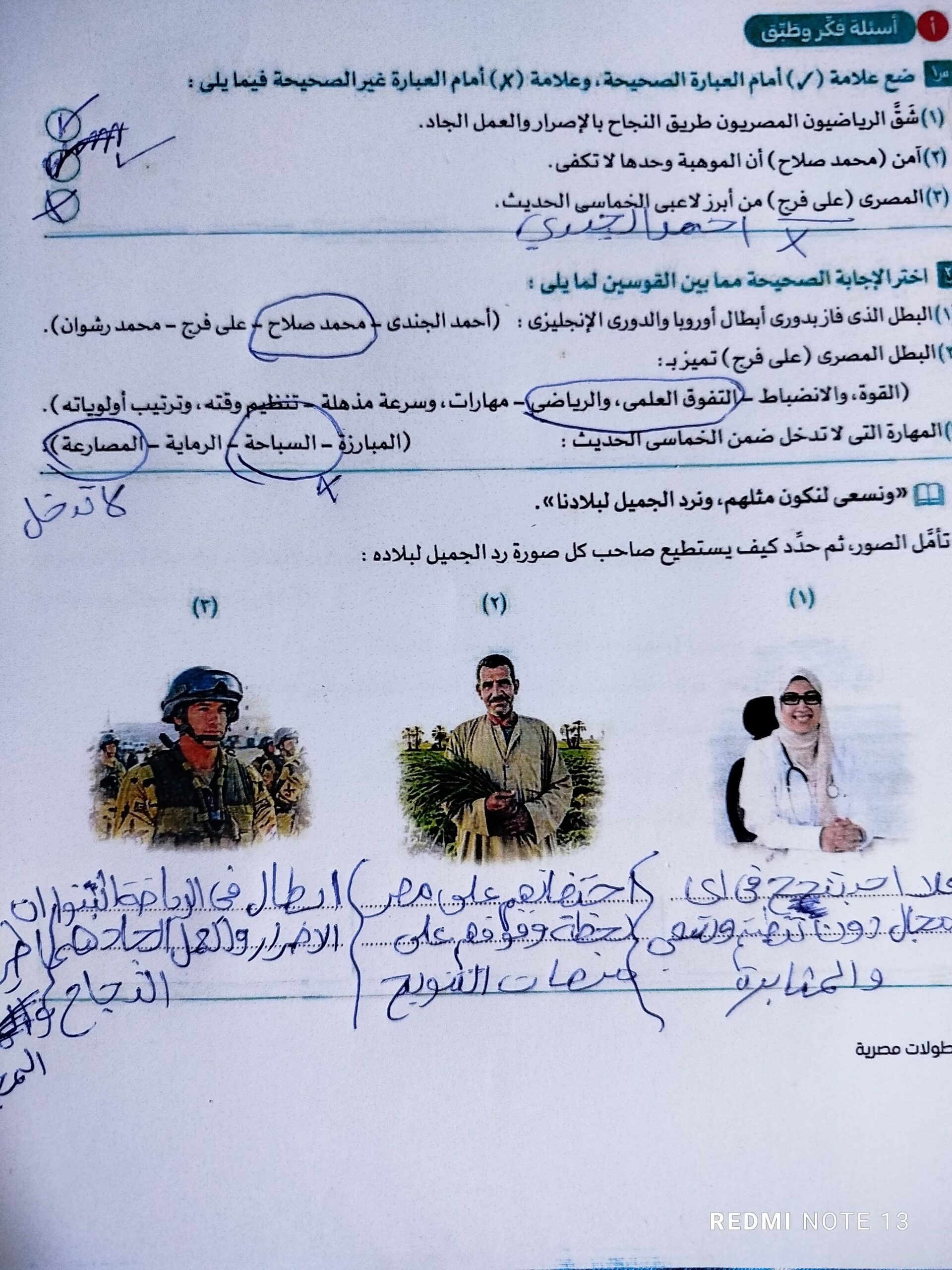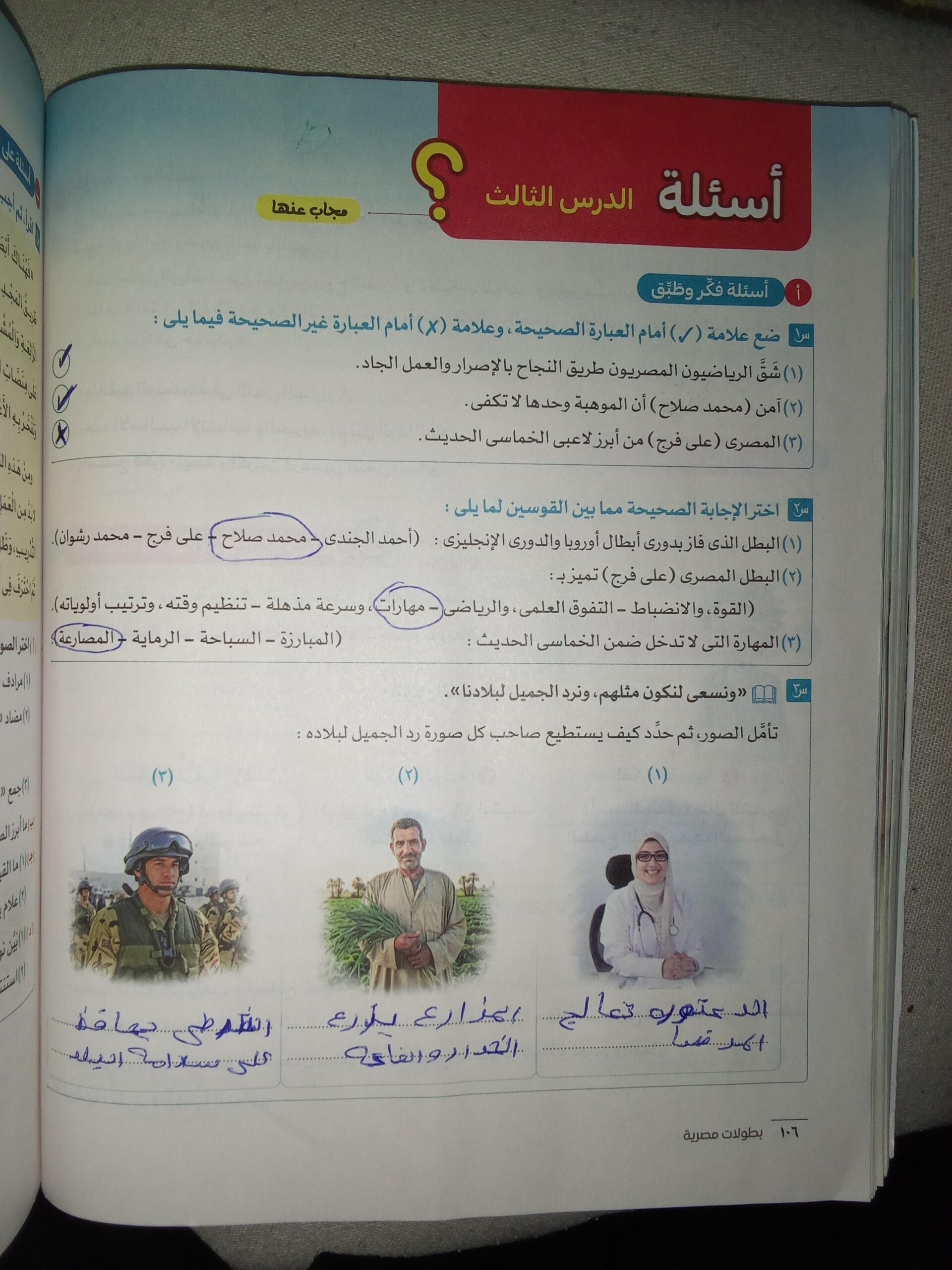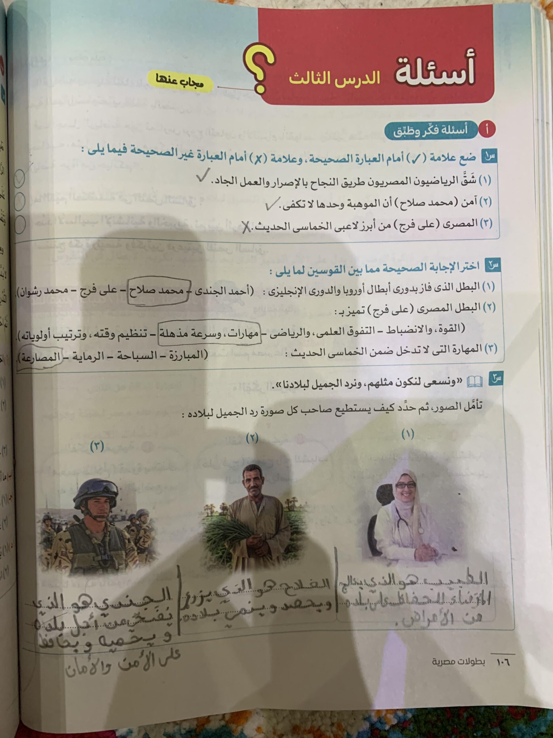 ٣) أديت عملي بإخلاص لبناء الوطن.