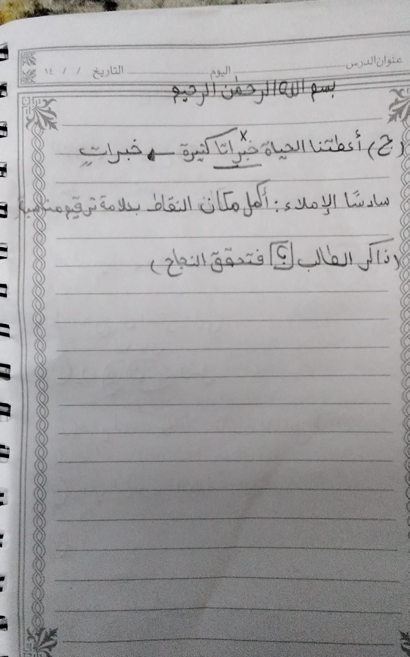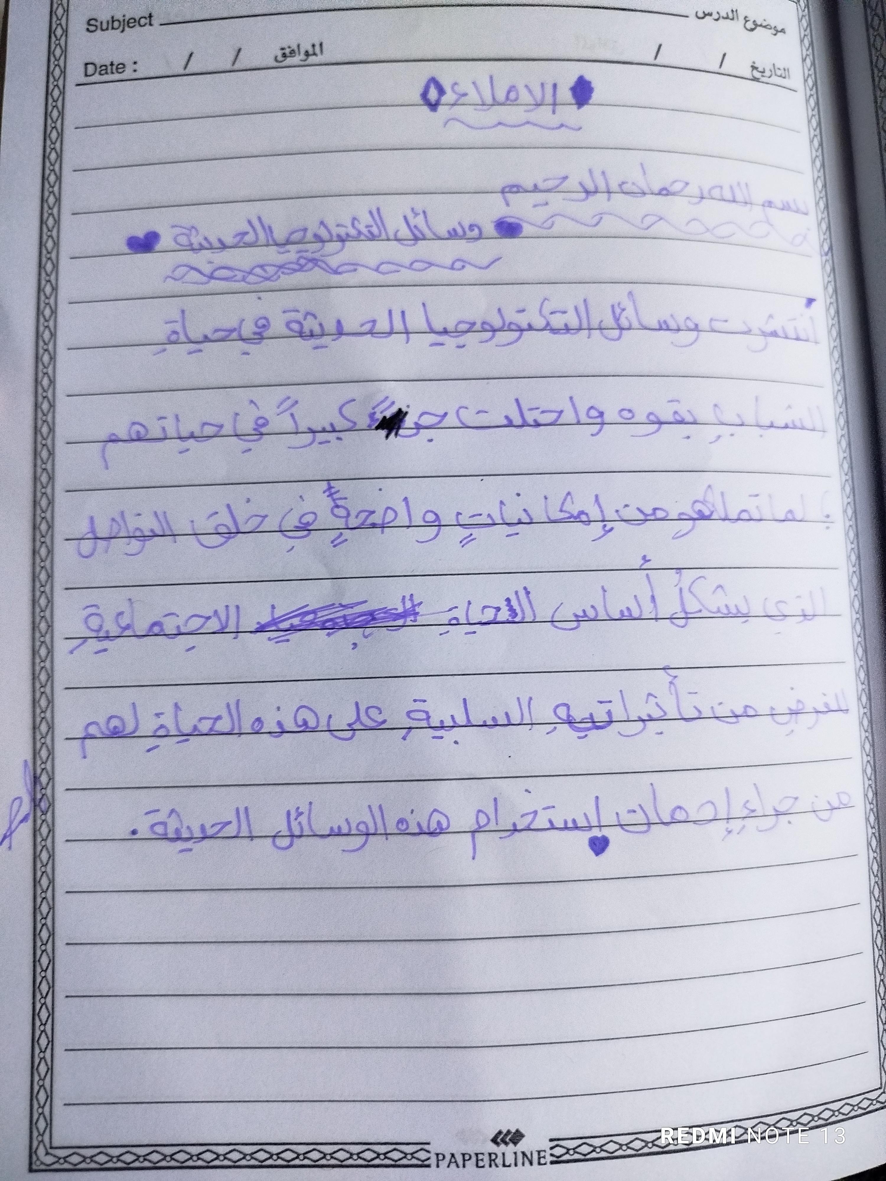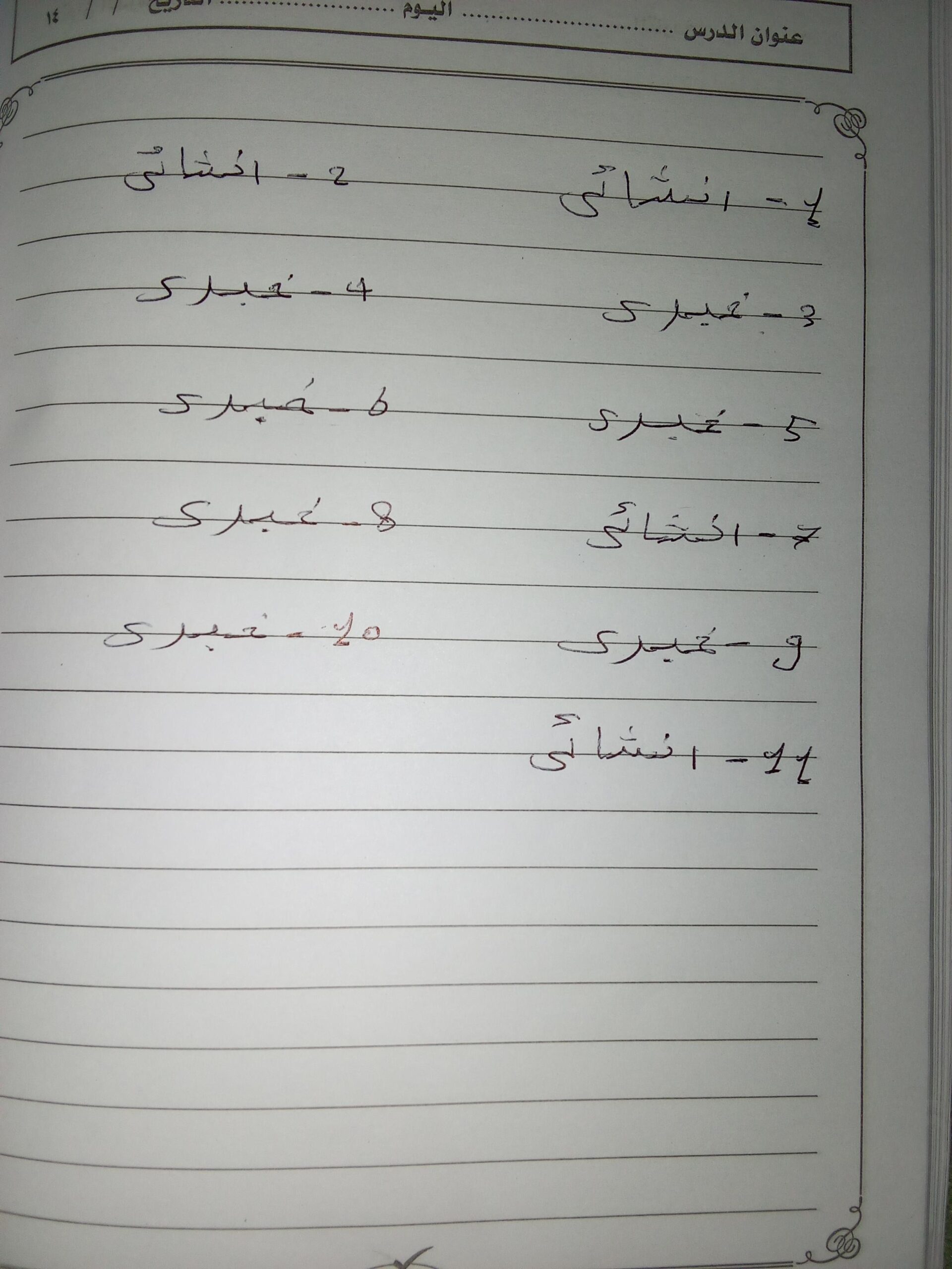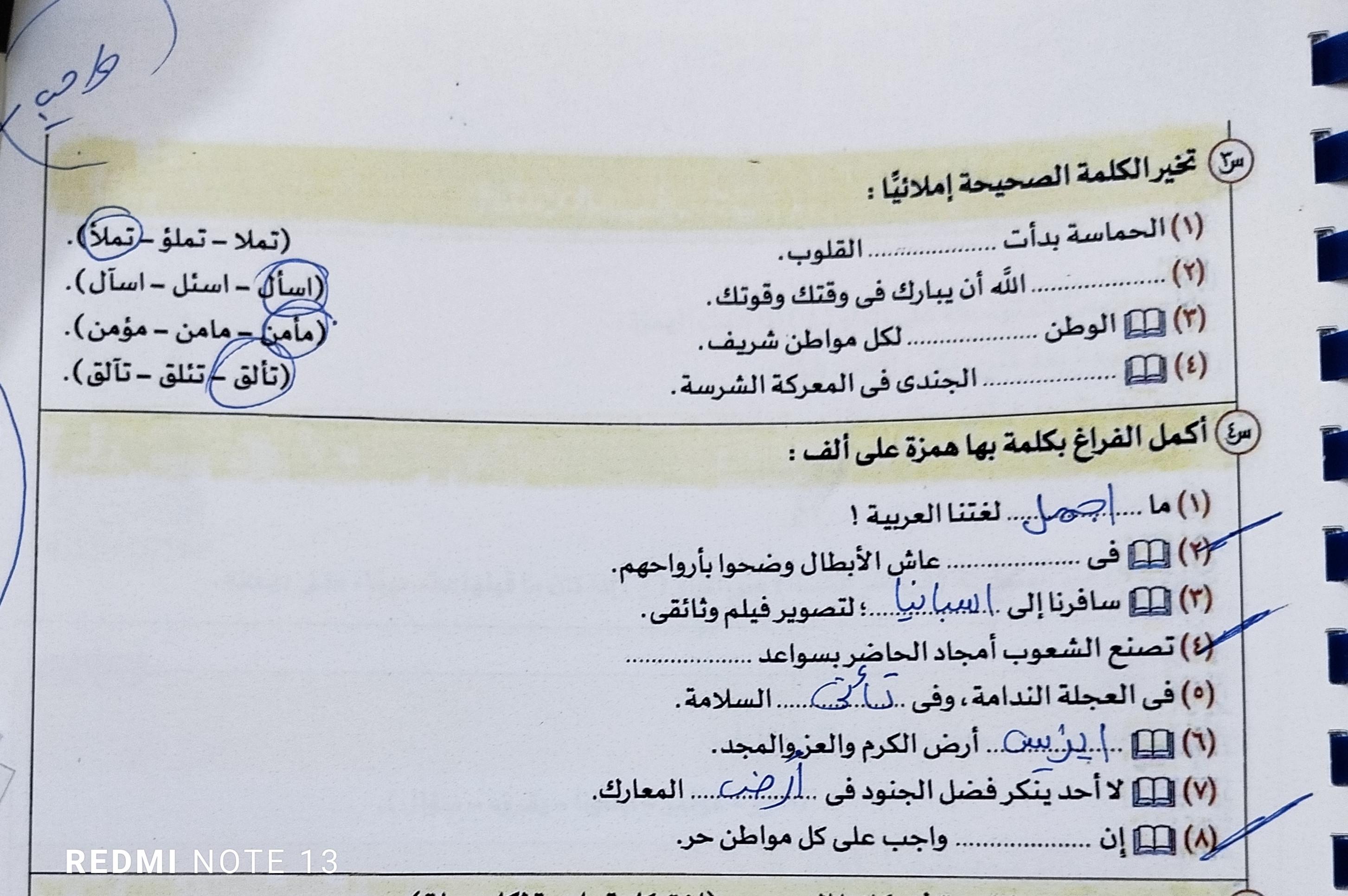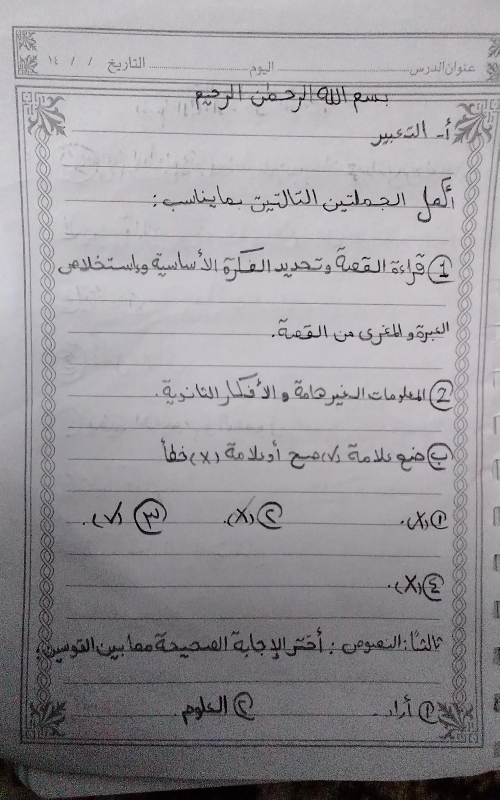 الاختبار الي من الكراسه ده التعبيري و الإملاء