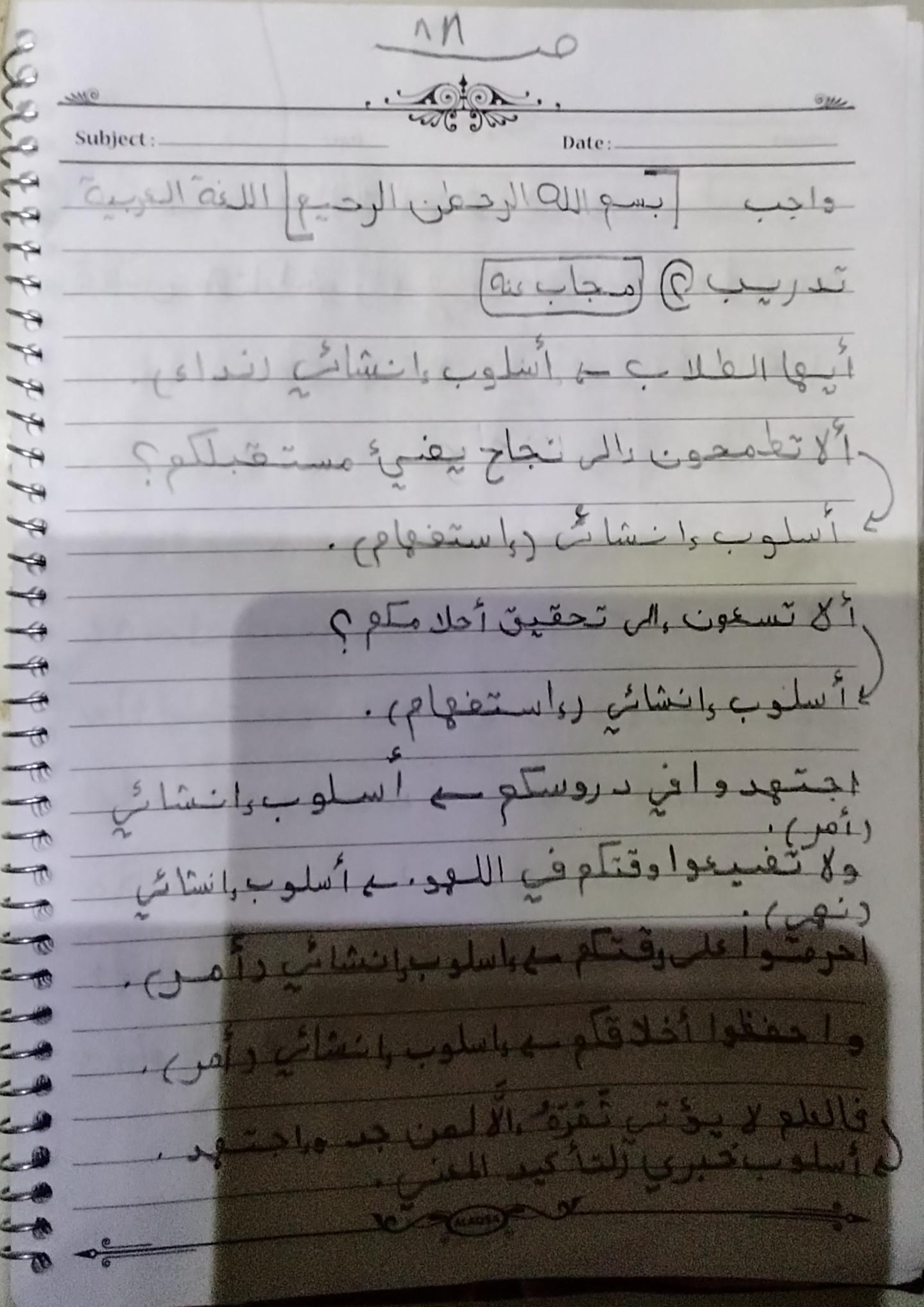 واجب اللغه العربية عبدالله أحمد 👉 👍 👇 👍