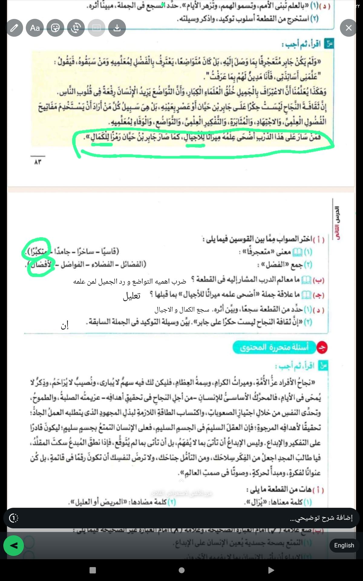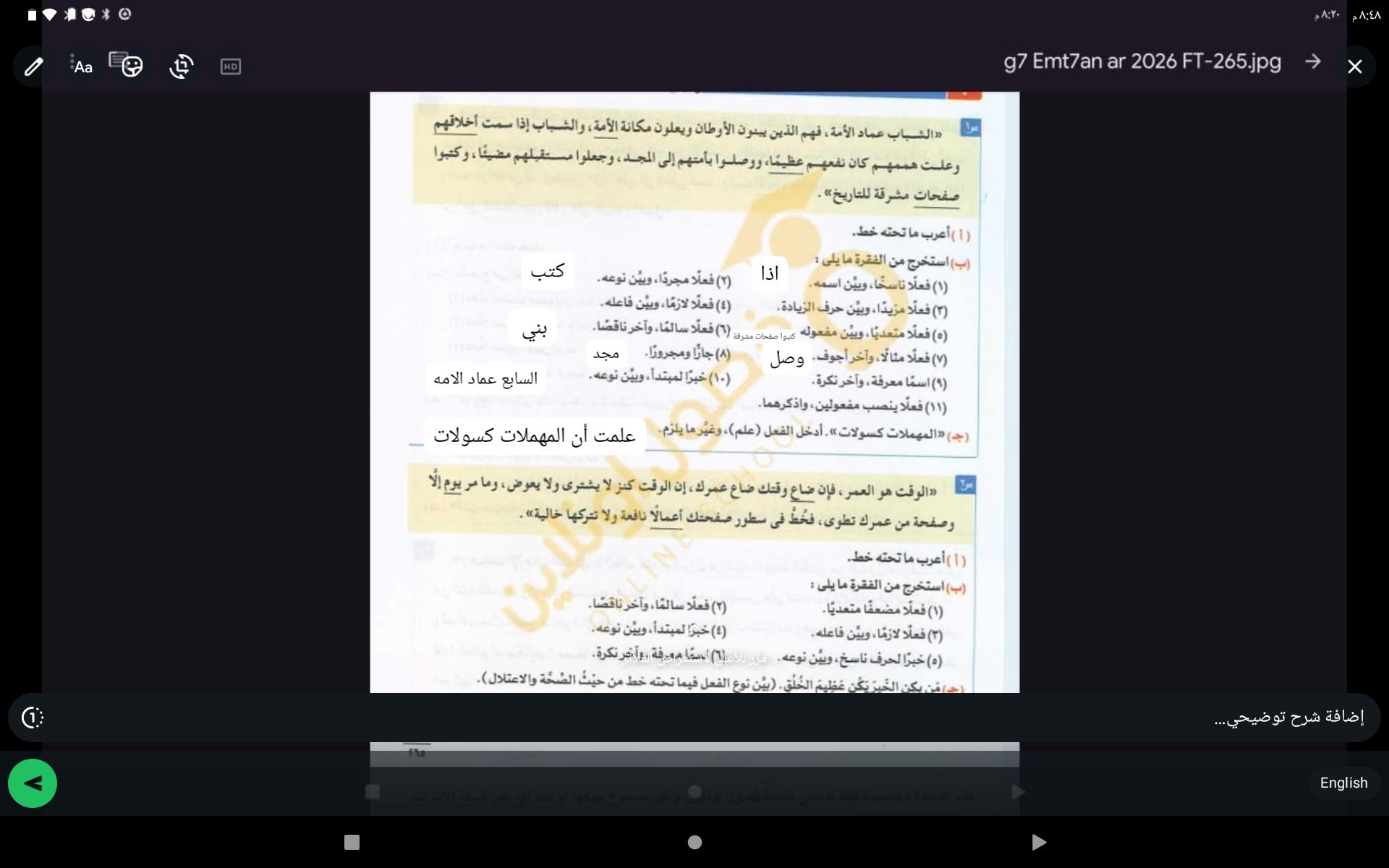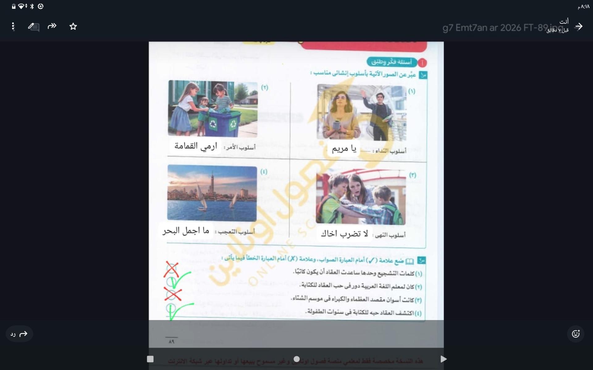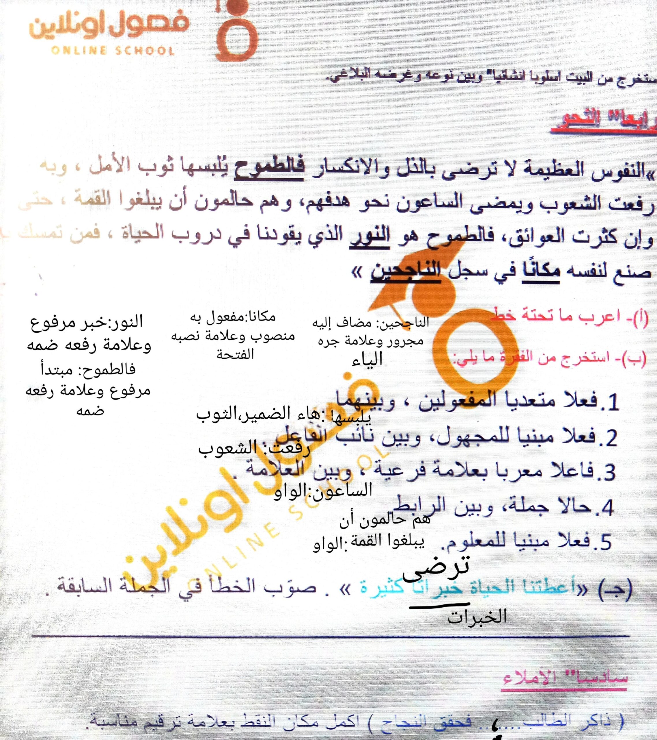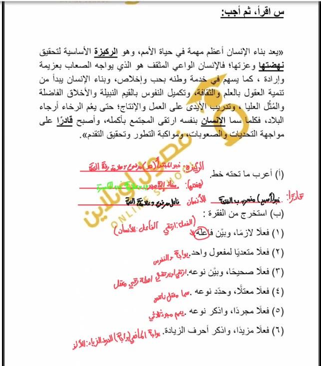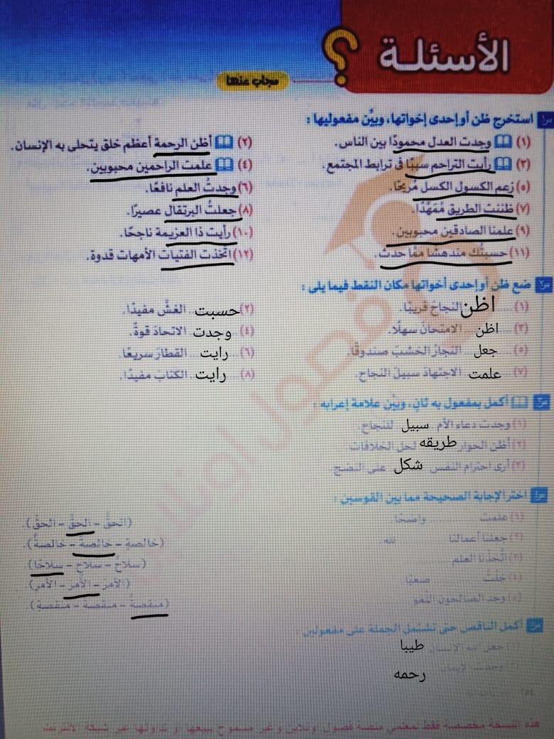 واجب اللغه العربية عبدالله أحمد 👉 👍 👇 👍 👇 👍 👇 👍