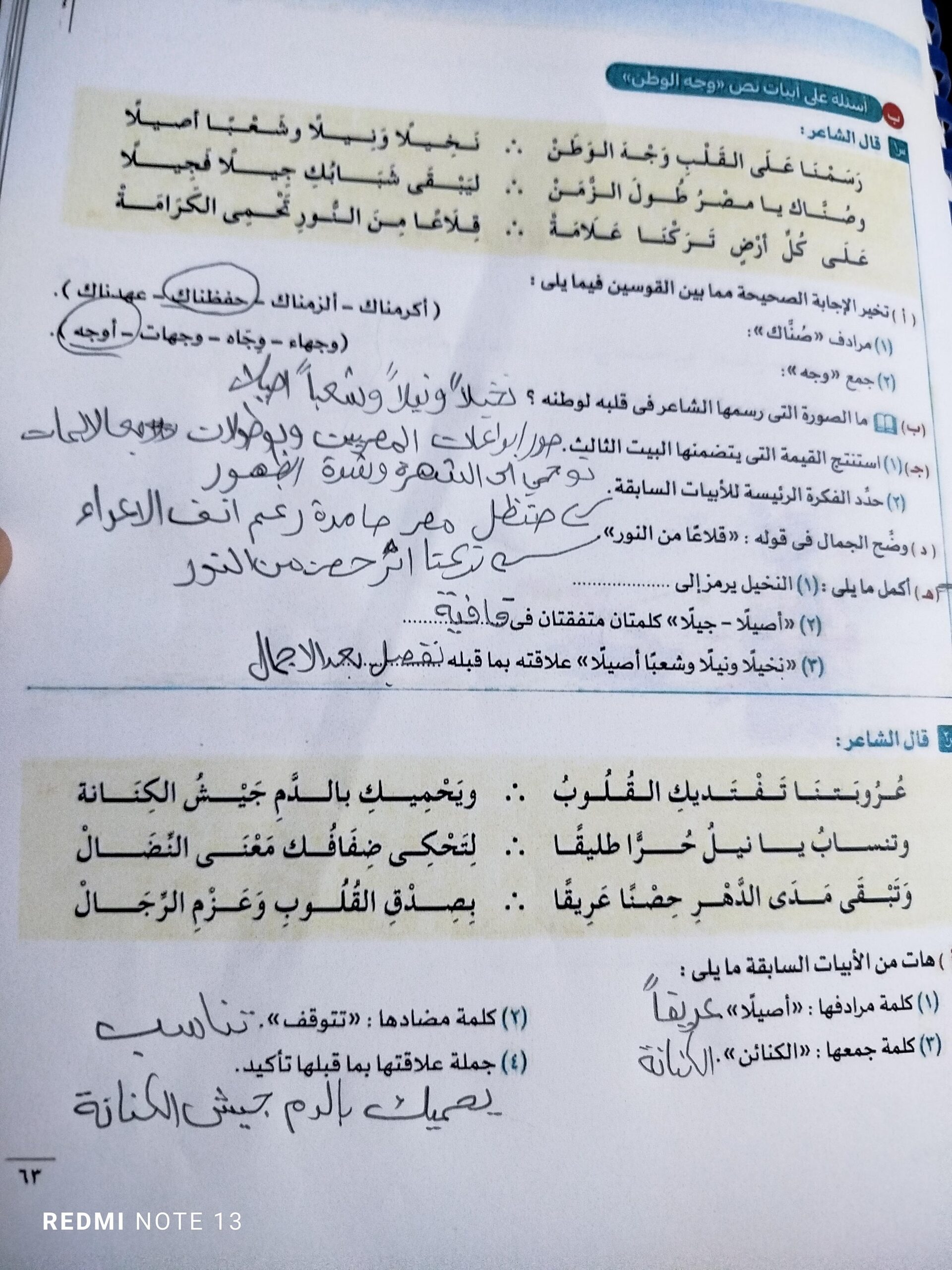 تم شرح نص وجه الوطن
