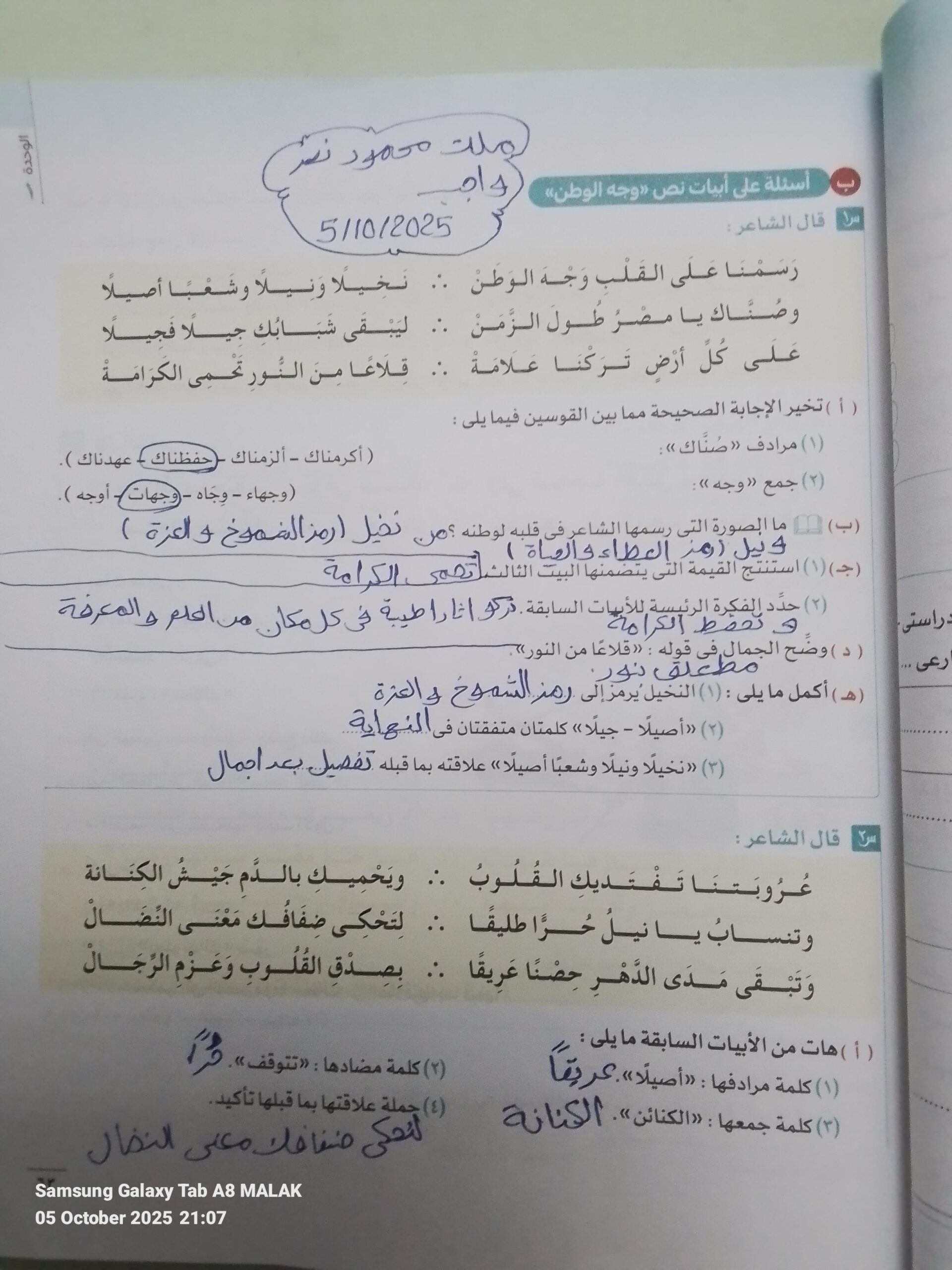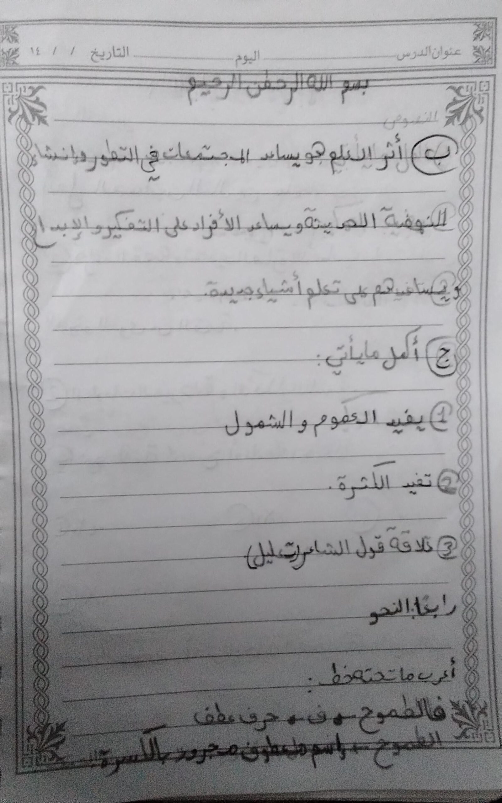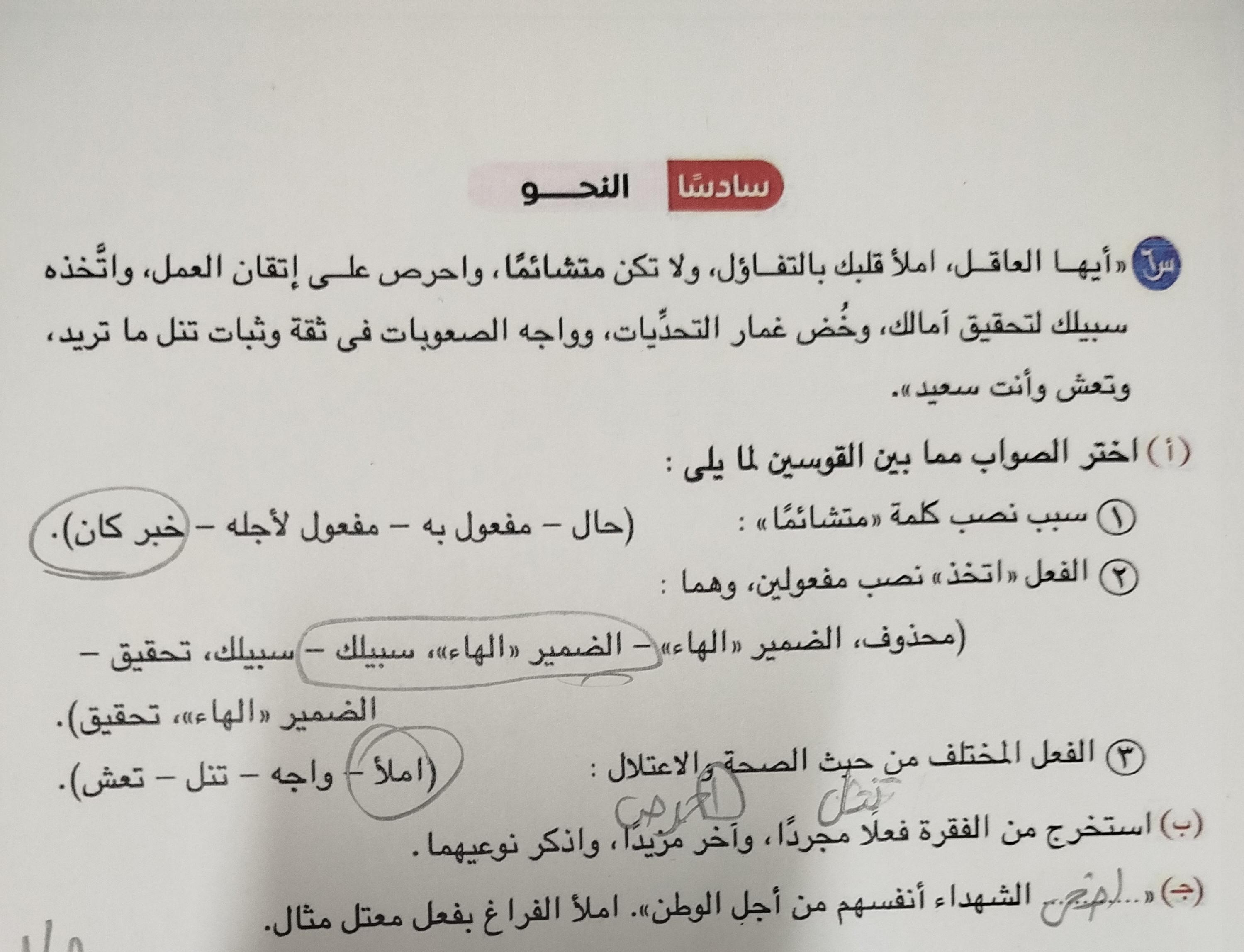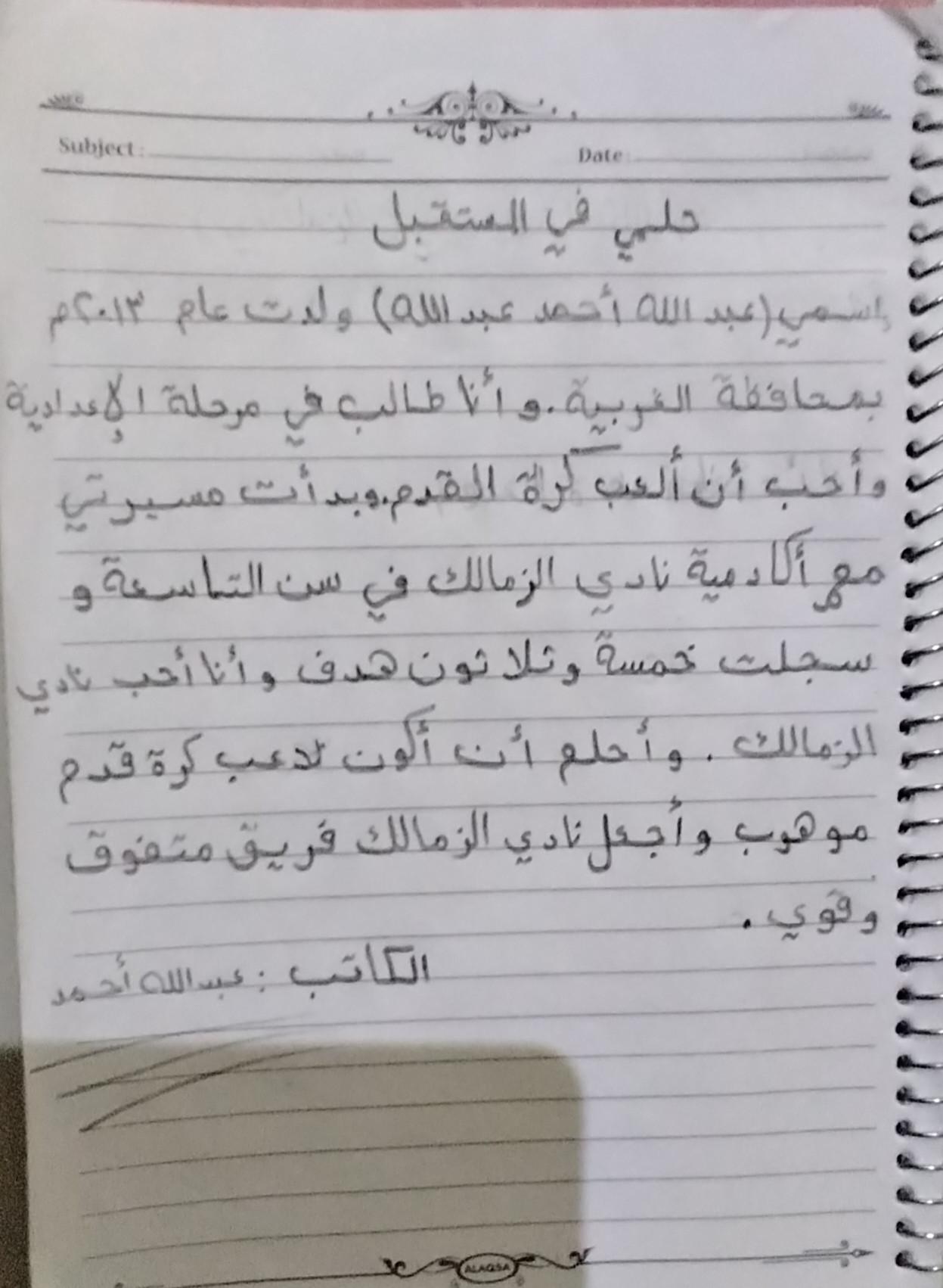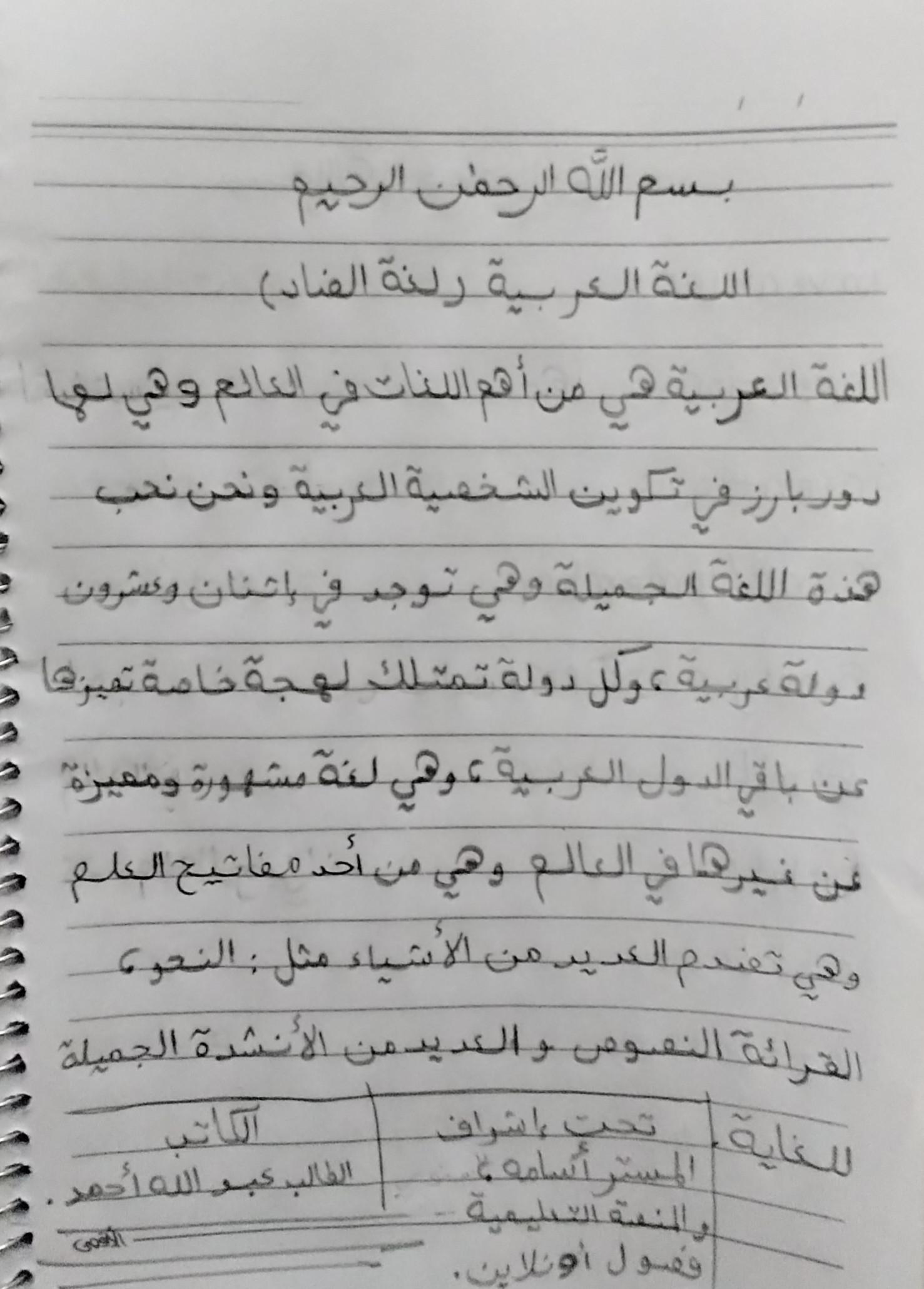 واحب اللغه العربية عبدالله أحمد.