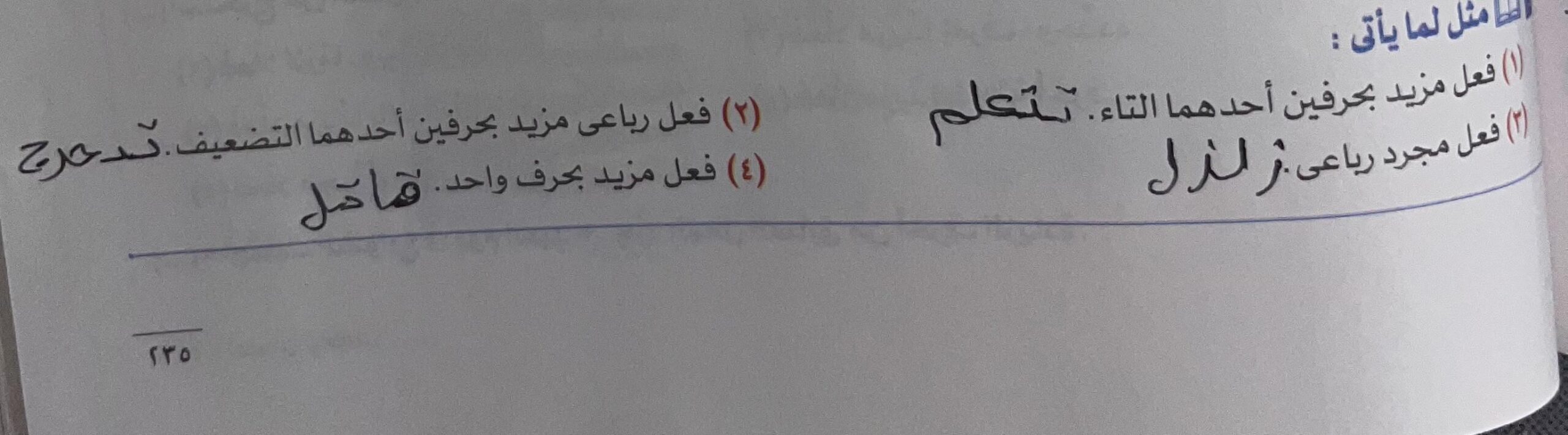 يشرح الدرس يضم الاول و كسر ما قبل الأخير. يقام الليل نضم أوله ونفتح ما قبل الأخير. يكتشف الآثار نضم اول و نفتح آخره . تهمل نضم اول و نكسر ما قبل الأخير. 💕