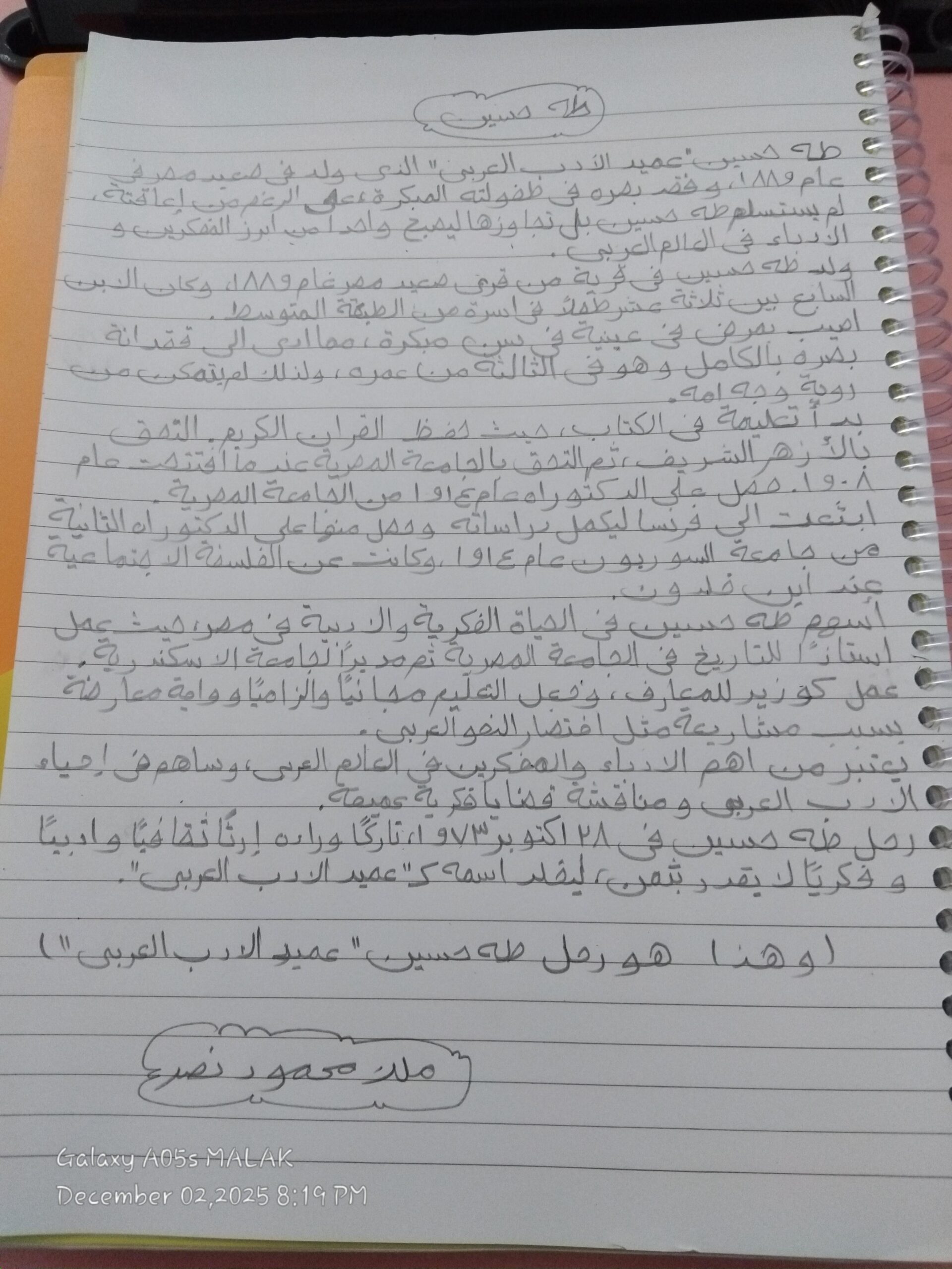 ماذا اعرف عنه ان هو ادرس يتكلم عن ابياتا شعرية تبرز حب المصريين لبلدهم ؛ اعجابهم بجمالها واستعدادهم للتضحيه اجلها ❤️🌺