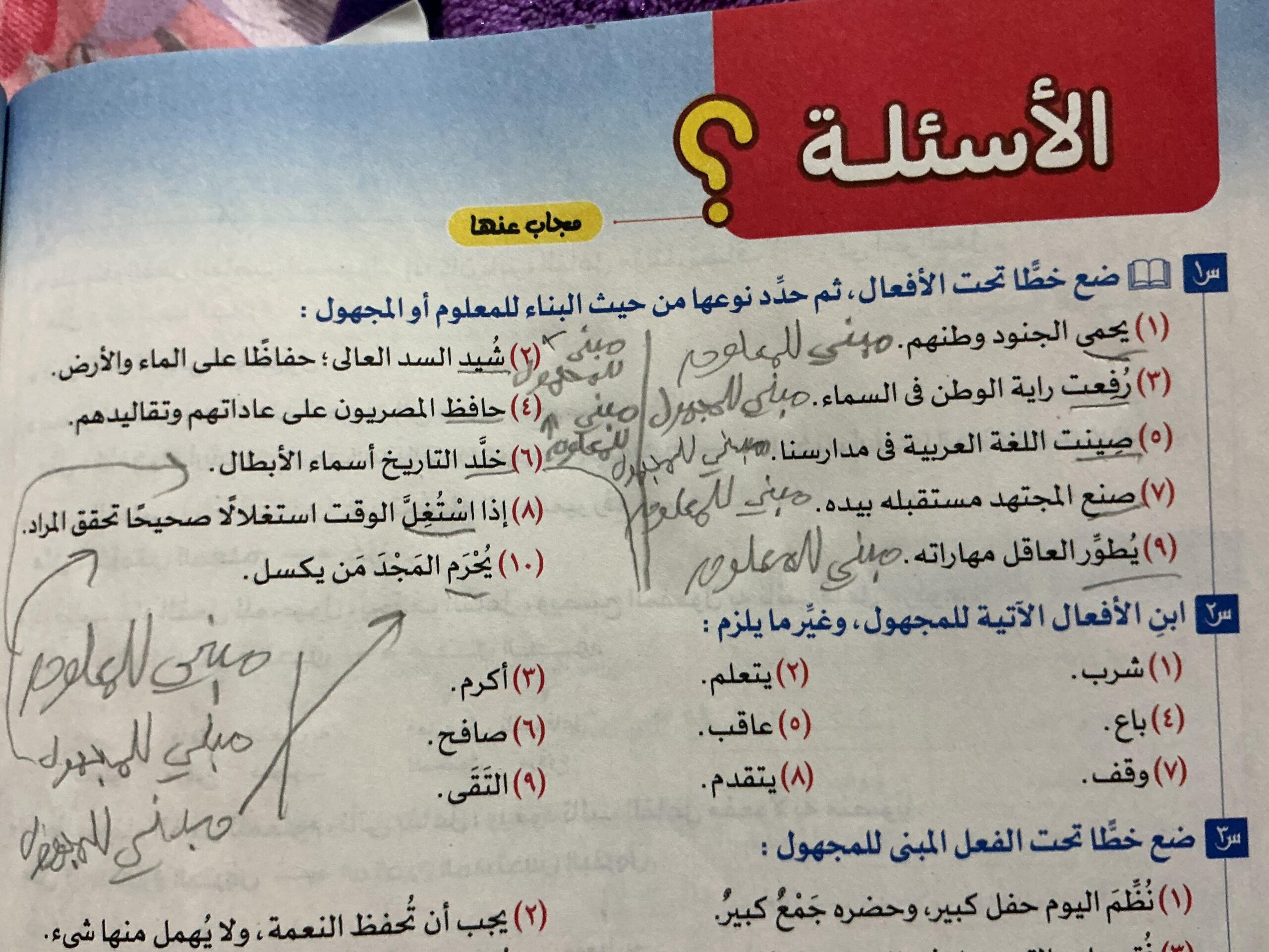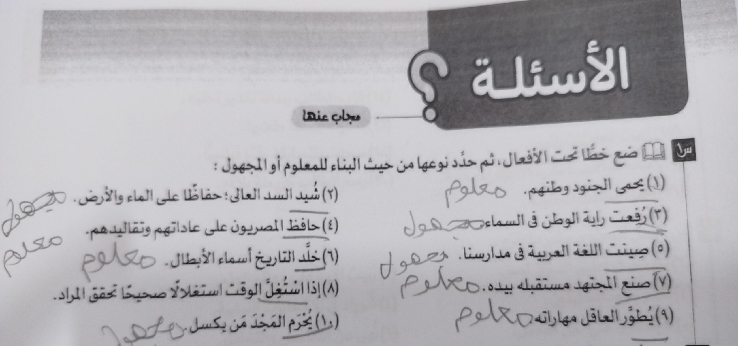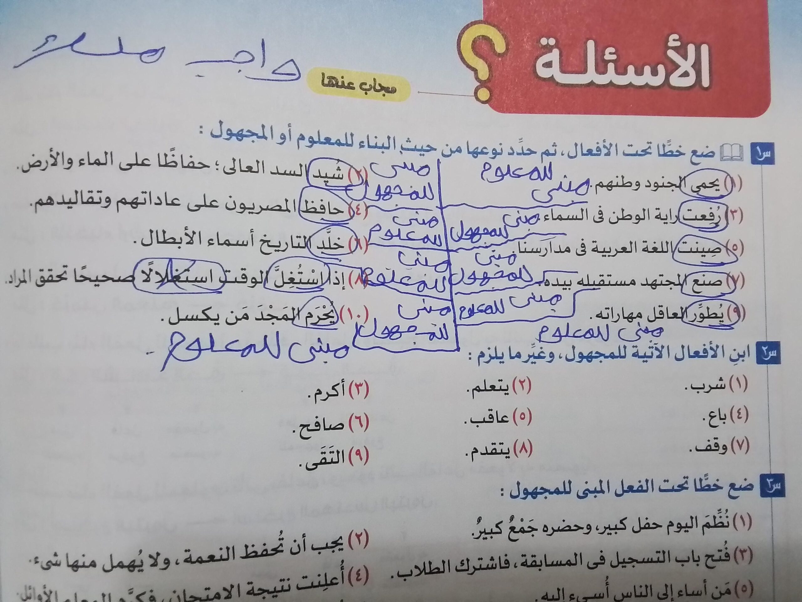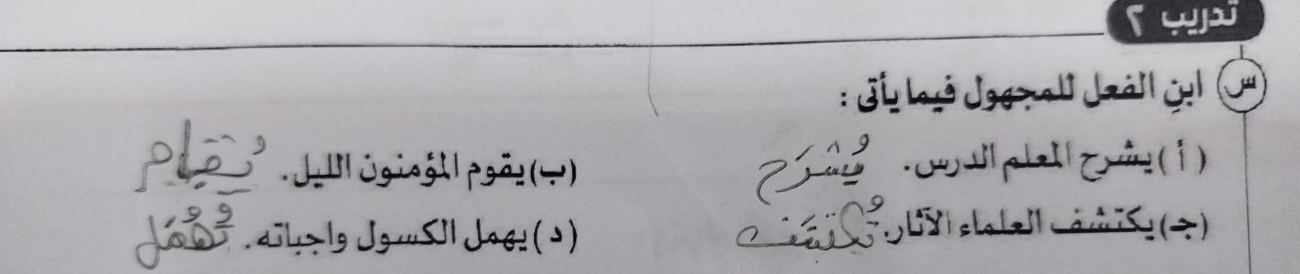 تم شرح درس المبني للمعلوم والمبني المجهول (الفعل الماضي )