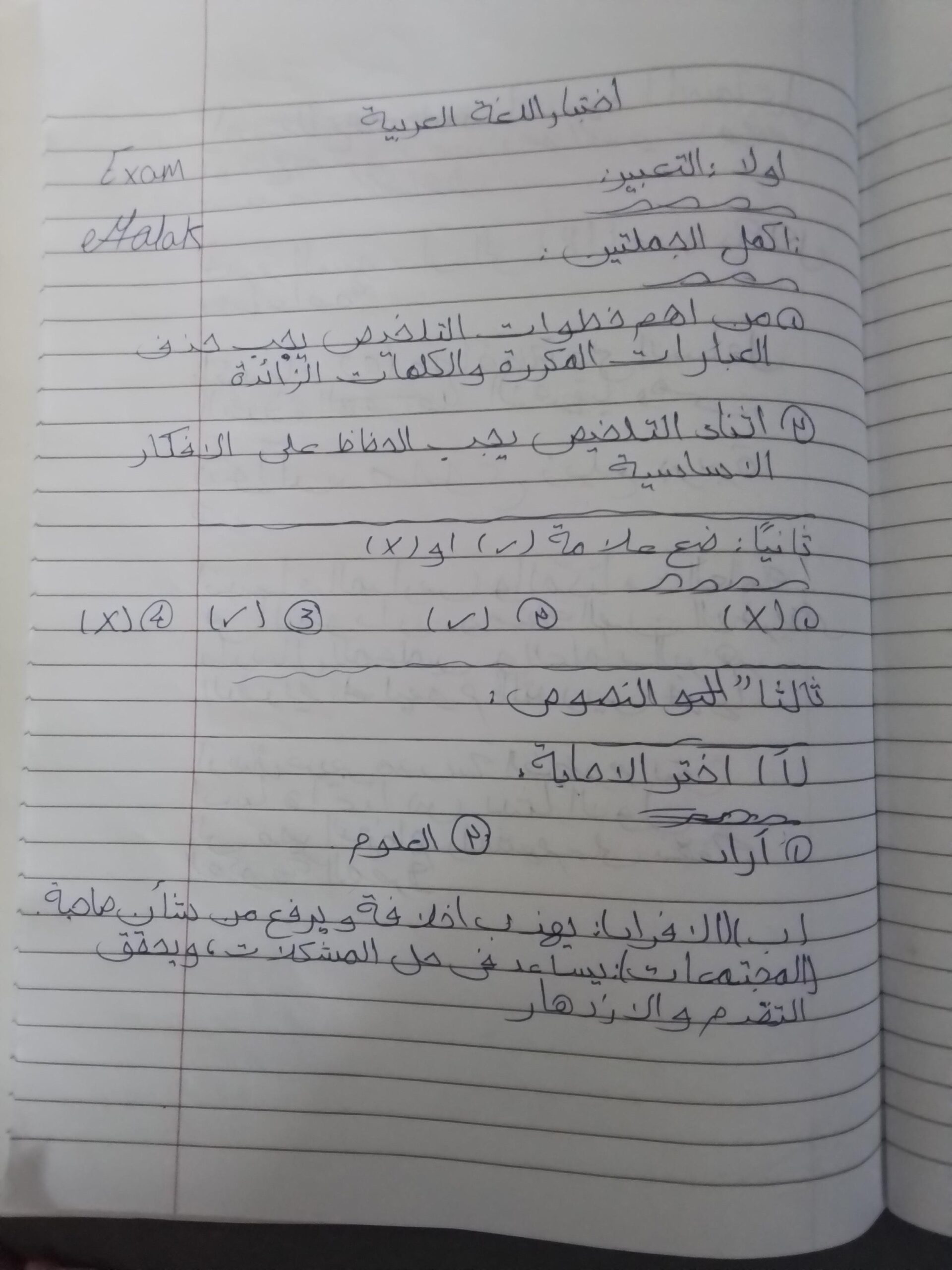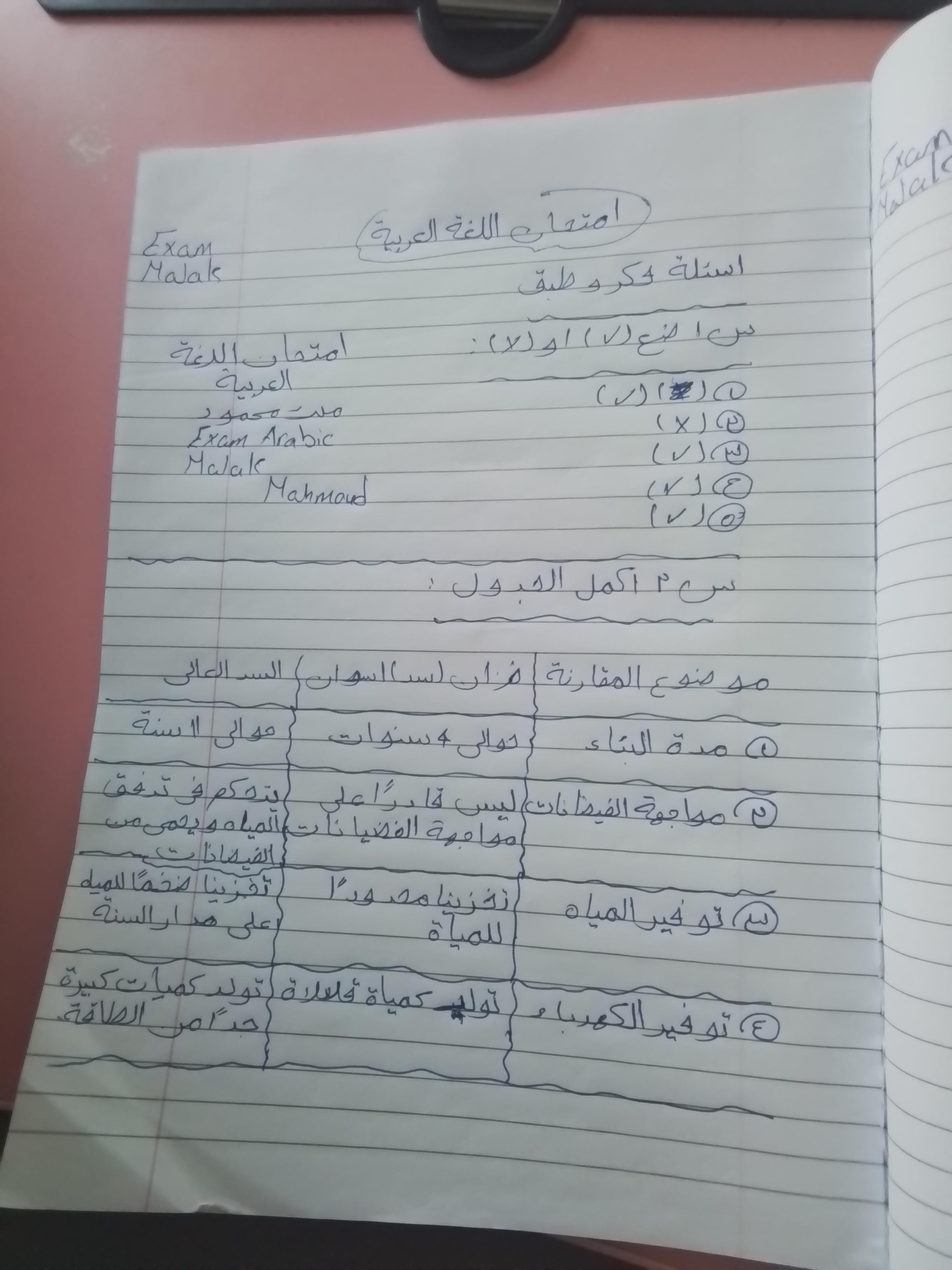 ممكن امتحان العربي .