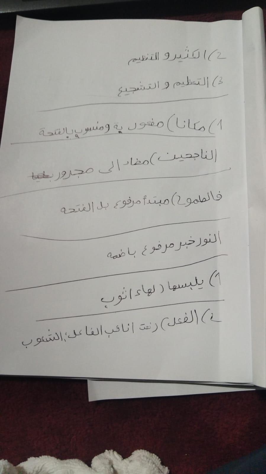 الواجب.. نذاكر جيدا لامتحان الغد❤️