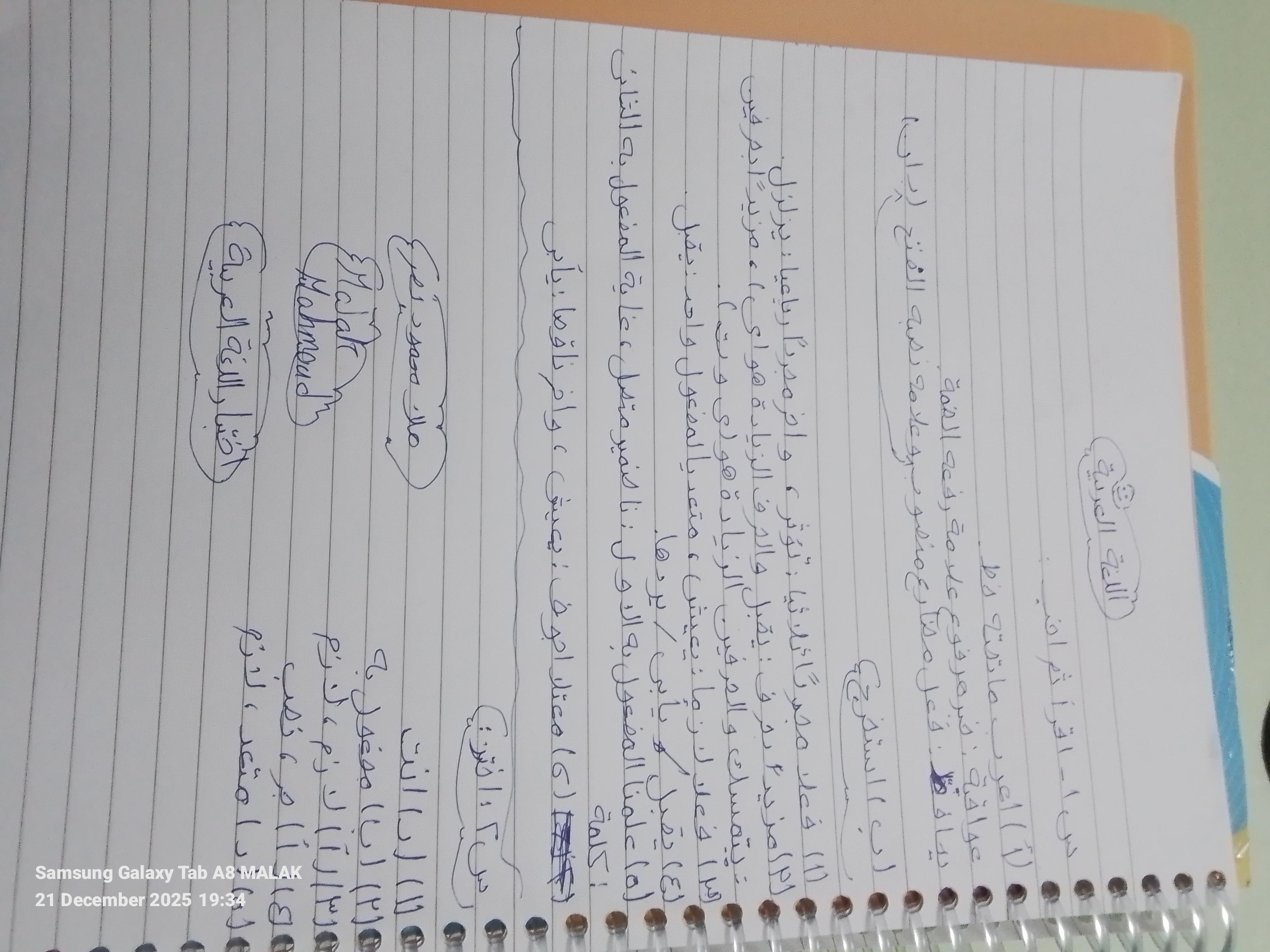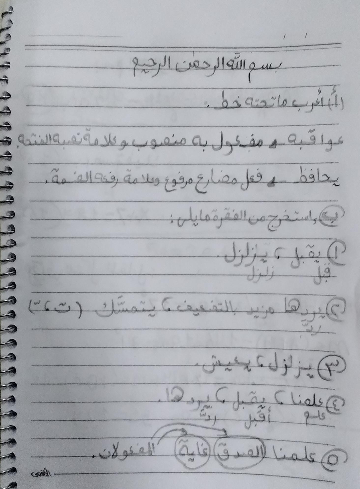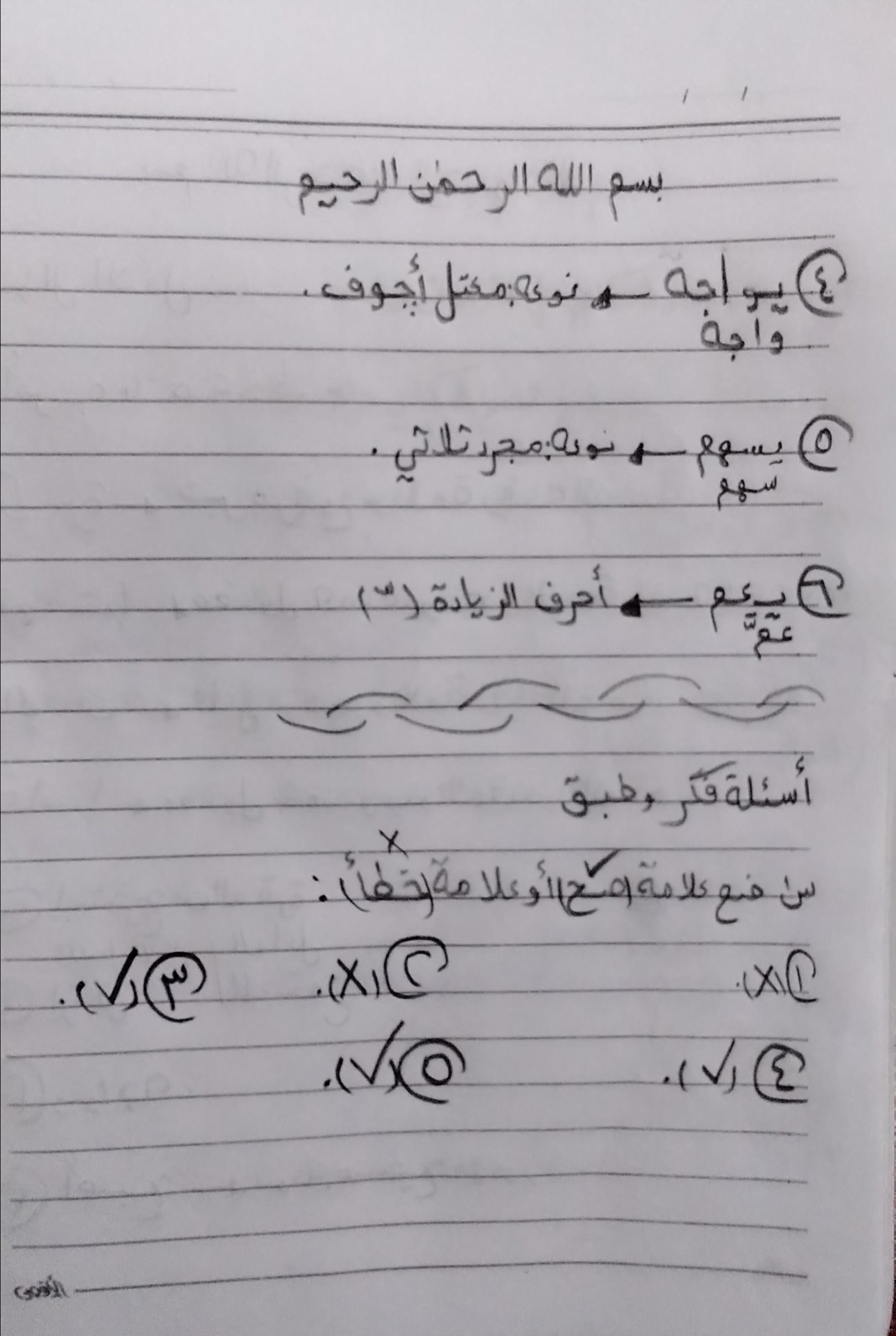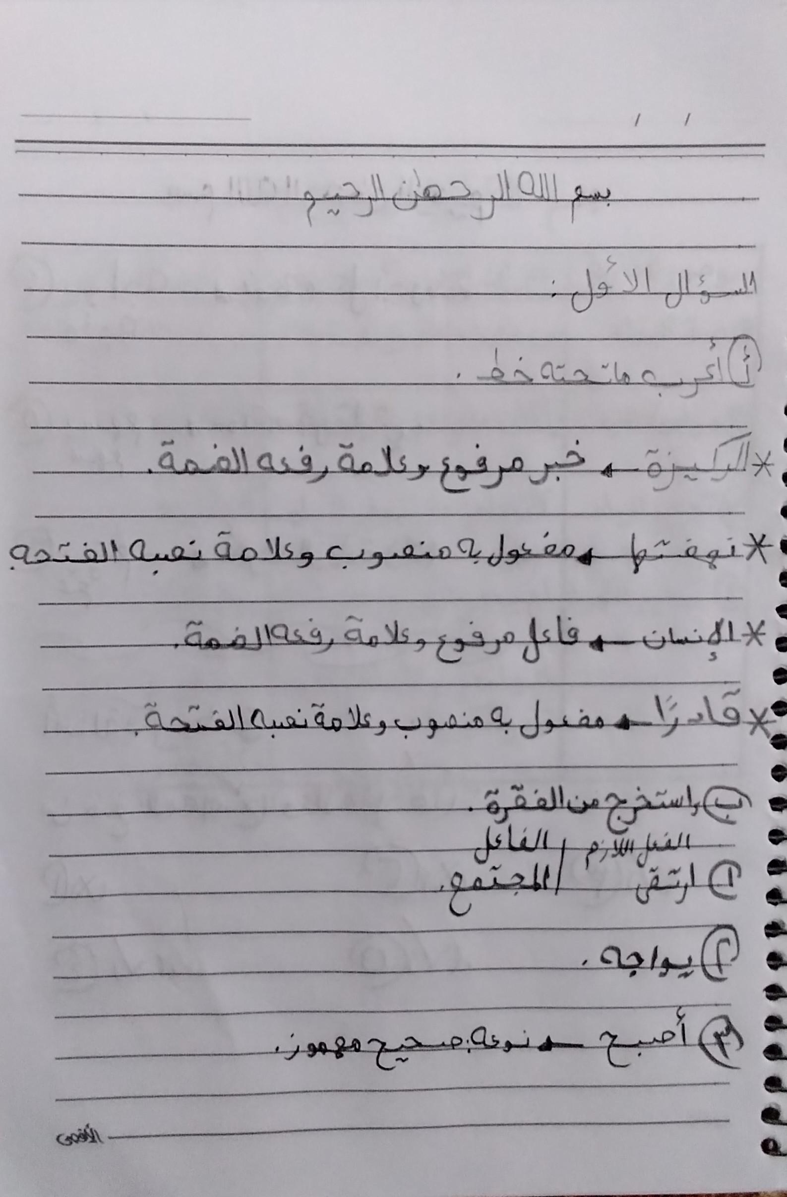 واجب اللغه العربية عبدالله أحمد 🥇