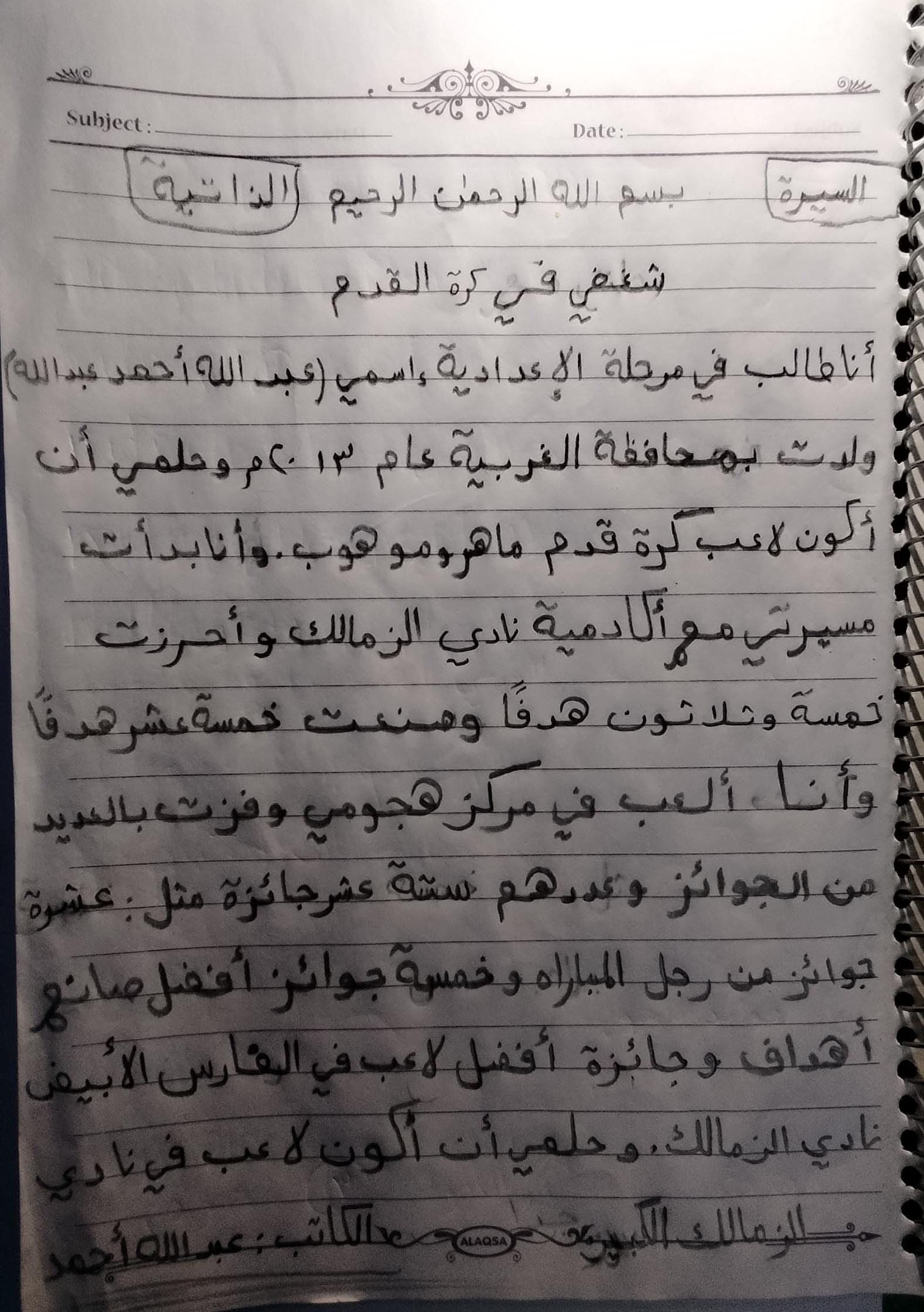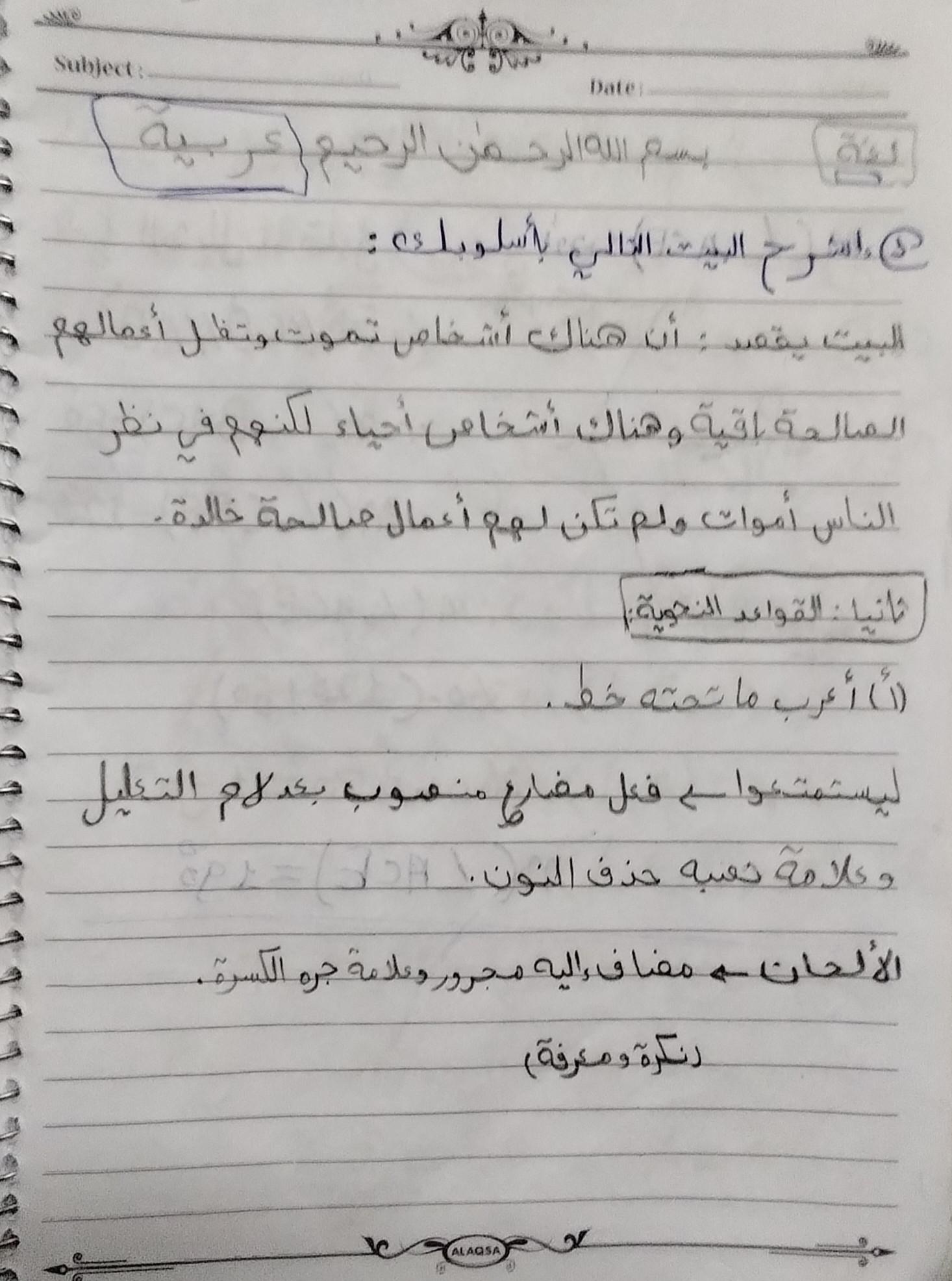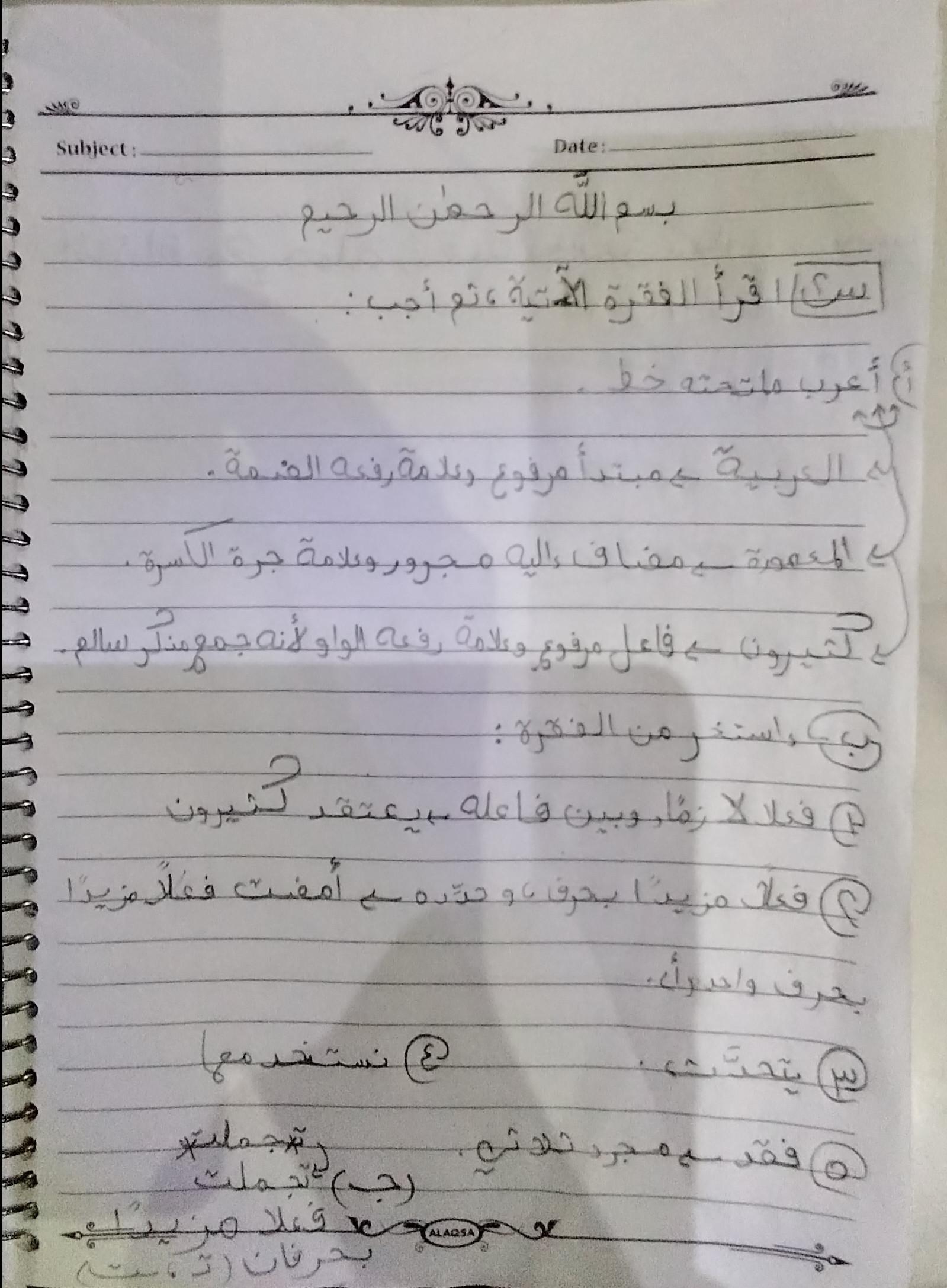 واجب اللغه العربية عبدالله أحمد 🥇