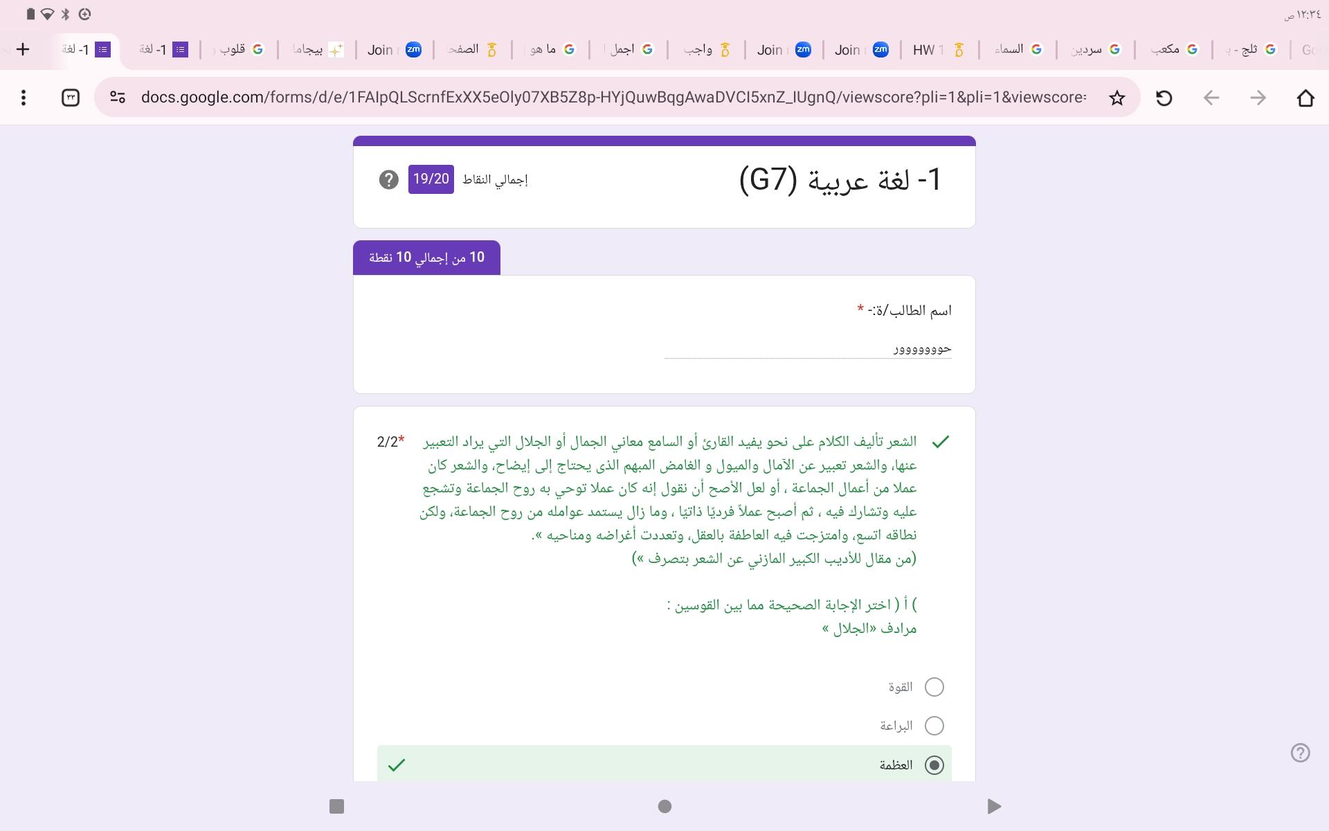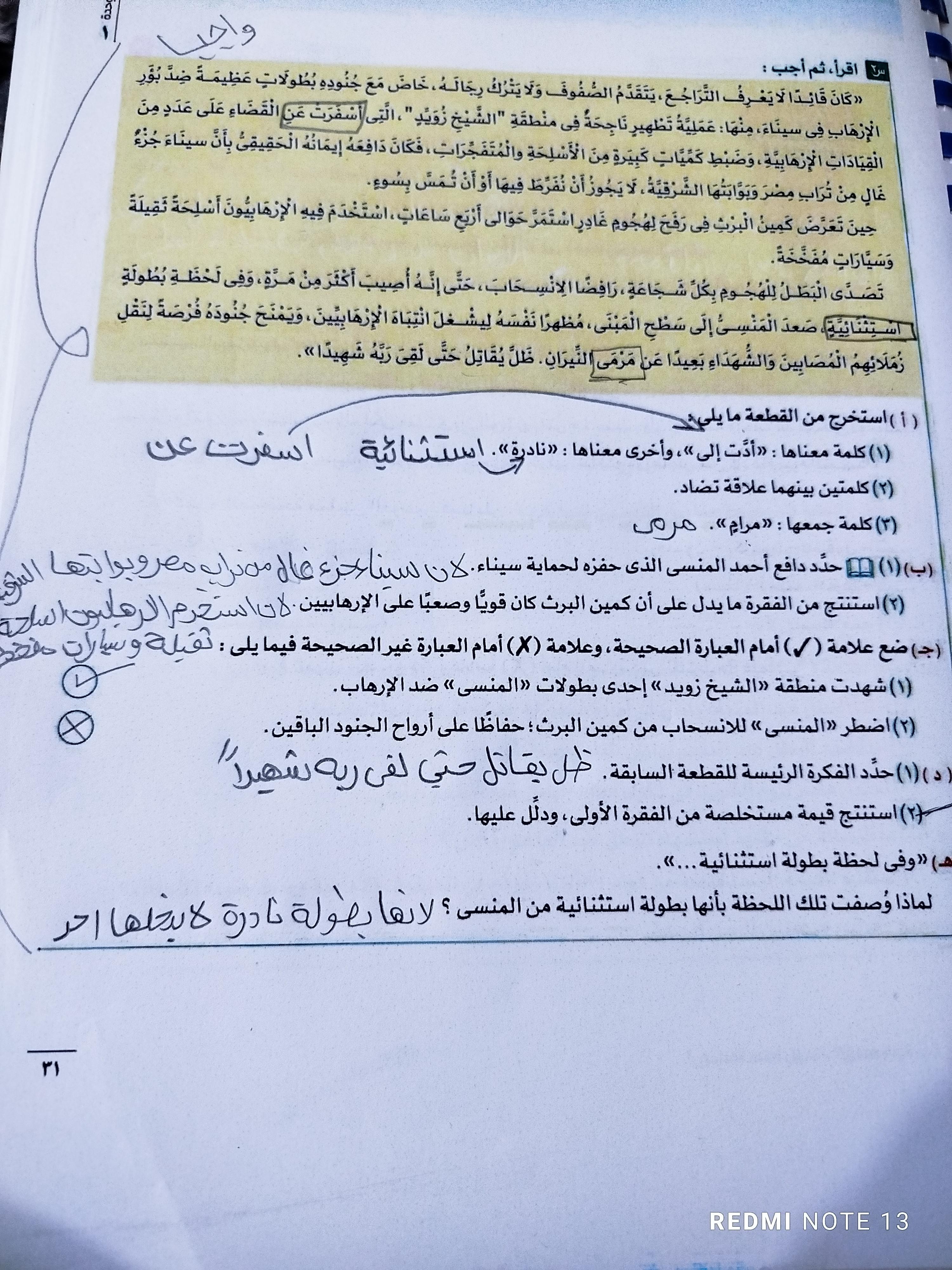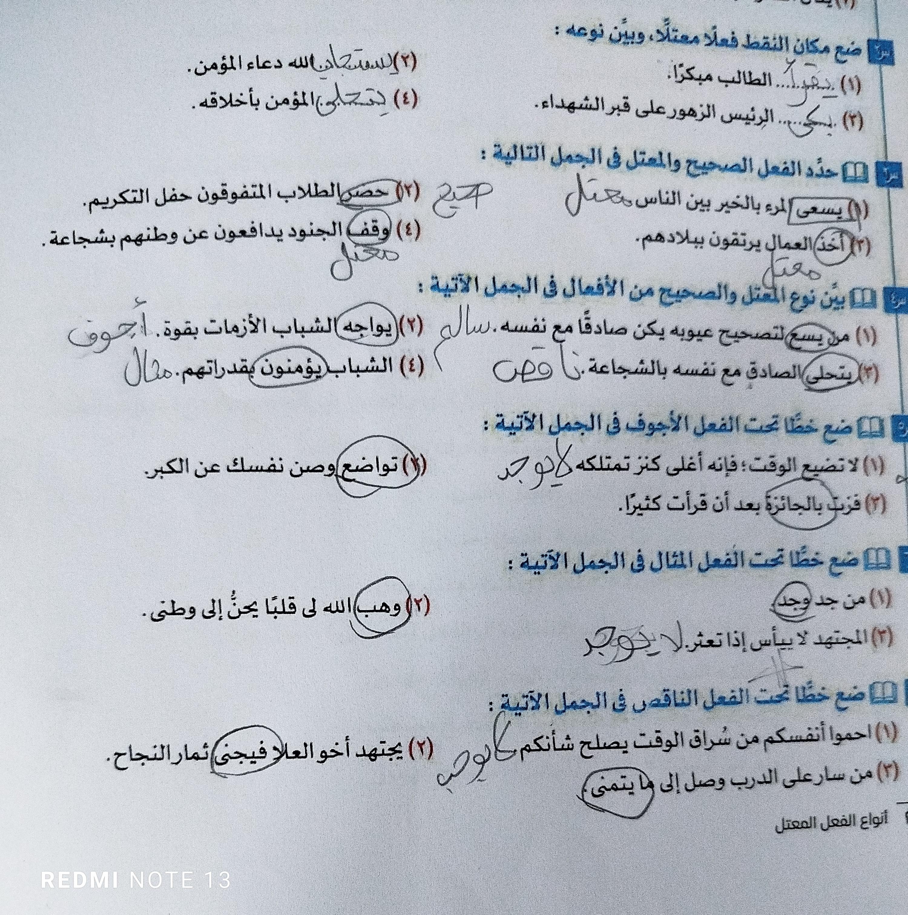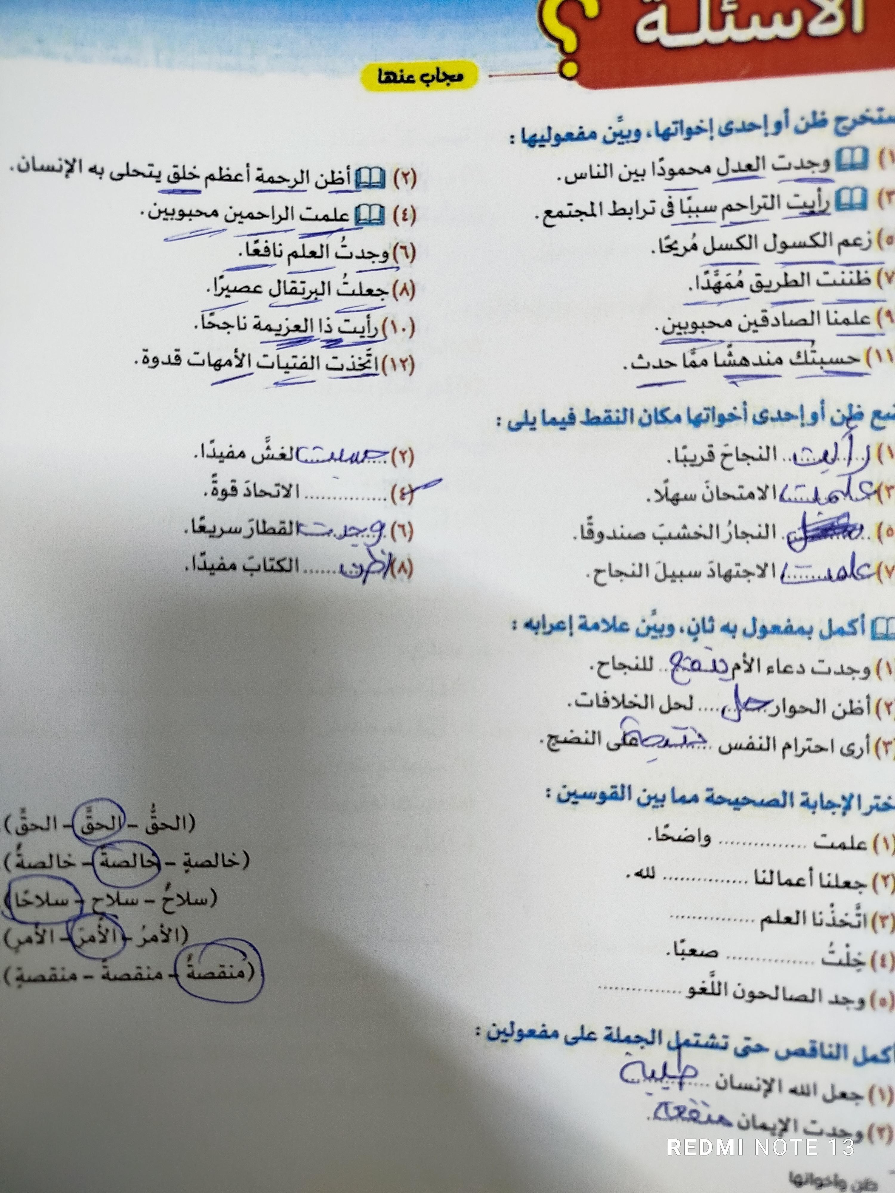 واجب اللغه العربية عبدالله أحمد 🥇