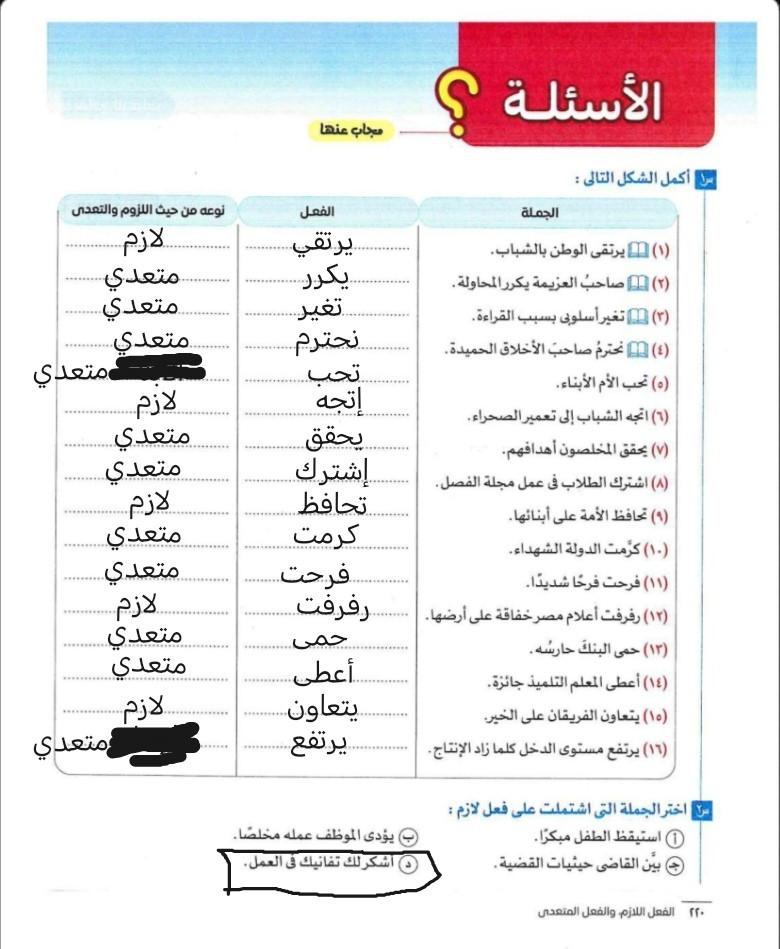 تم شرح الفعل اللازم والفعل المتعدي