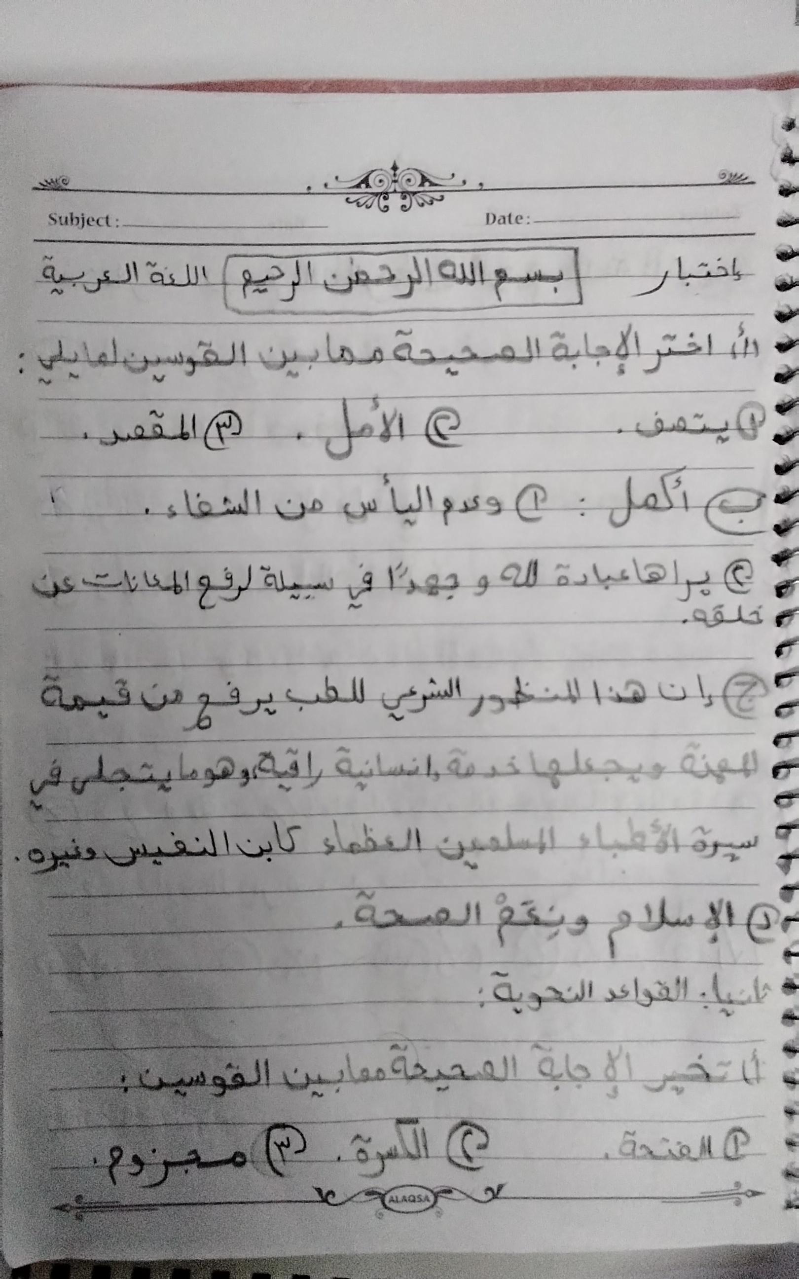 اختبار اللغة العربية عبدالله أحمد 🥇