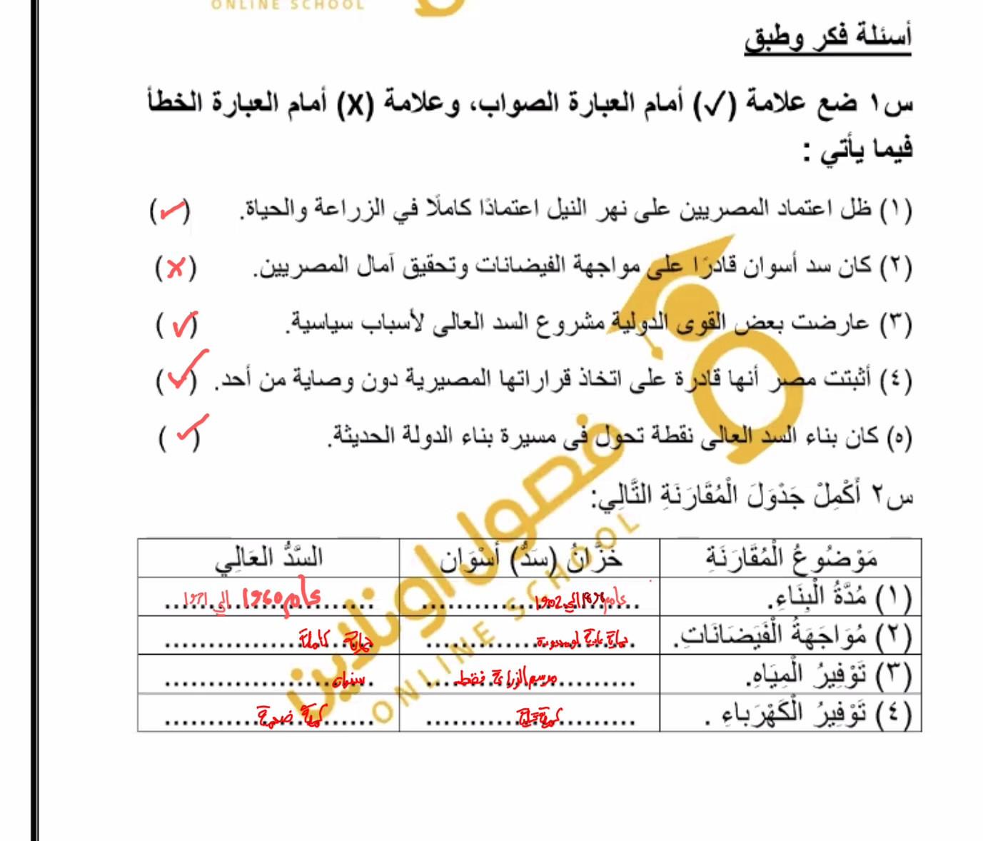تم شرح درس حصن مصر المائي السد العالي