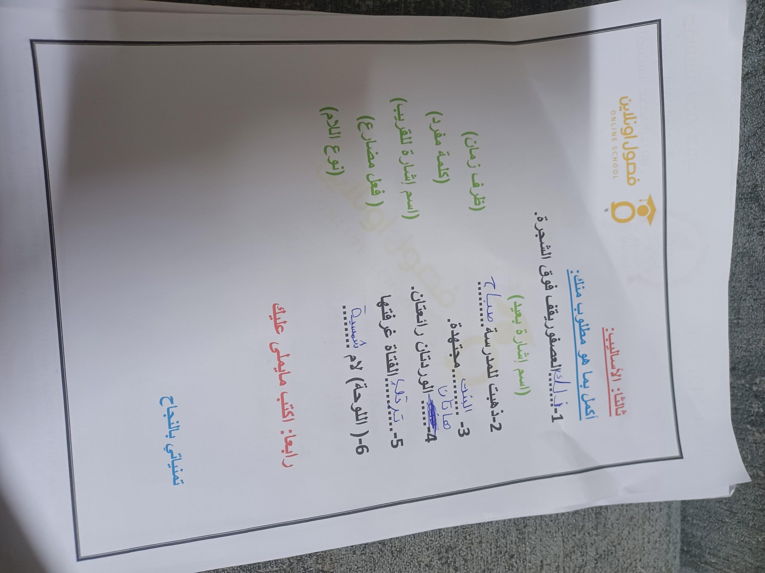 الحصة مراجعة الظرف والاسماء الموصولة + تقييم 1 الواجب هات من عندك في جمل (الذي- التى- صباحا – بجانب