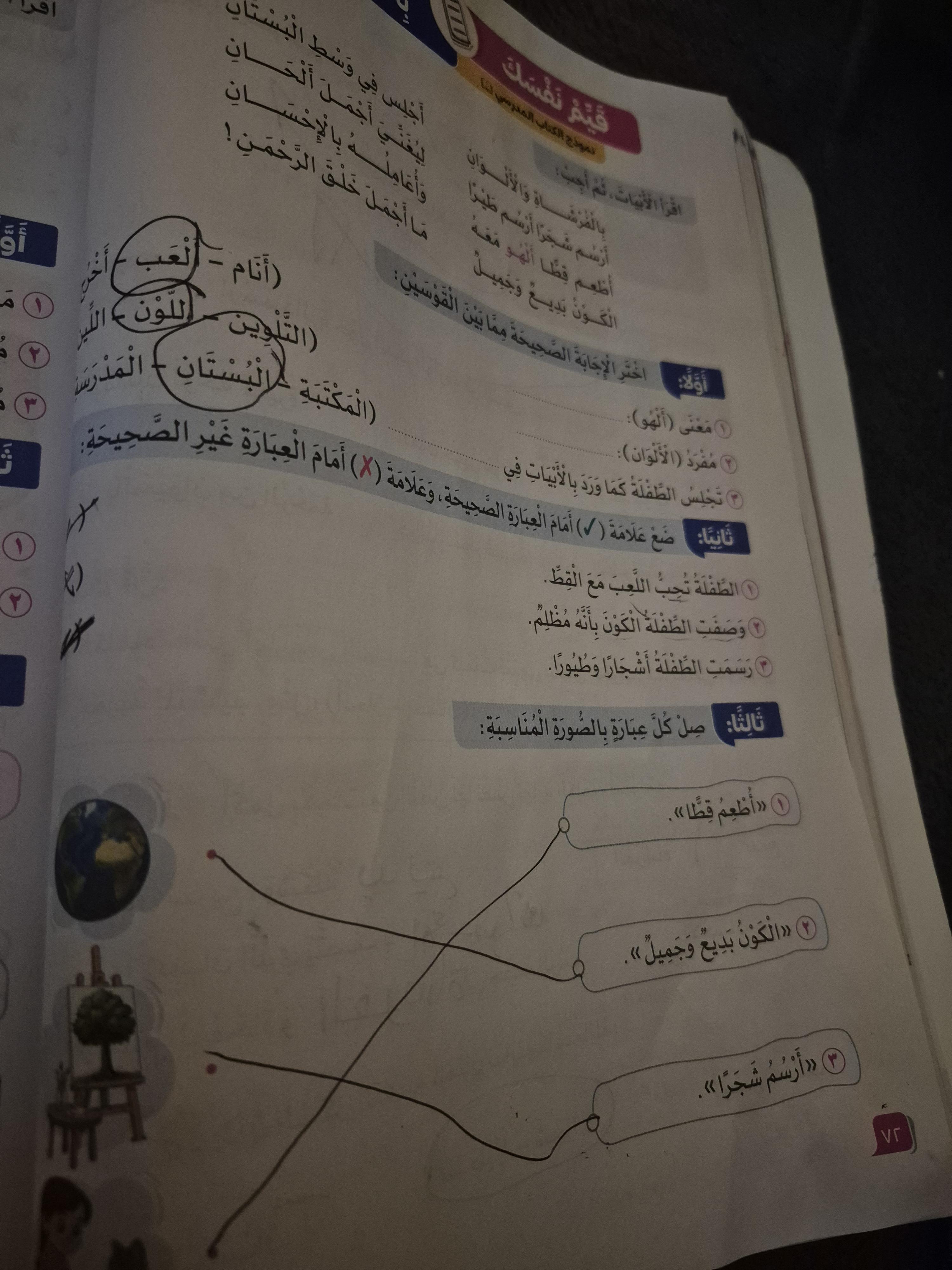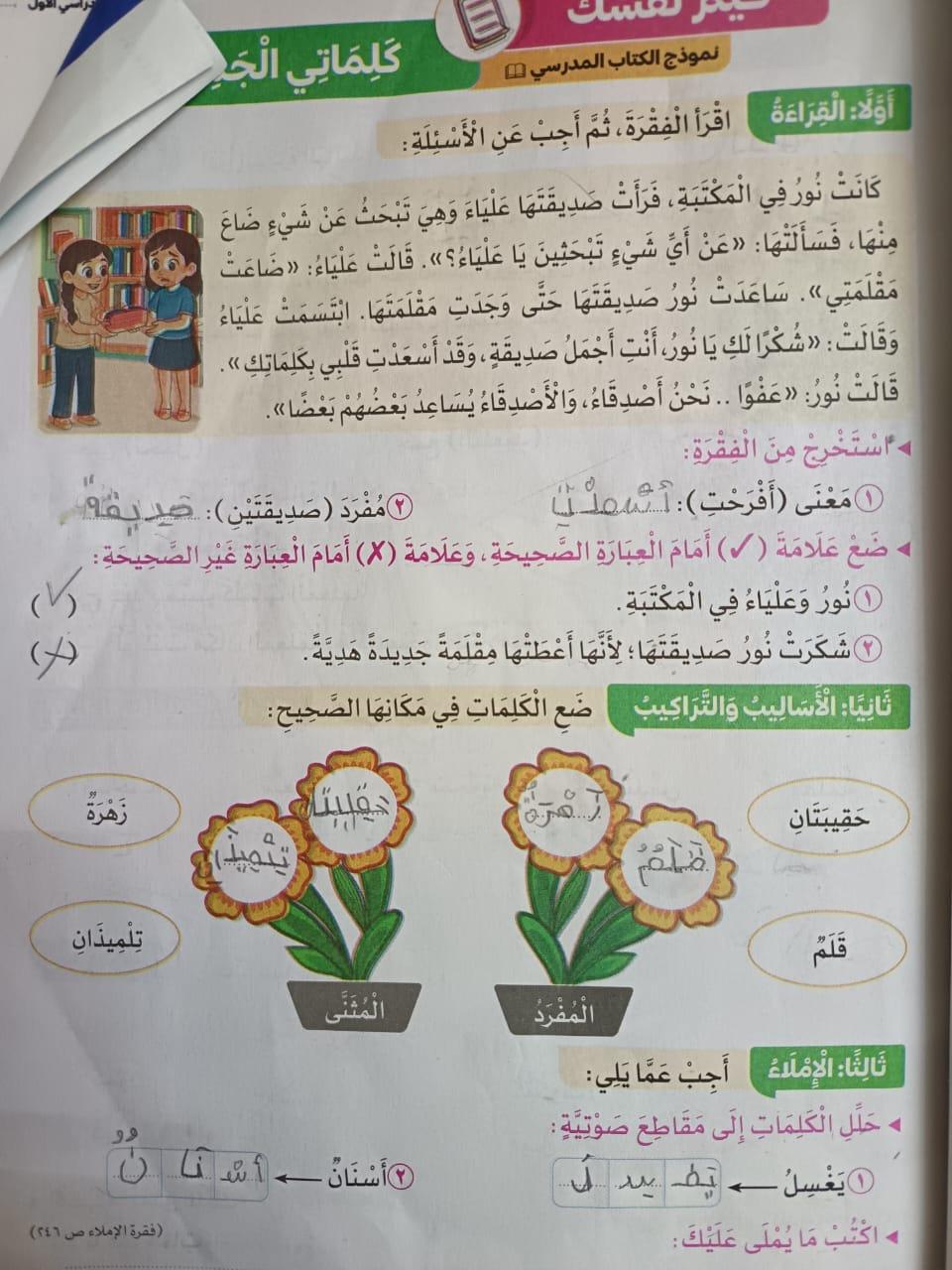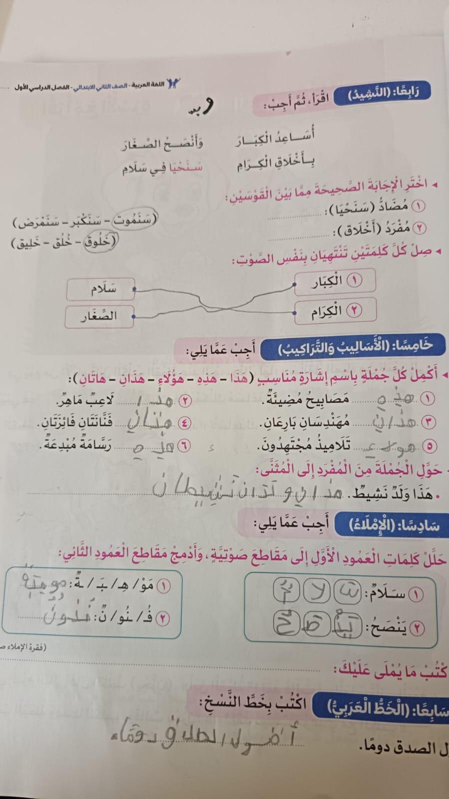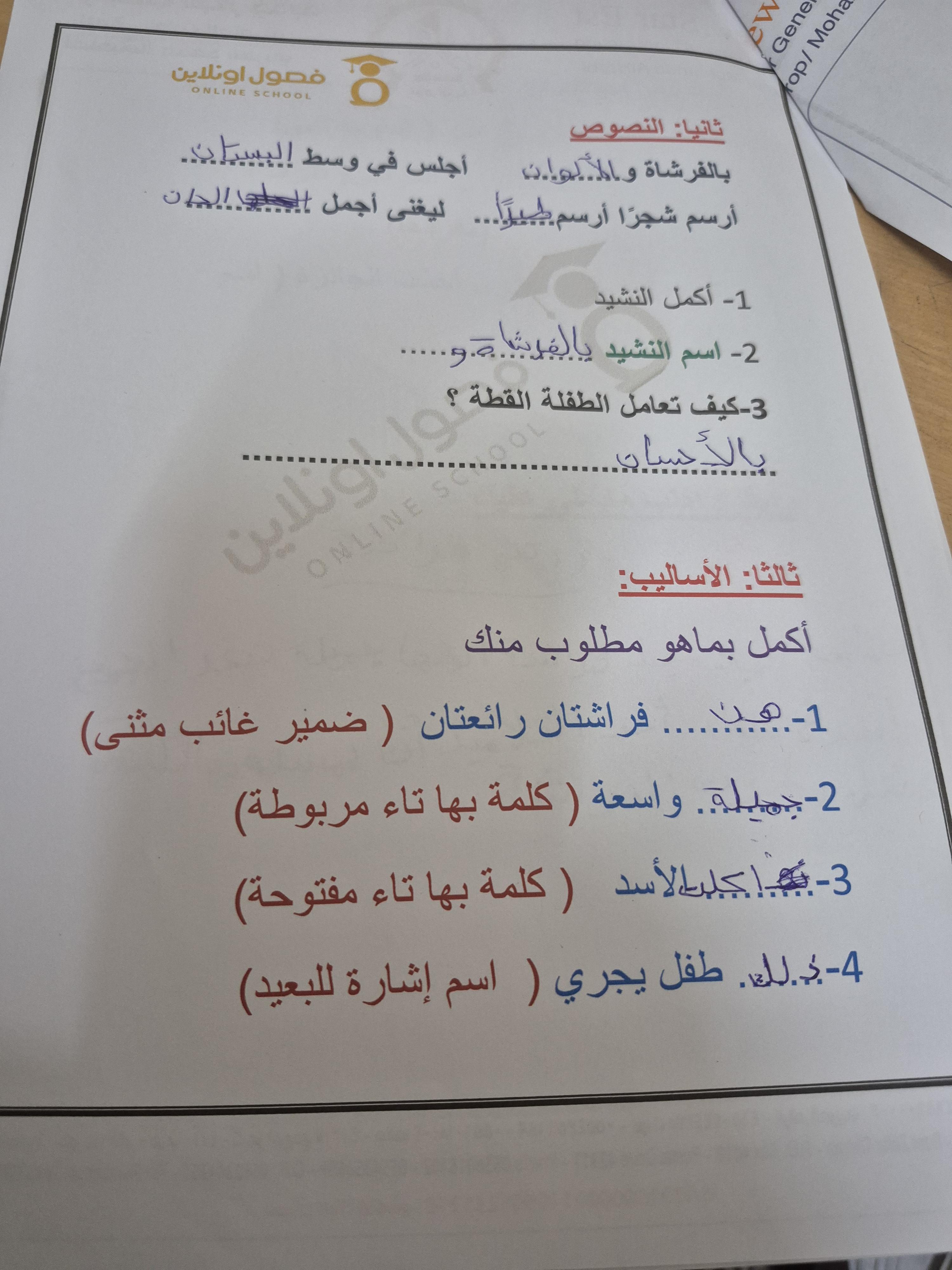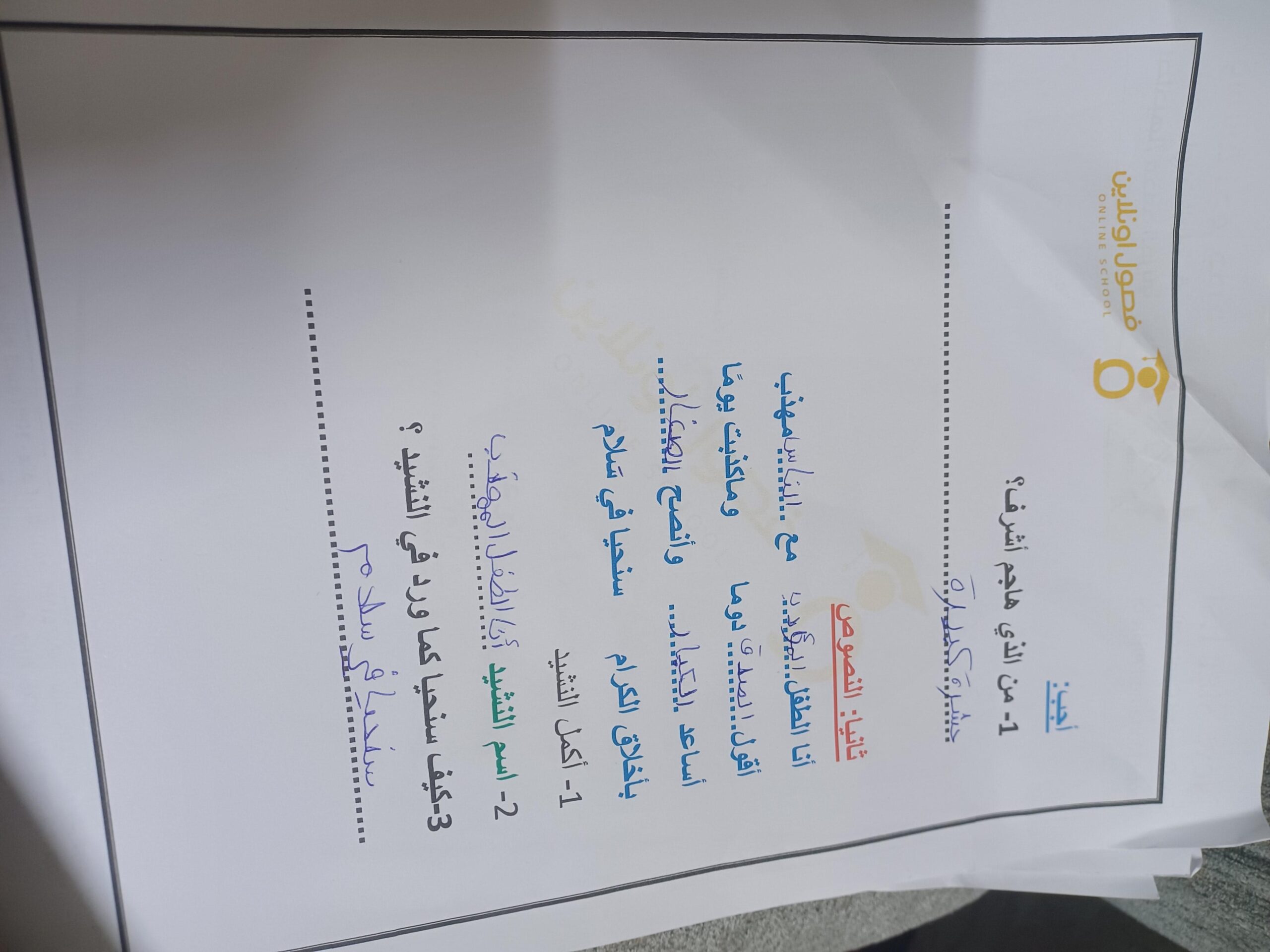 الحصة مراجعة التاء المفتوحة والمربوطة+ قيم نفسك الواجب استكمال صفحة66 الثلاثاء القادم اختبار في جميع ما سبق إلى نشيد (الفراشاة والالوان