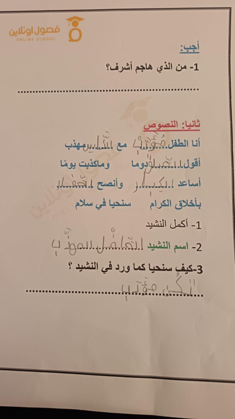 الواجب كتابه النسيد مرتين+ حفظه بالمعاني