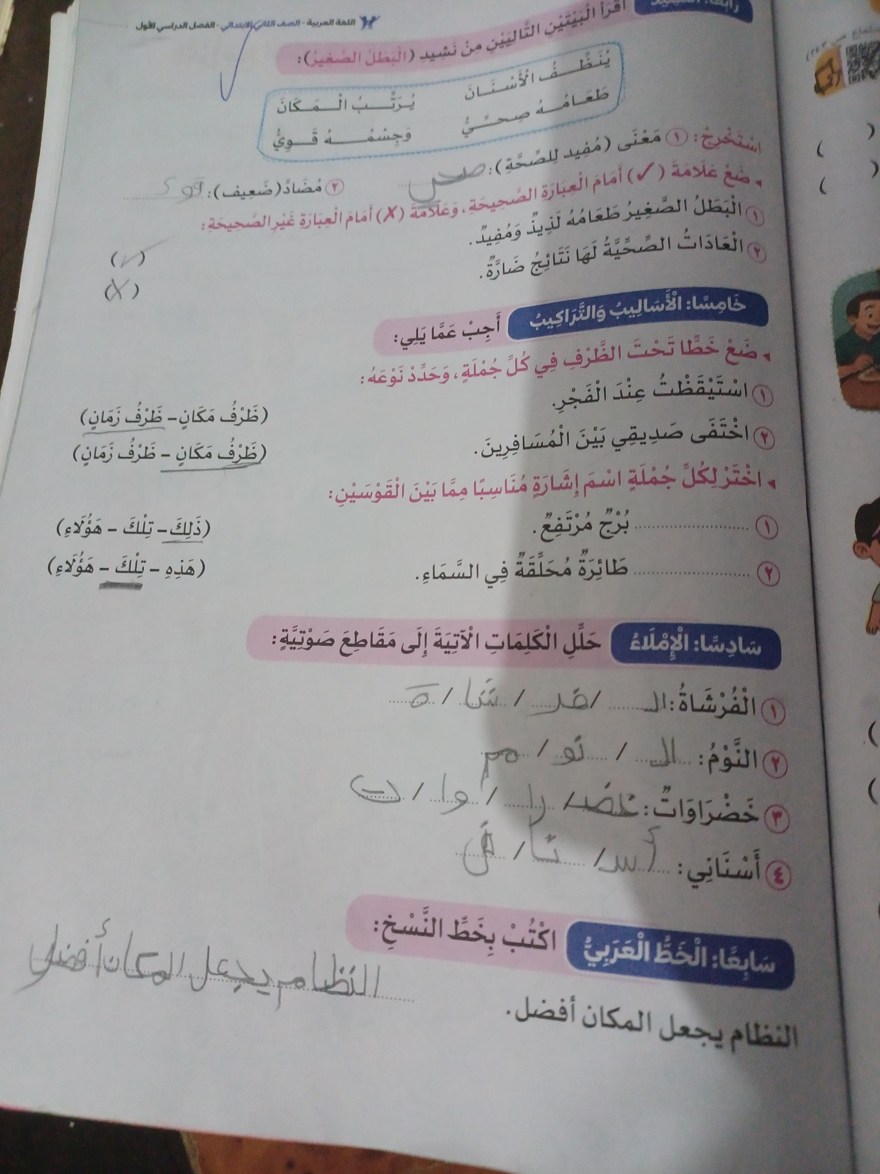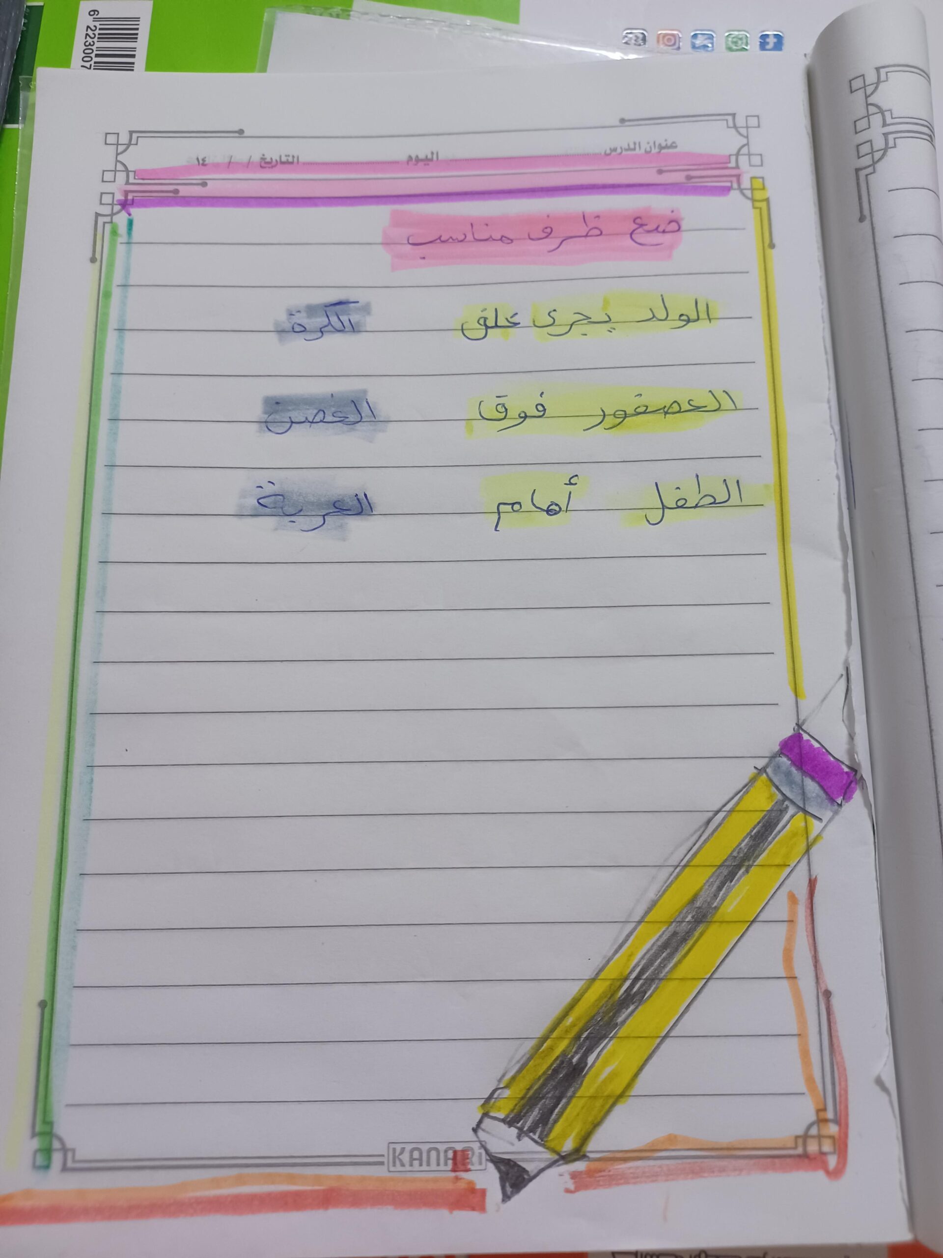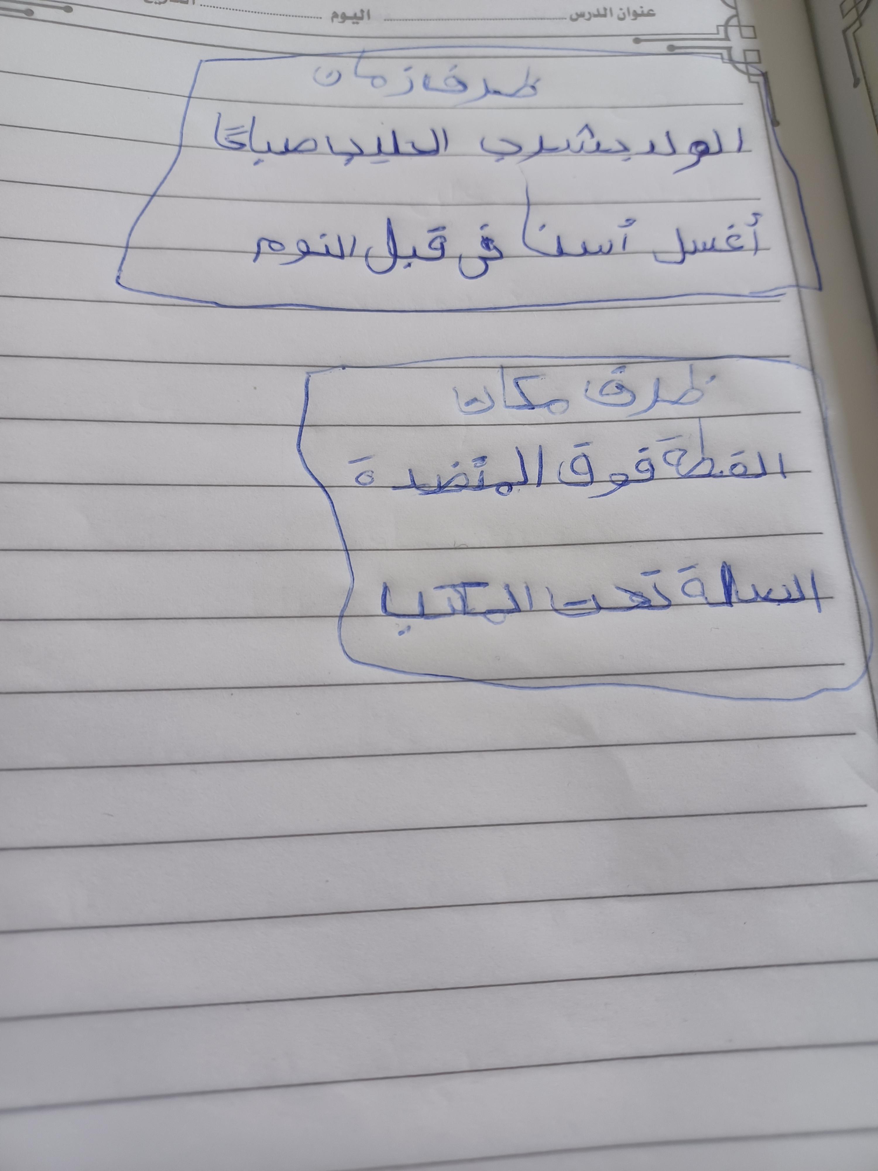 الواجب هات جملتين ظرف مكان ومثلهما ظرف زمان من عندك