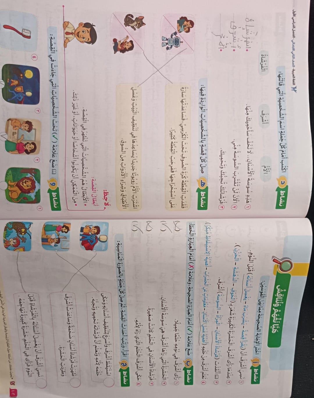 الحصة قصةهيا نلعب الواجب صفحة 214+215