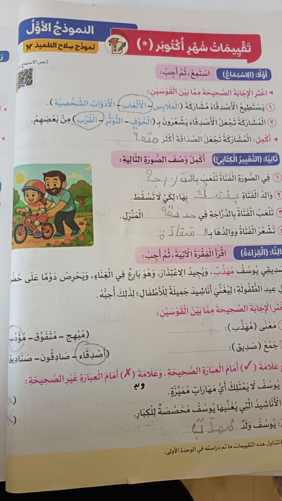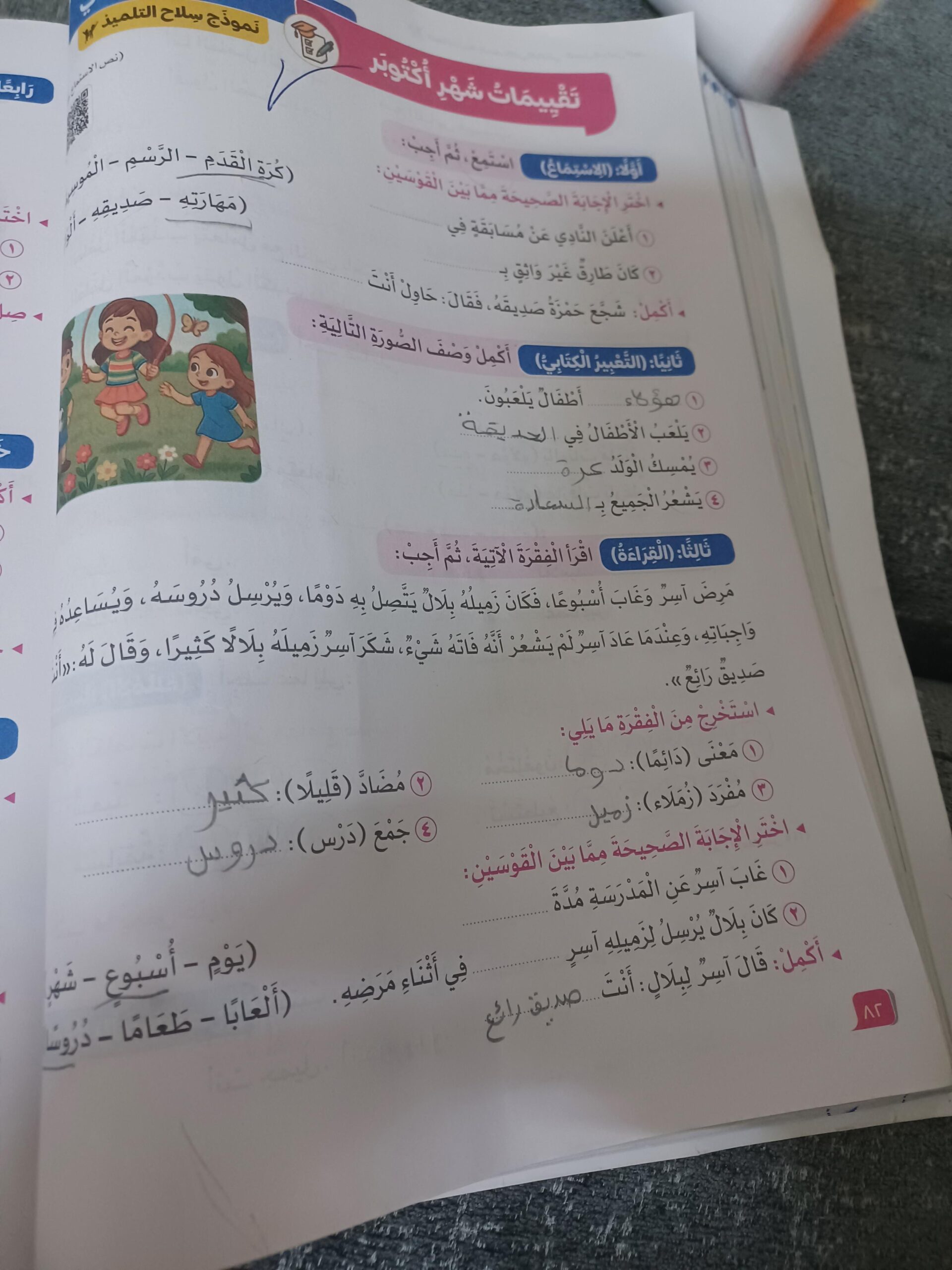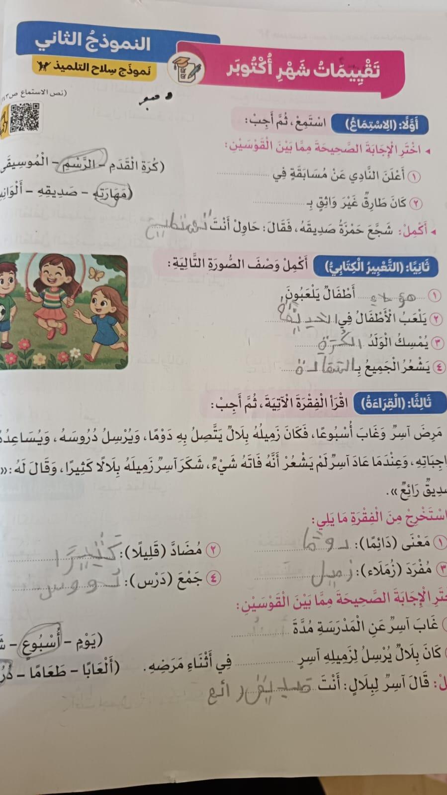 الاسبوع القادم اختبارمن درس (في النادي الى ( رياضتي+ جميع ماتم دراسته في الاساليب