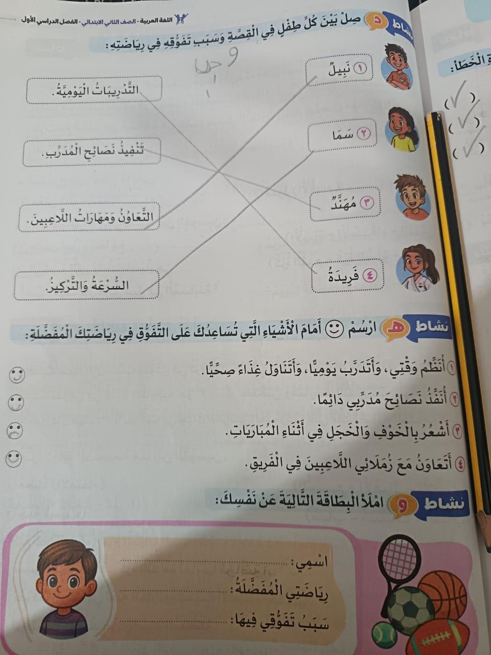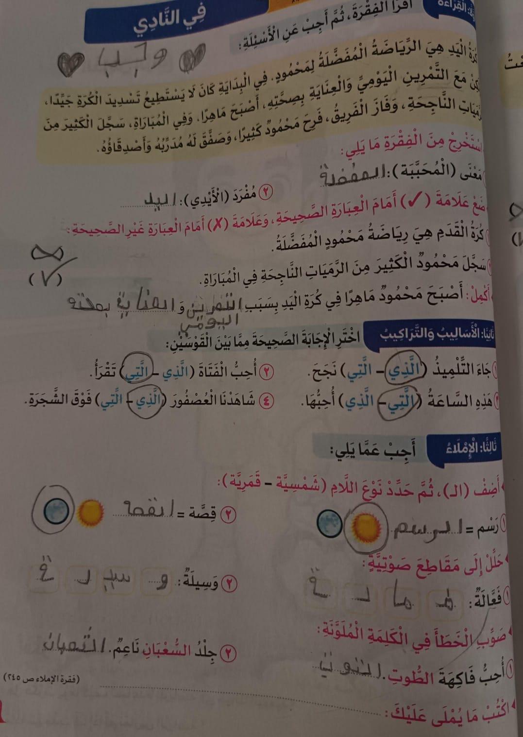 الحصة درس قي النادي + المفردات الواجب تدريبات188 الى 192