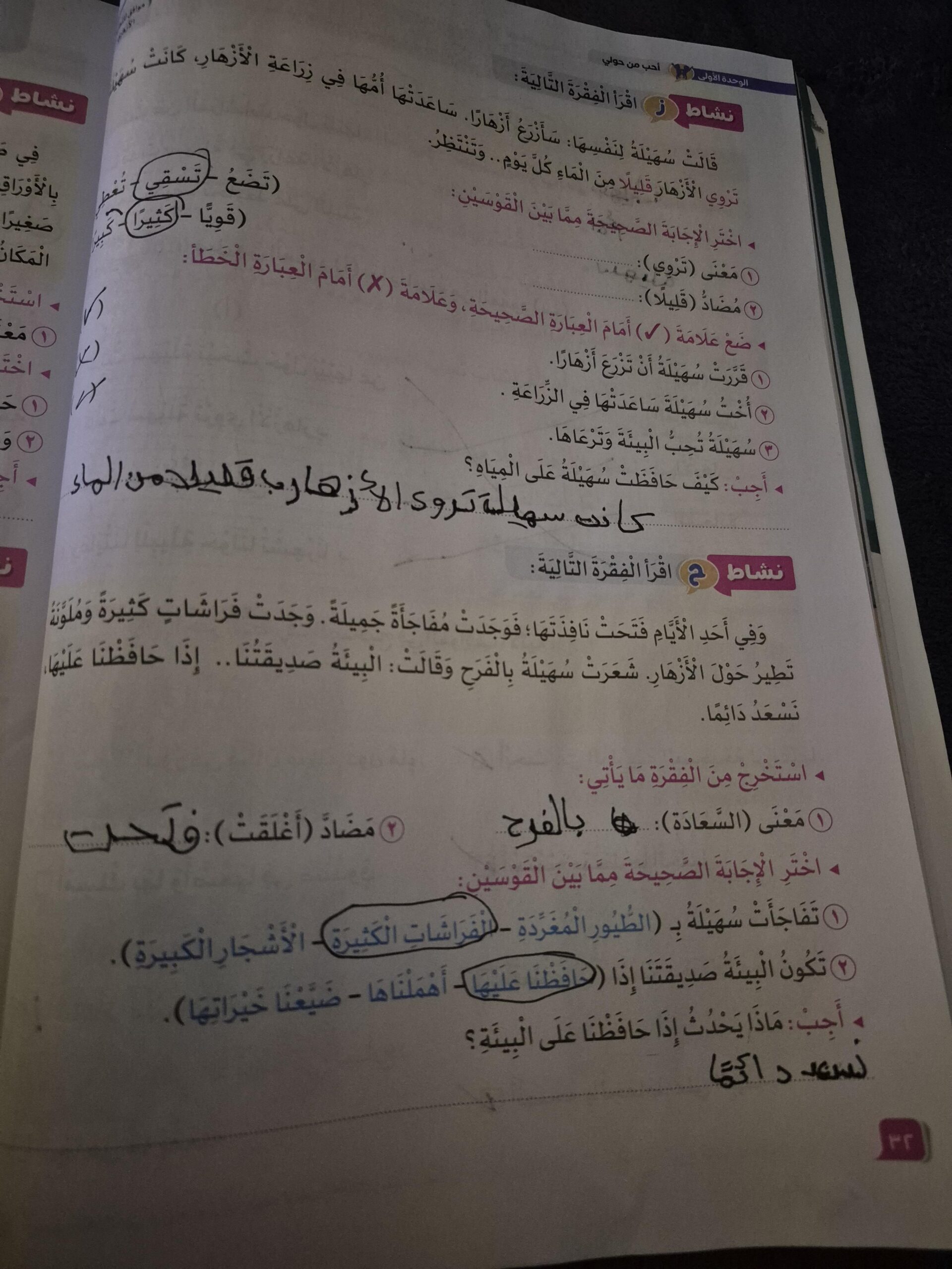الحصة زارتني فراشة الواجب تدريبات الدرس 31-32