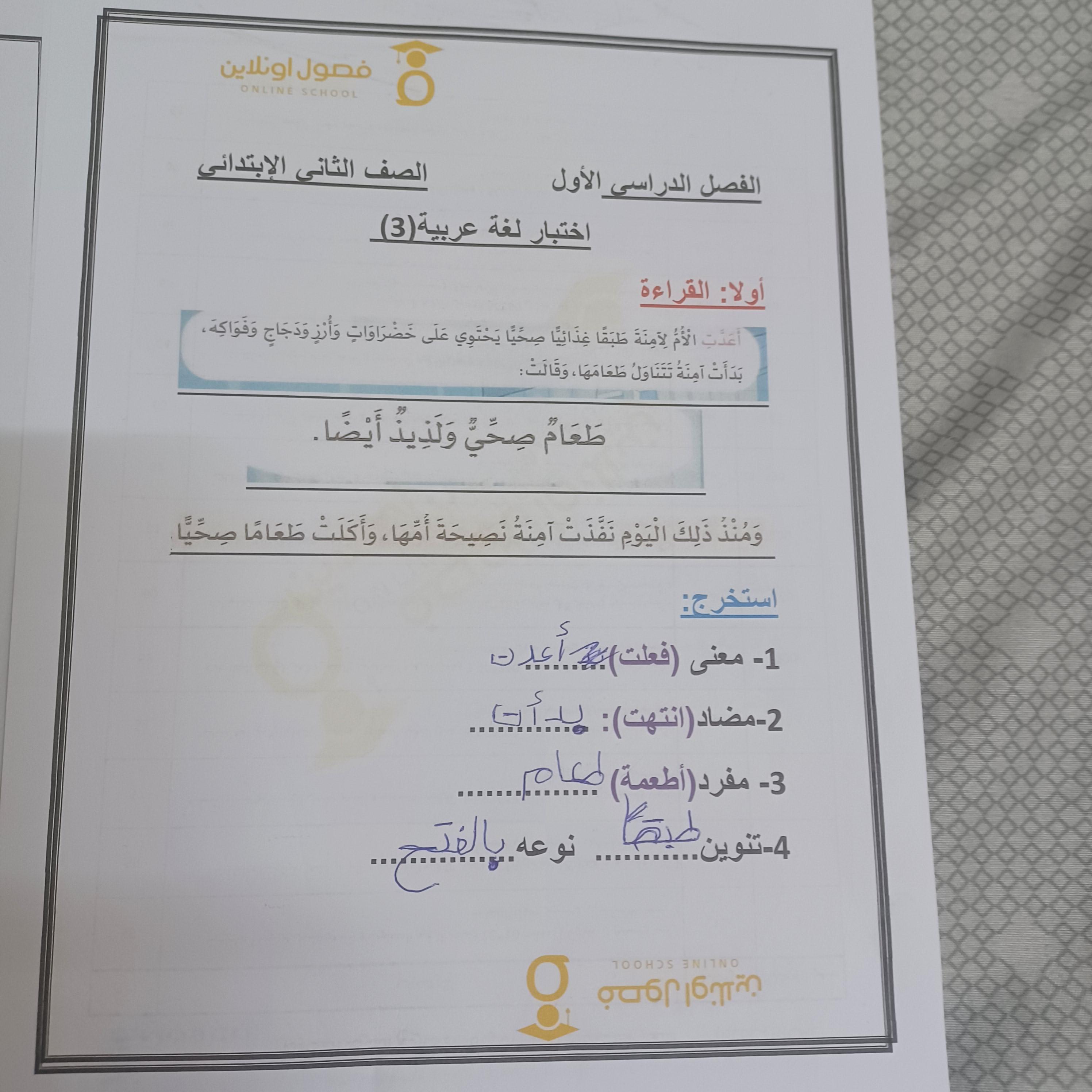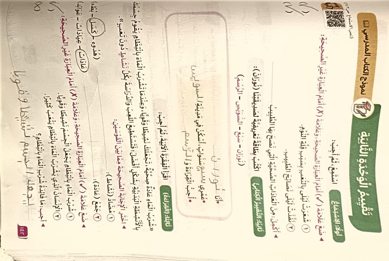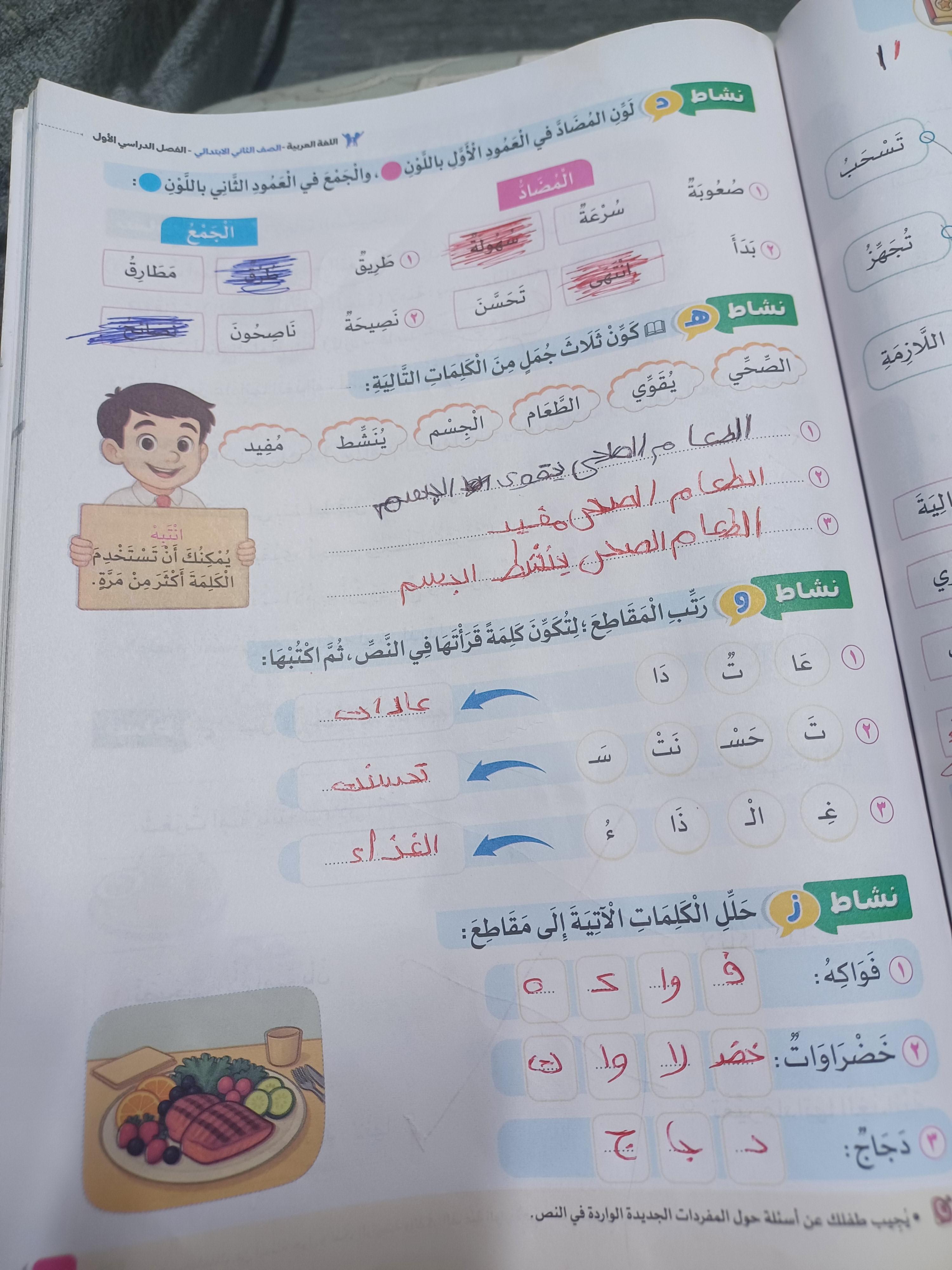 الحصة تقييم 2+ مراجعة القراءة اللى درس (طعام صحي) الواجب لايوجد