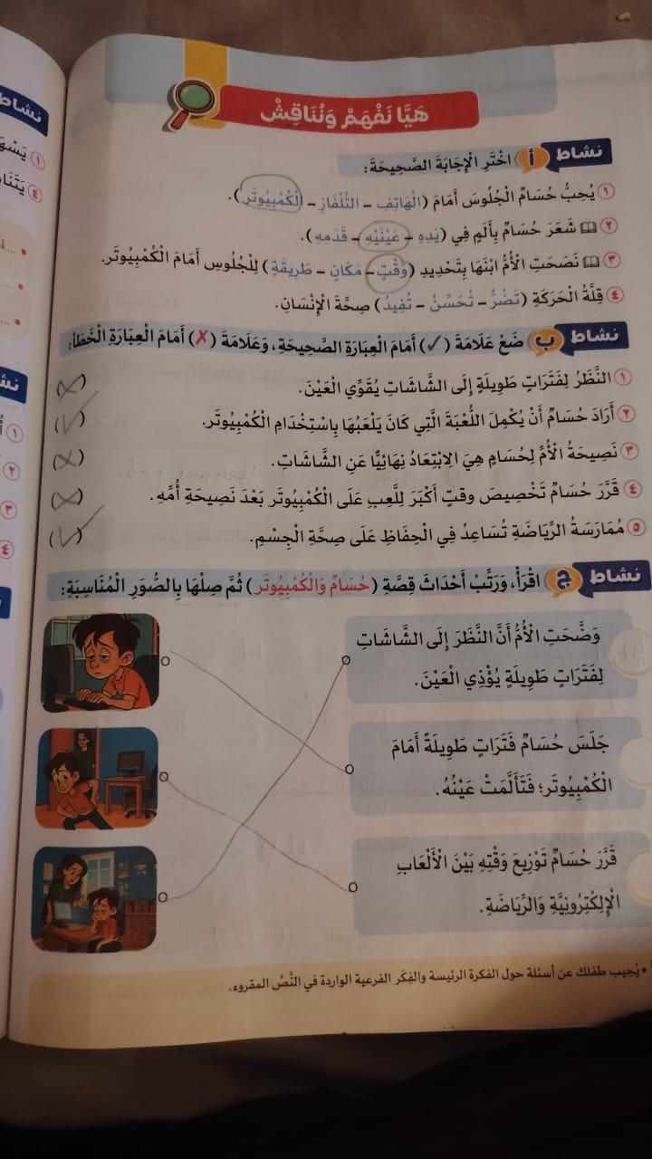 الحصة التحدث (حسام والكمبوتر الواجب لايوجد