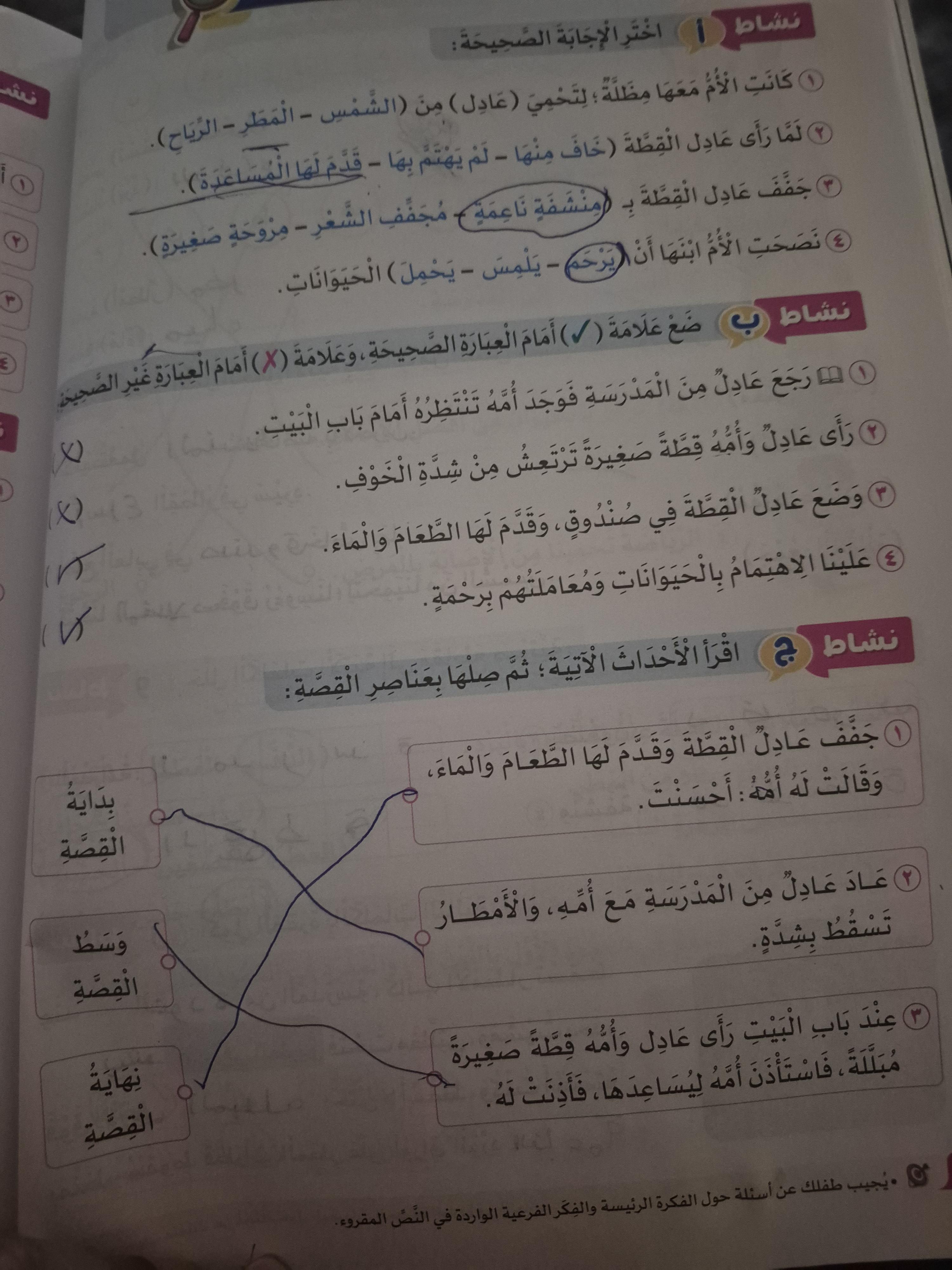 الحصة القطة والمطر+ المفردات الواجب تدريبات الدرس