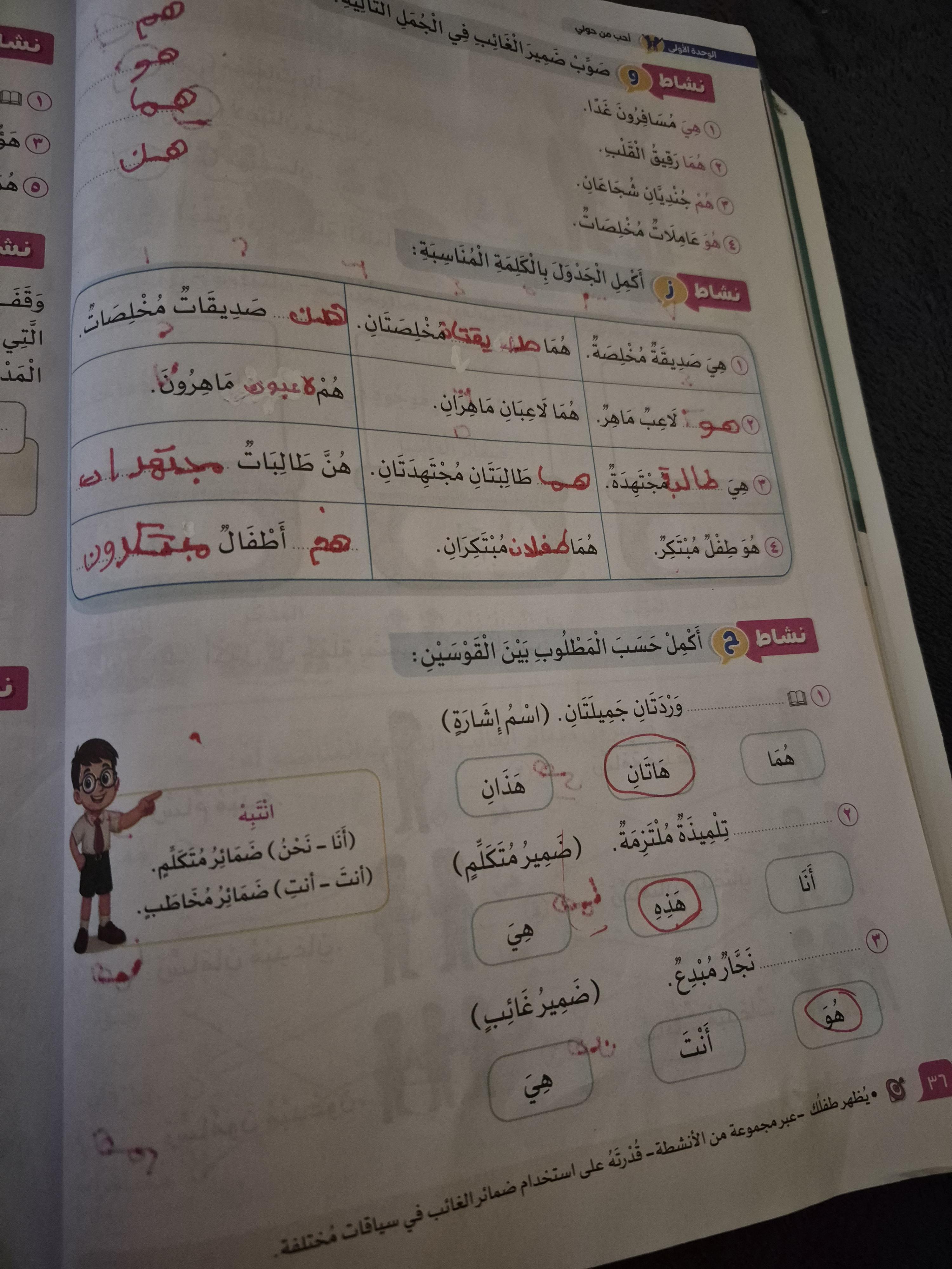 الحصة ضمائرالغائب الواجب تدريبات الدرس