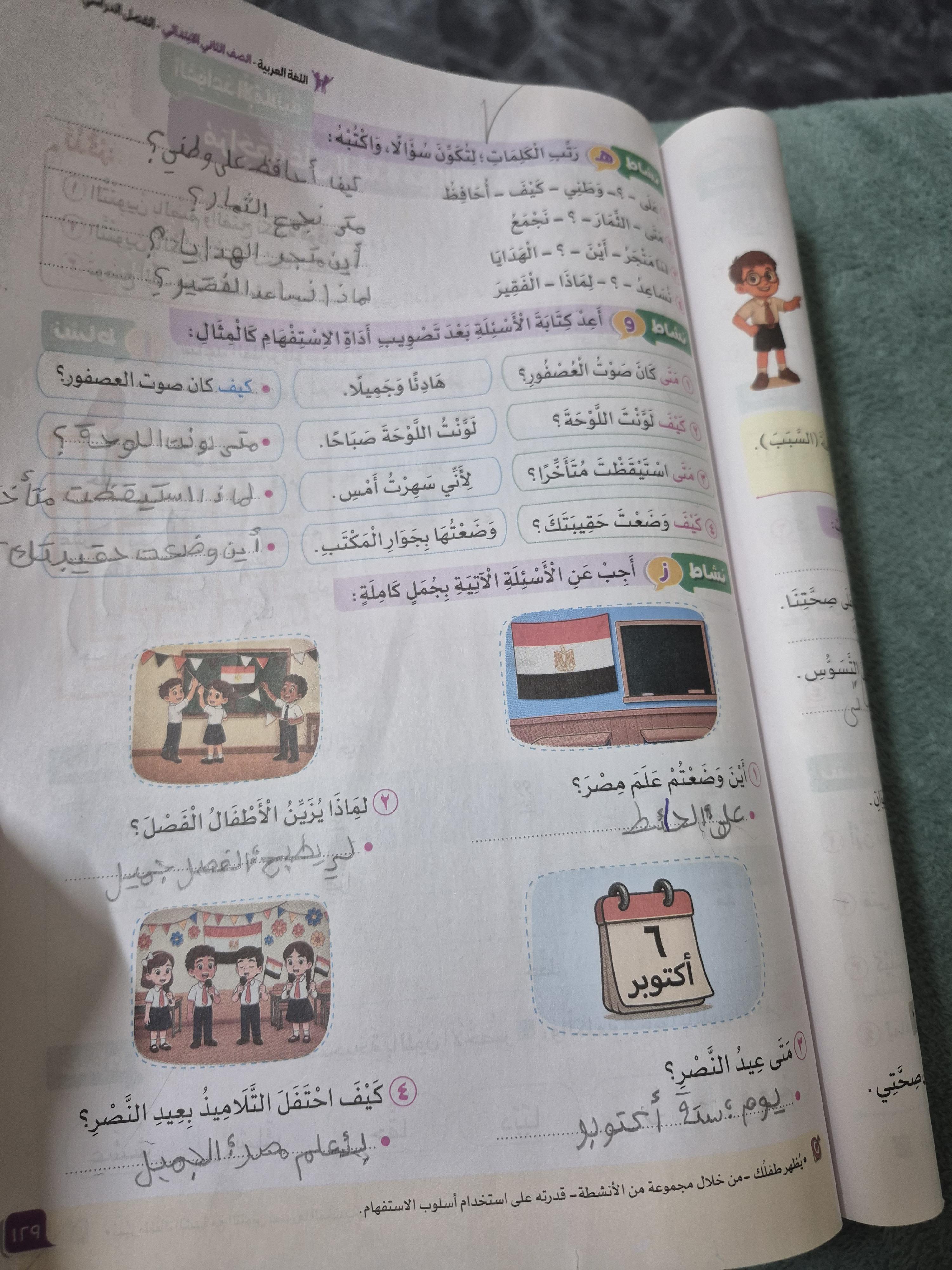 الحصة السادس من اكتوبر + المفردات الواجب تدريبات الدرس