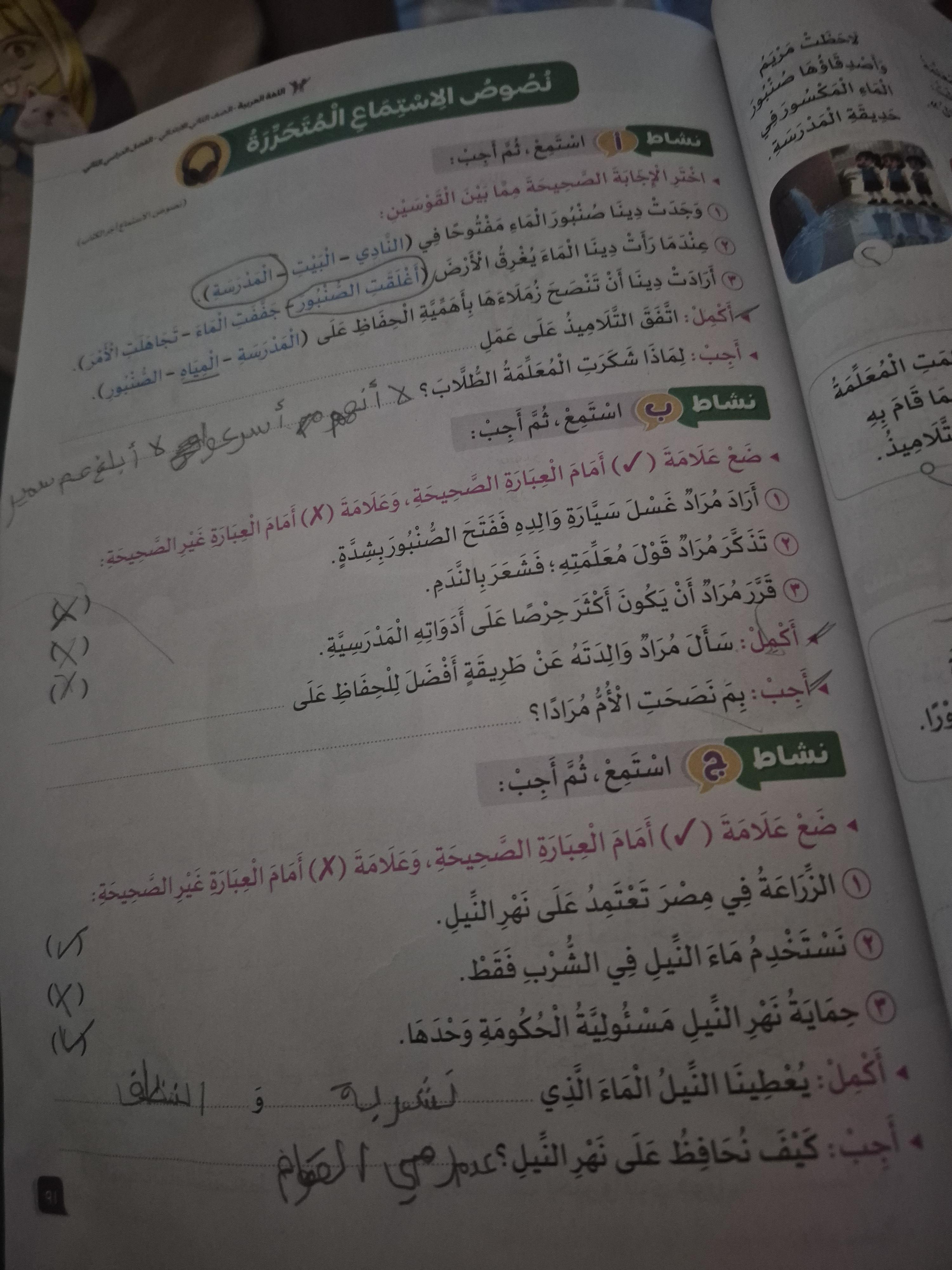 الحصة درس ( ابحثوا معي + الماء نعمة بالمفردات الواجب اجابه تدريبات الدرسيبن