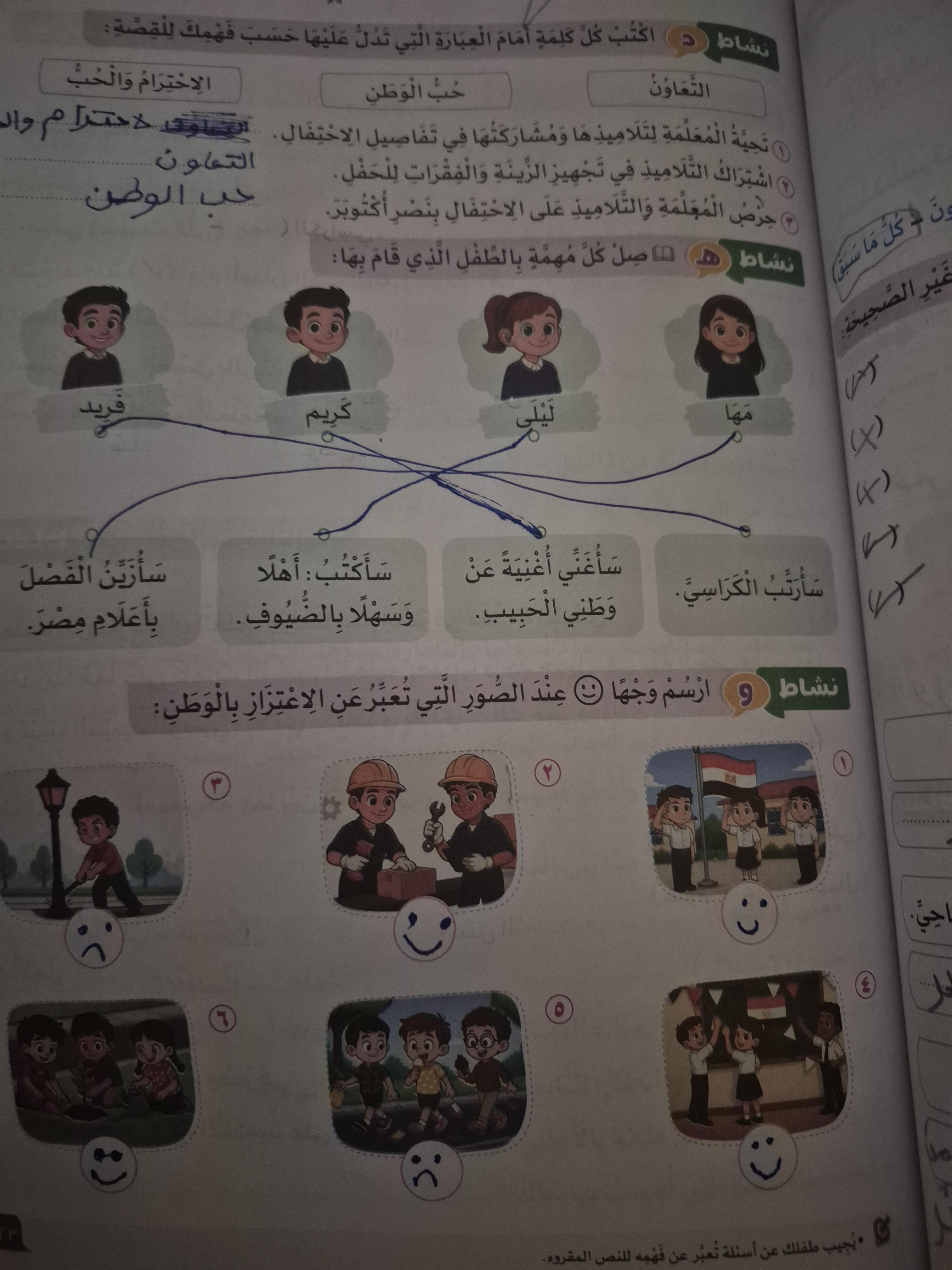 الحصة تحدث( اعرفكم بنفسي + يوم النصر كتابة وصف السلوك الواجب تدريبات