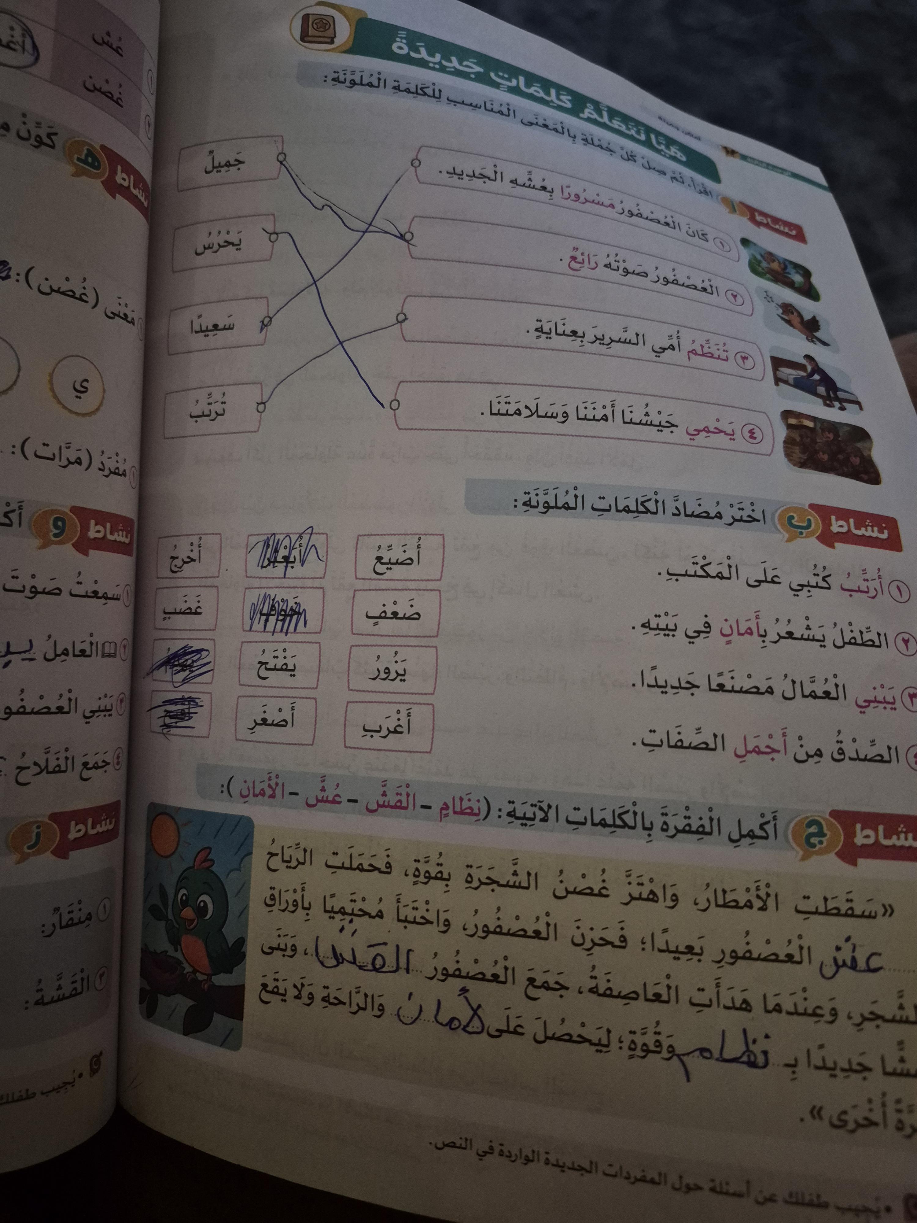 الحصة عش جميل (+ المفردات الواجب تدريبات الدرس