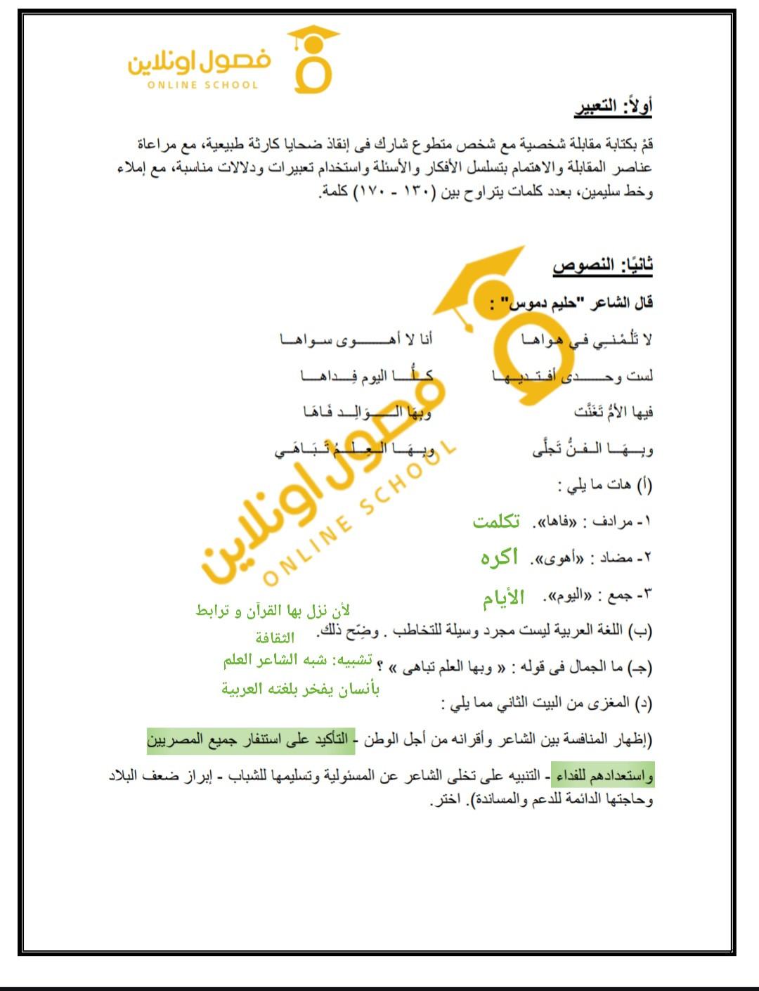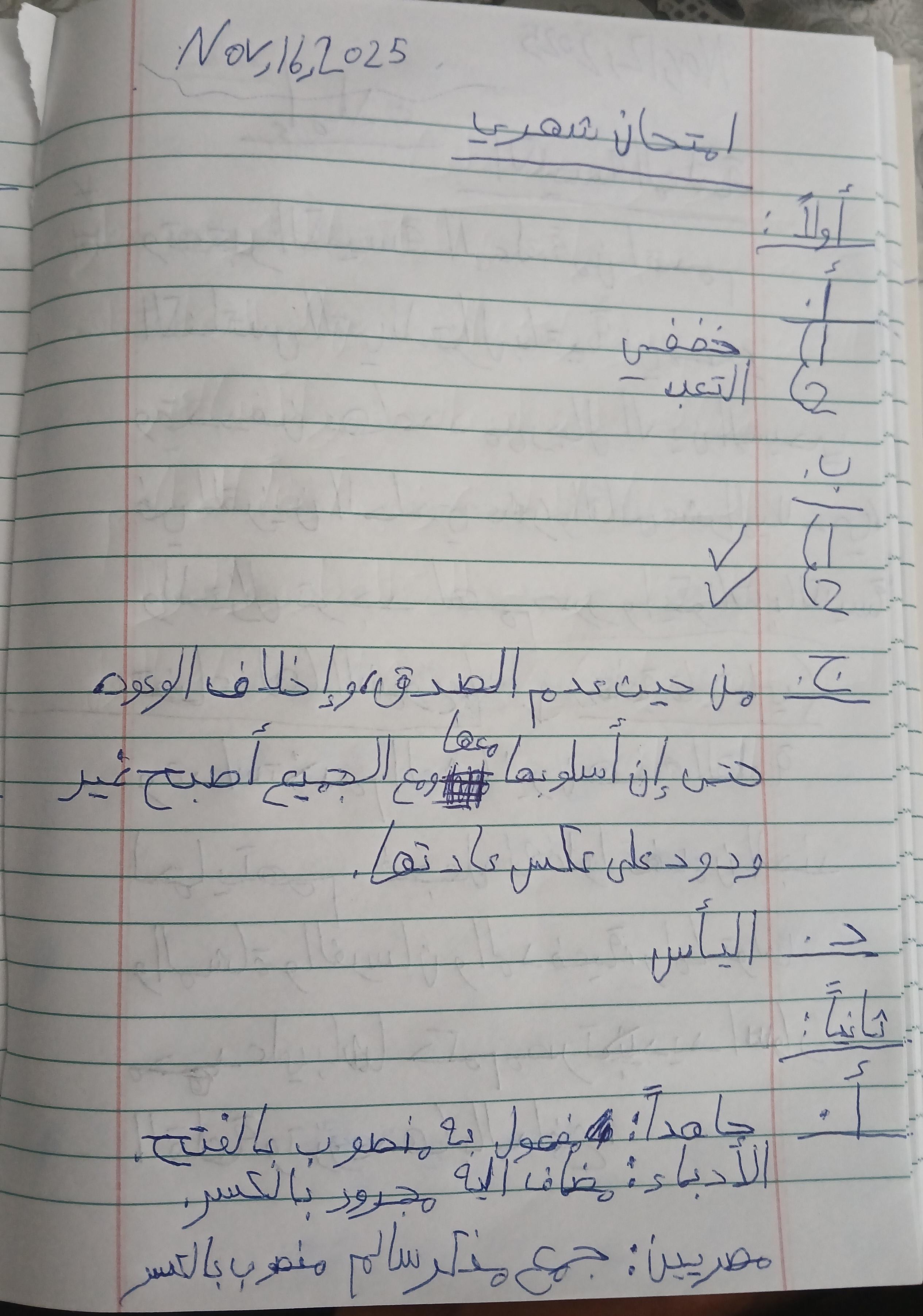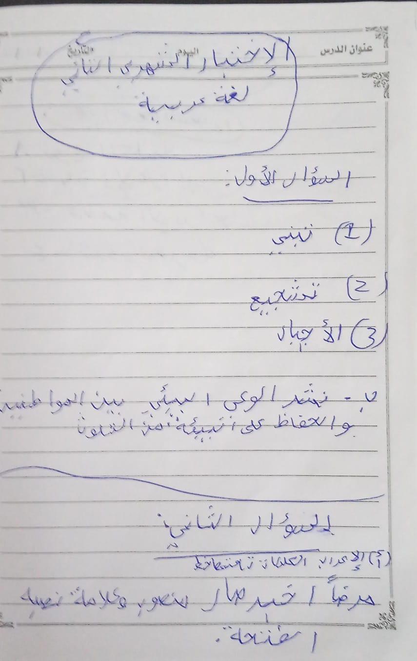تم حل امتحان الشهري الثاني كله ما عدا التعبير هحلوا بعد الحصص إن شاء الله