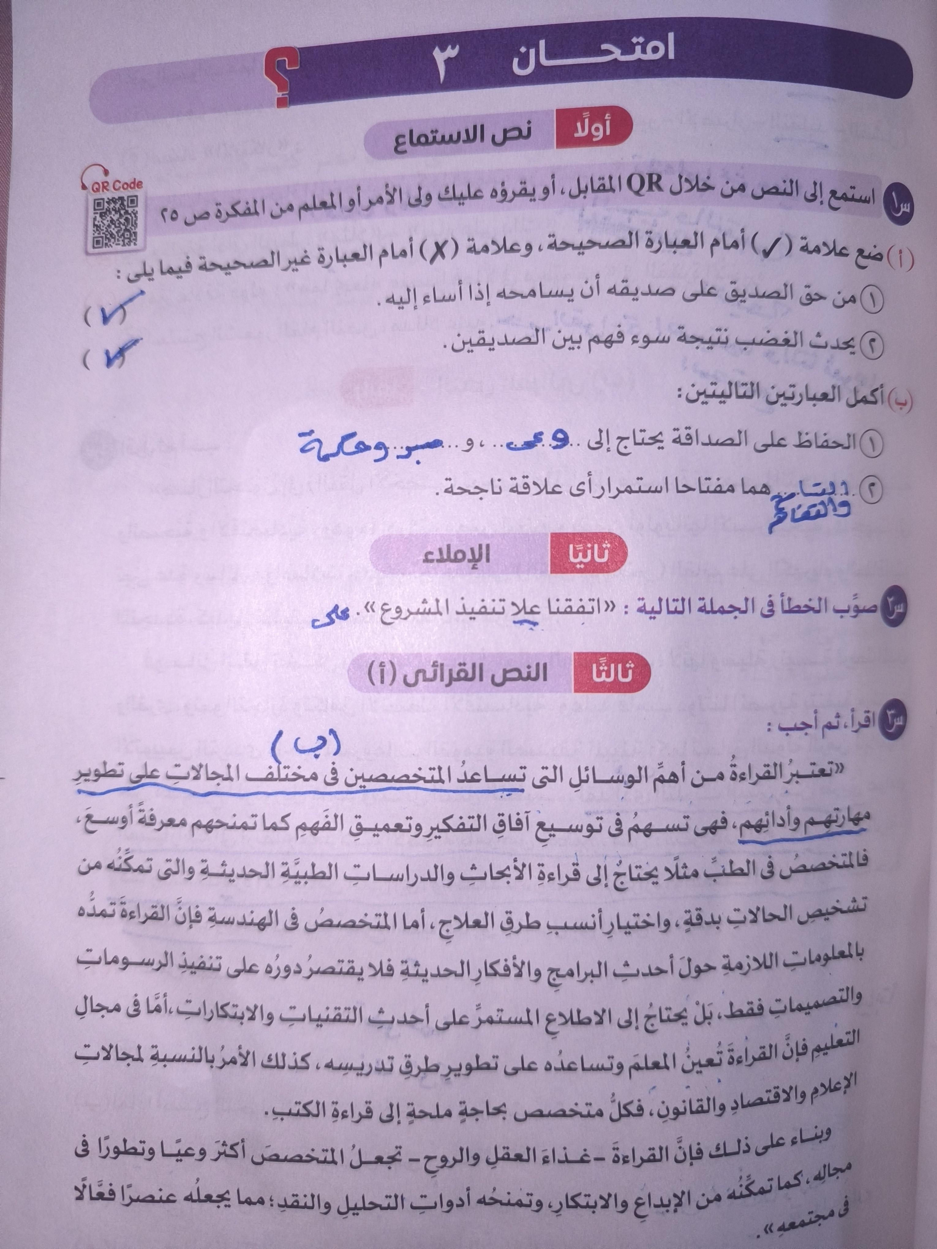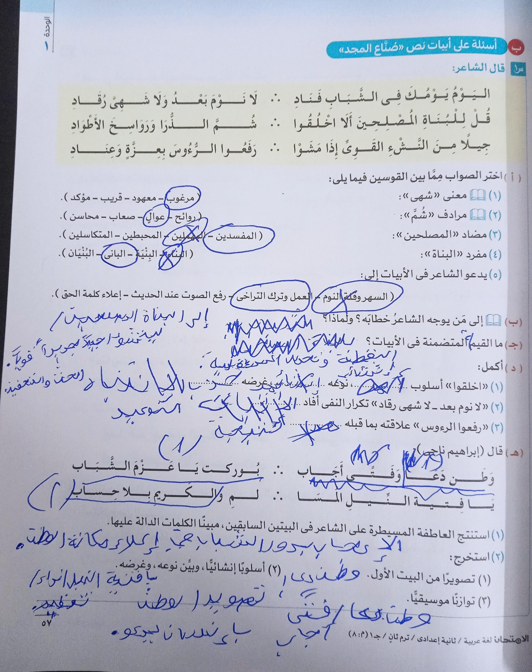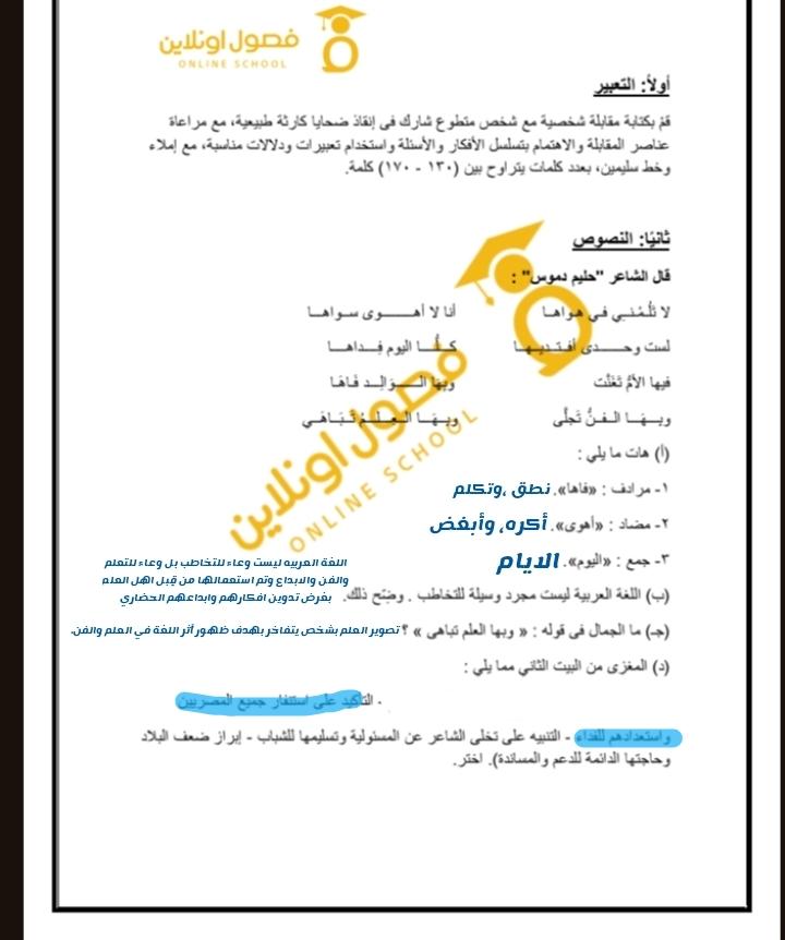 تم حل امتحان الشهري الثاني كله ما عدا التعبير هحلوا بعد الحصص إن شاء الله