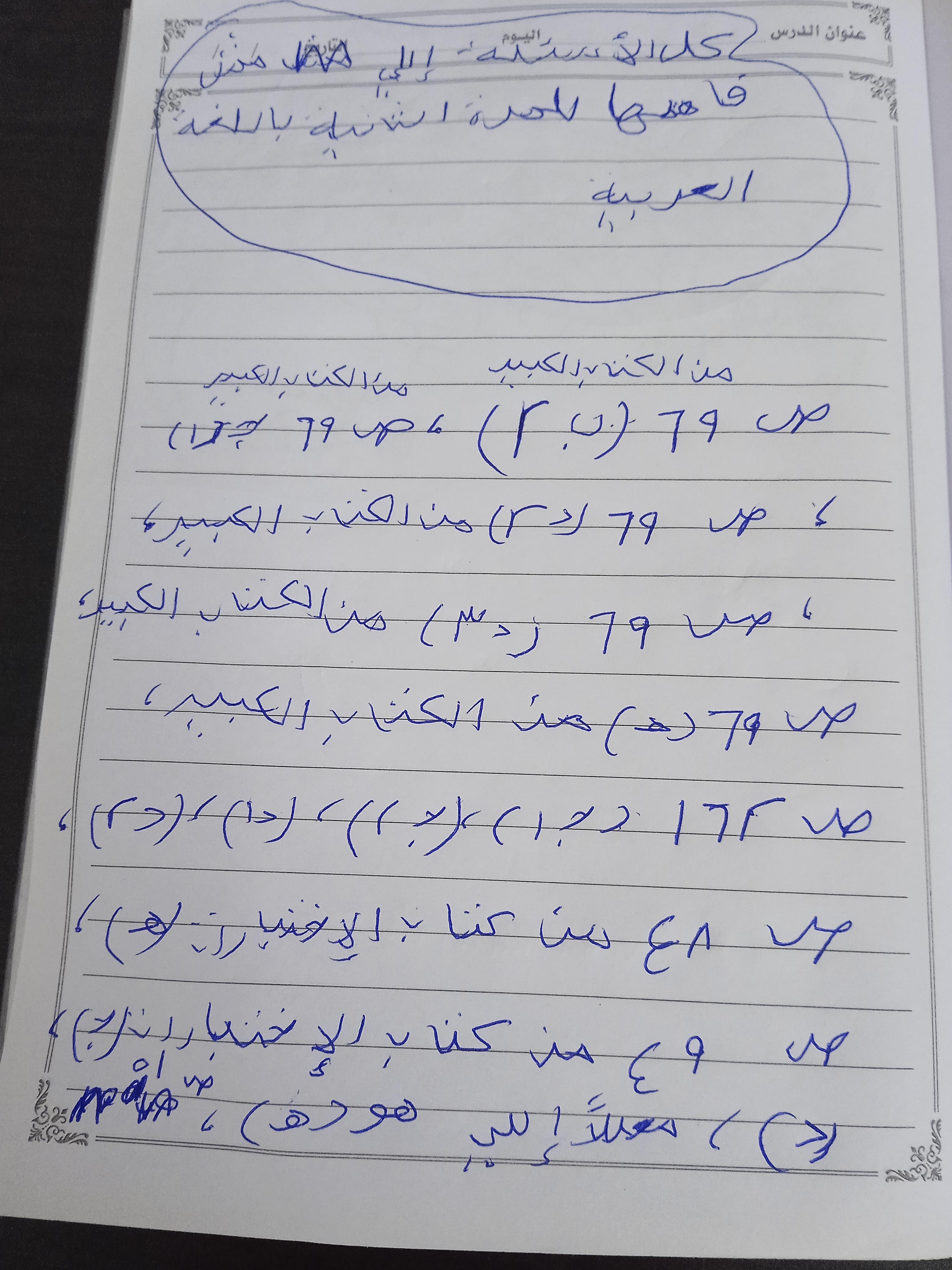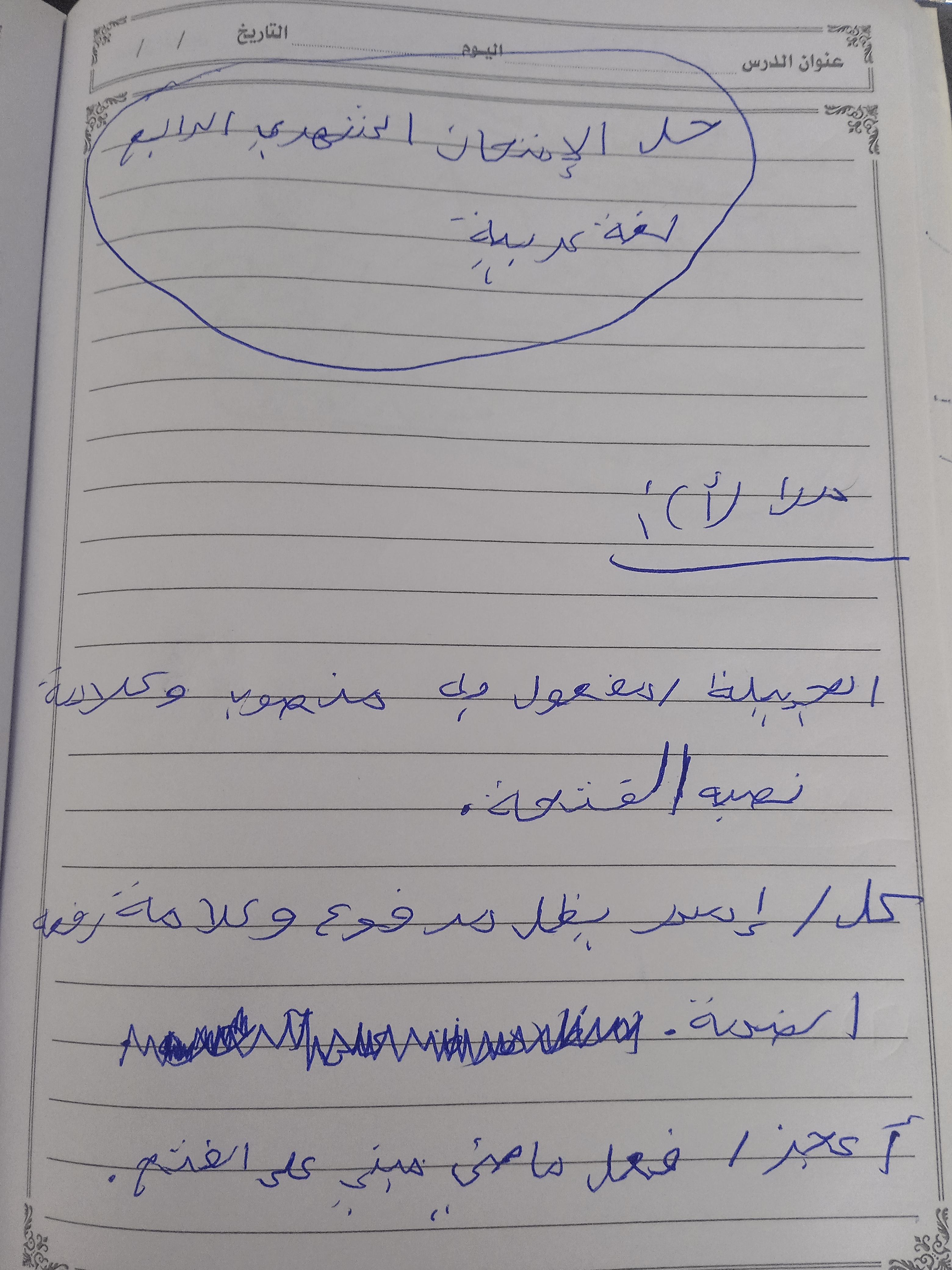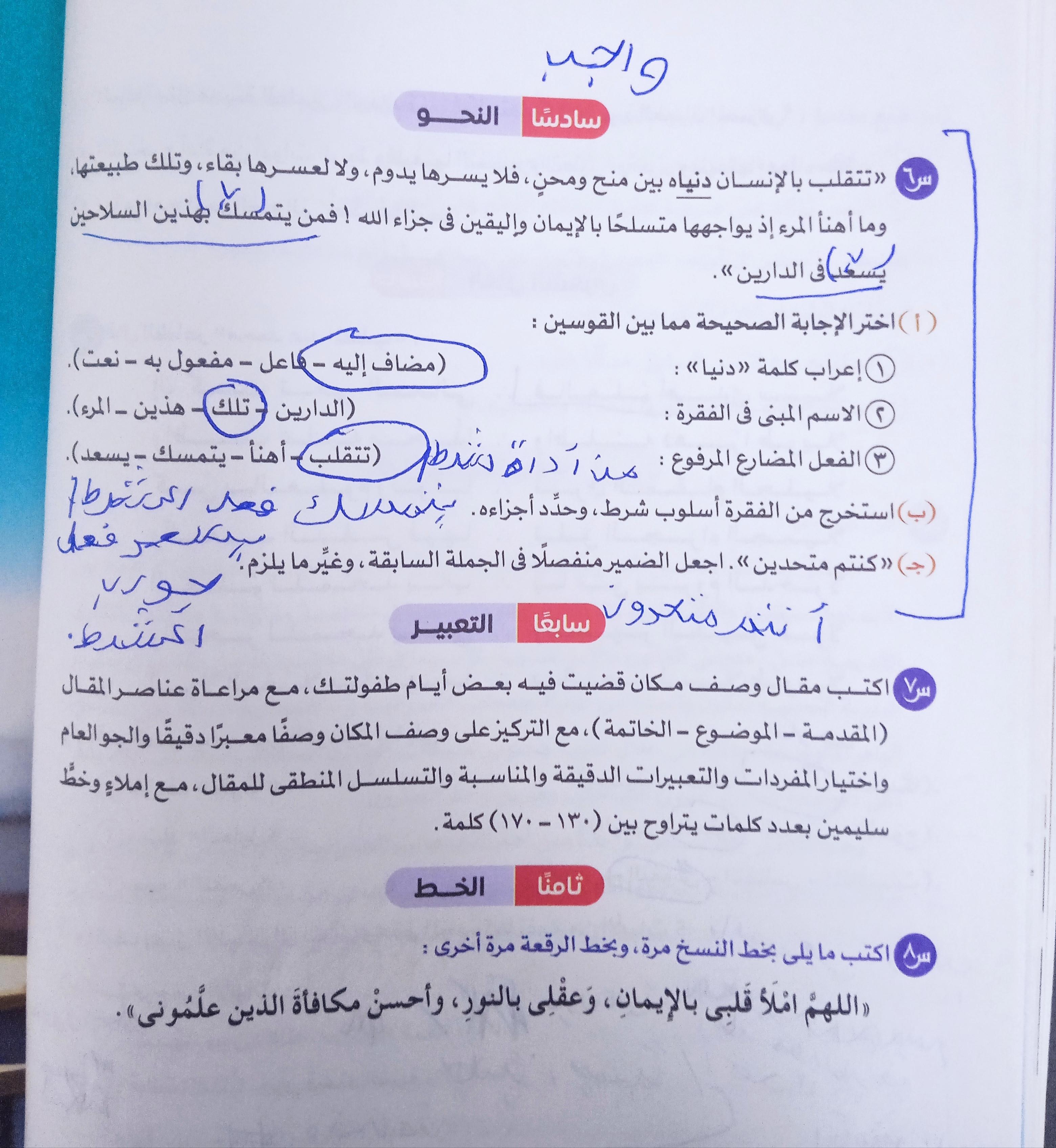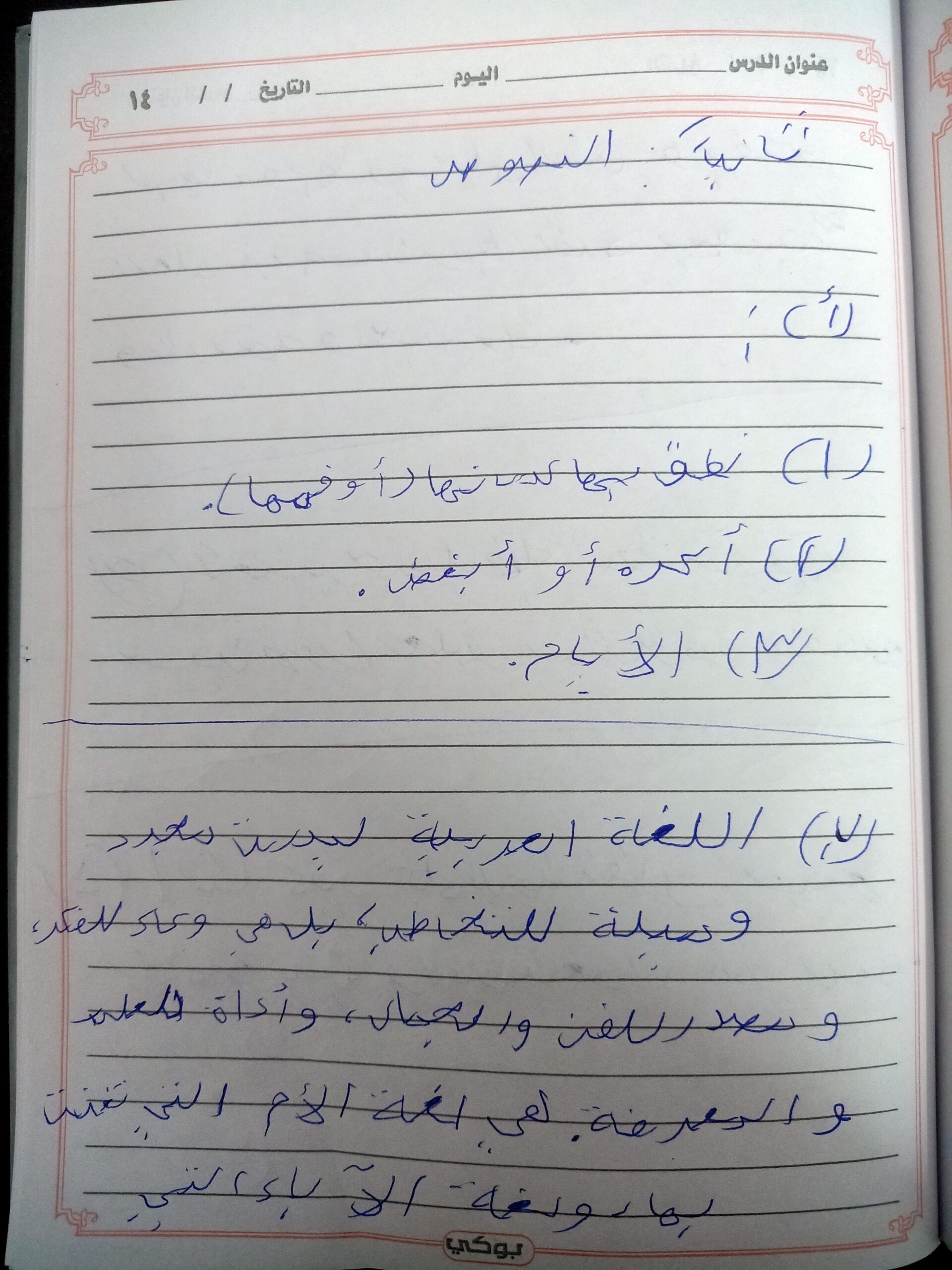 واجب العربي اليوم + انا اول واحد يكتب الواجب