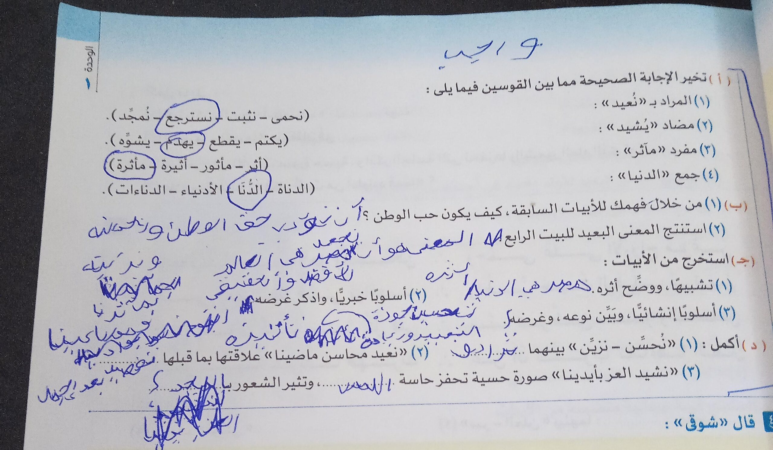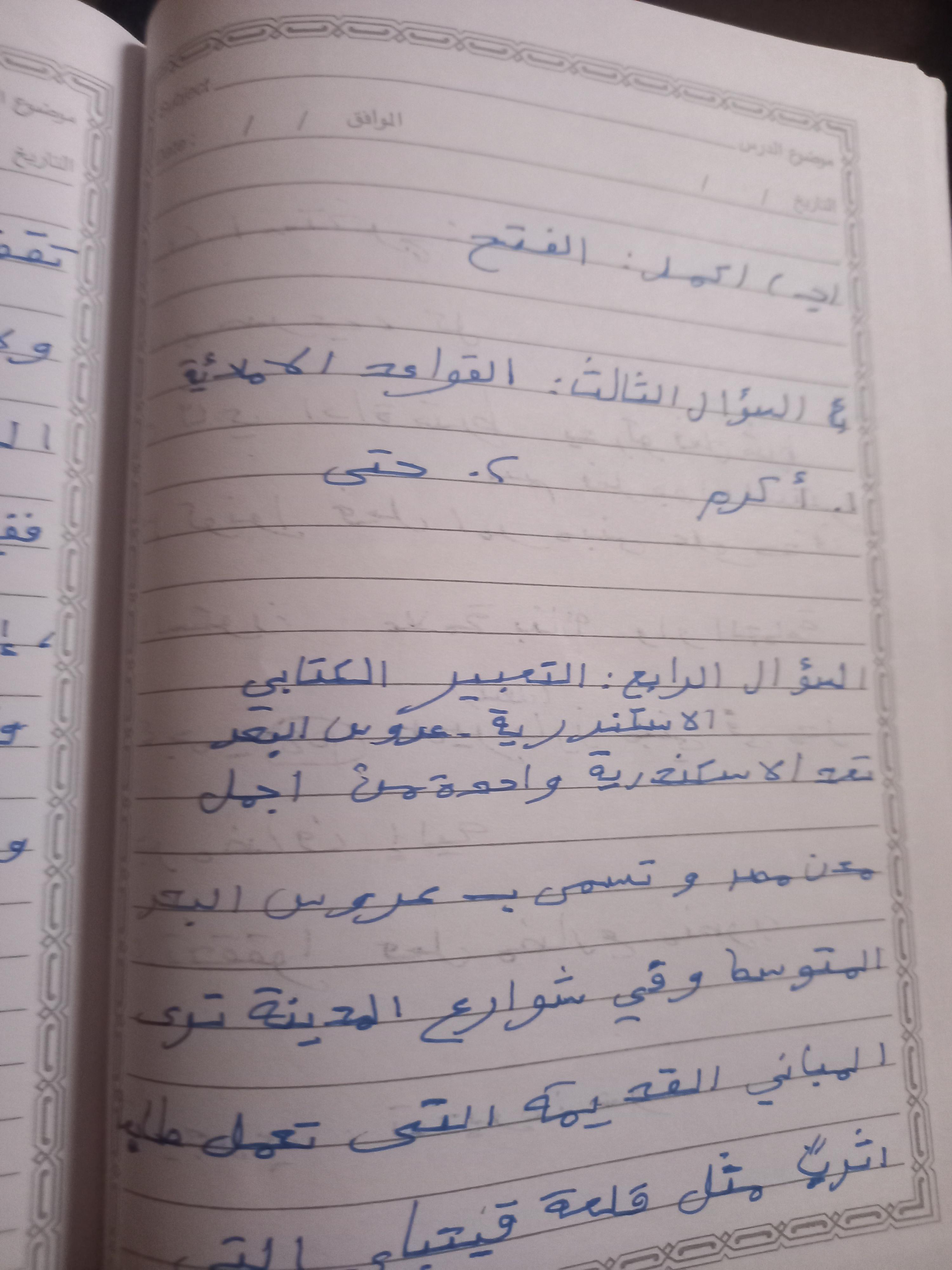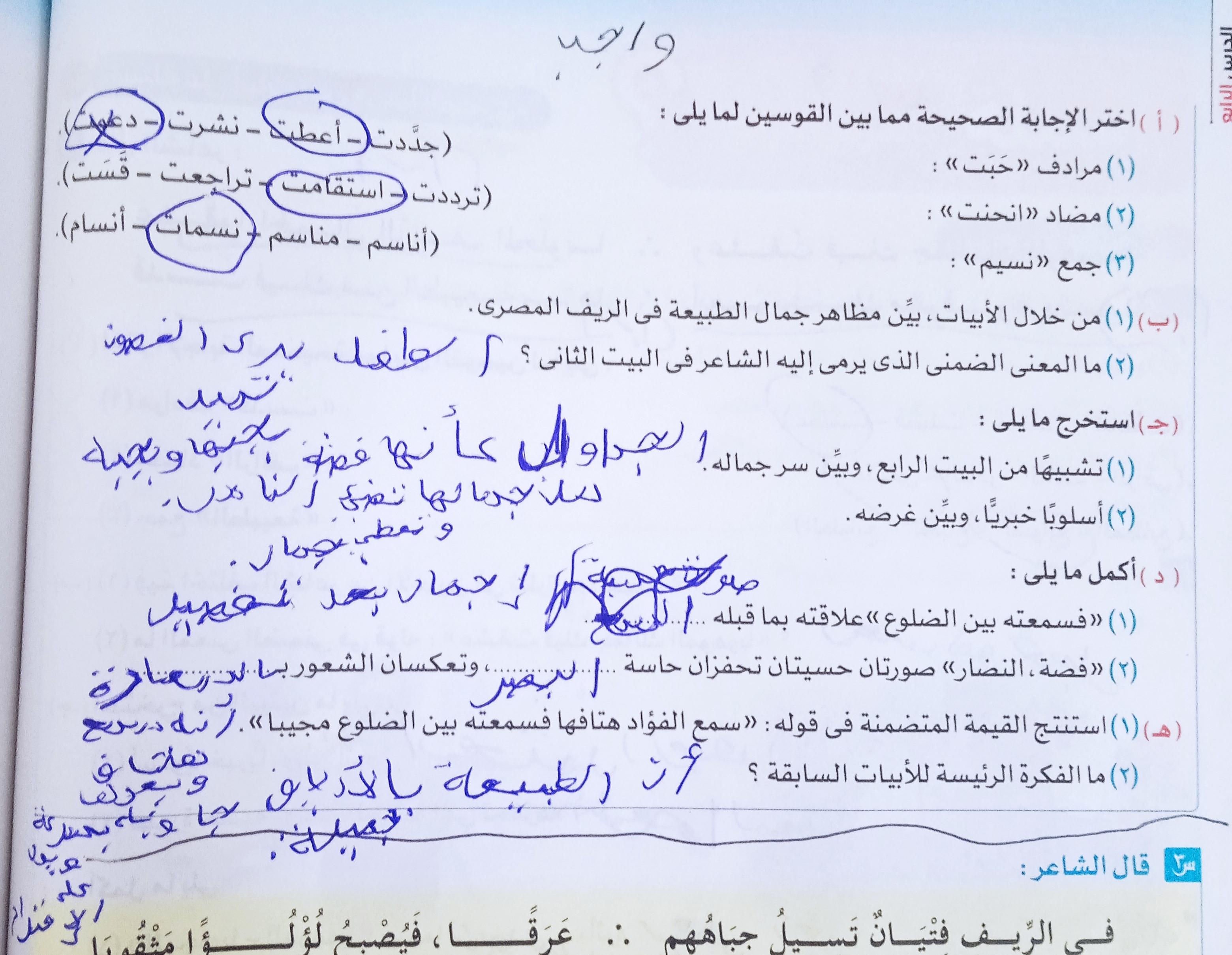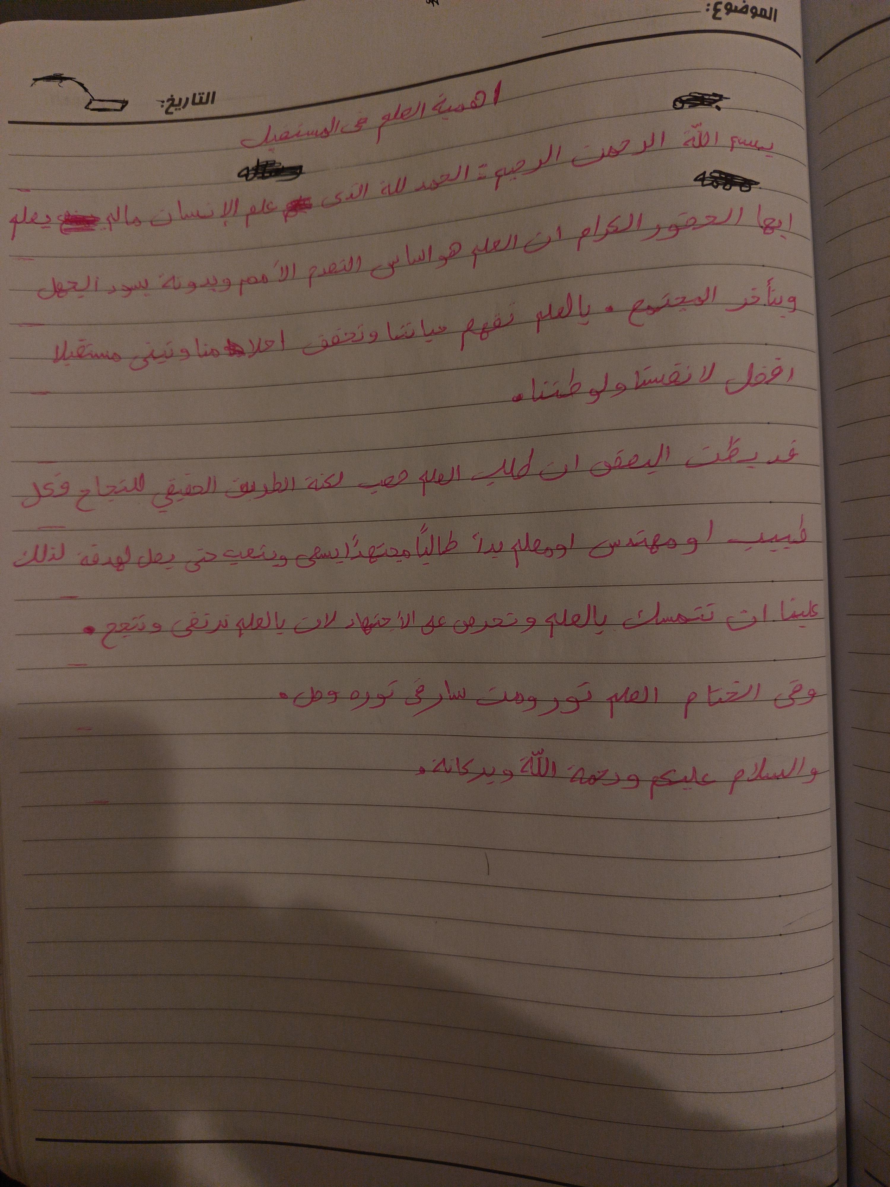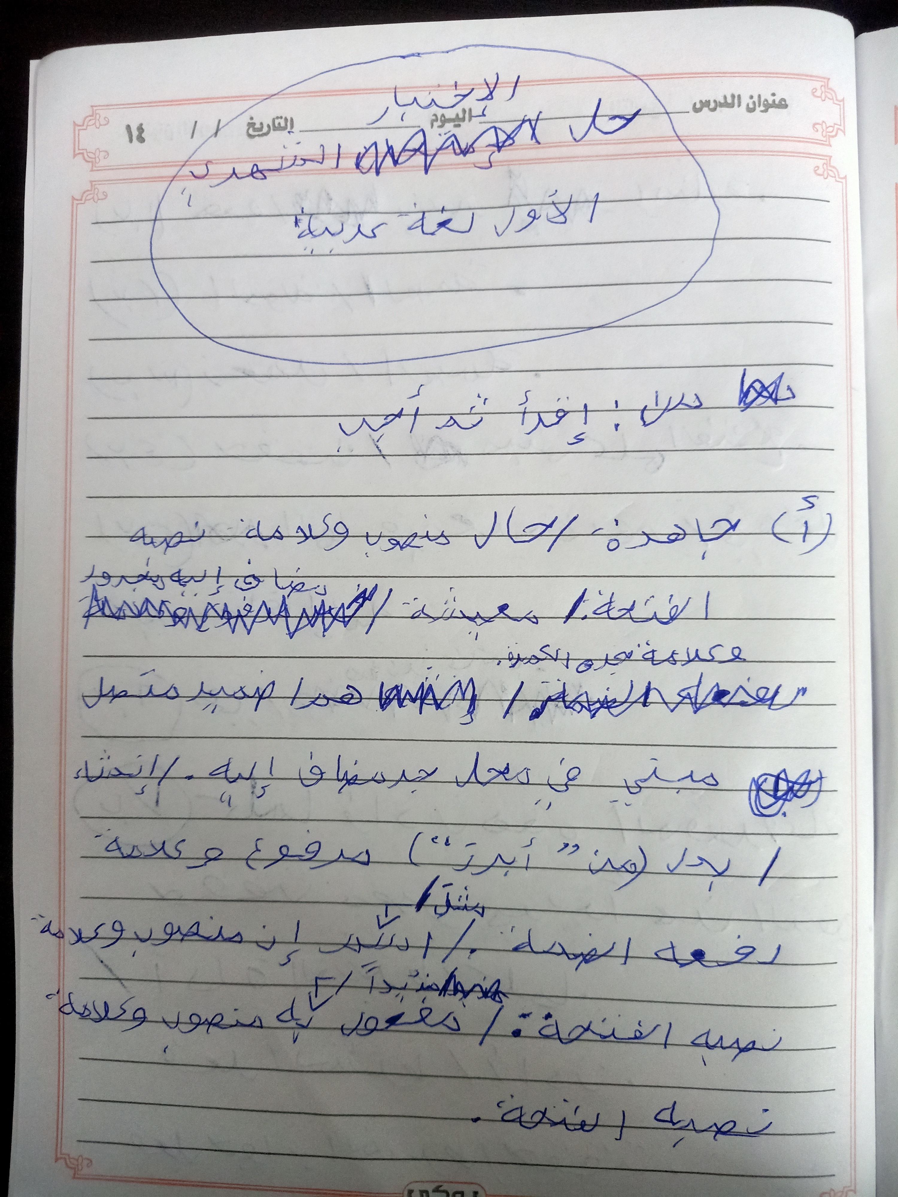 واجب العربي اليوم + انا اول واحد يكتب الواجب