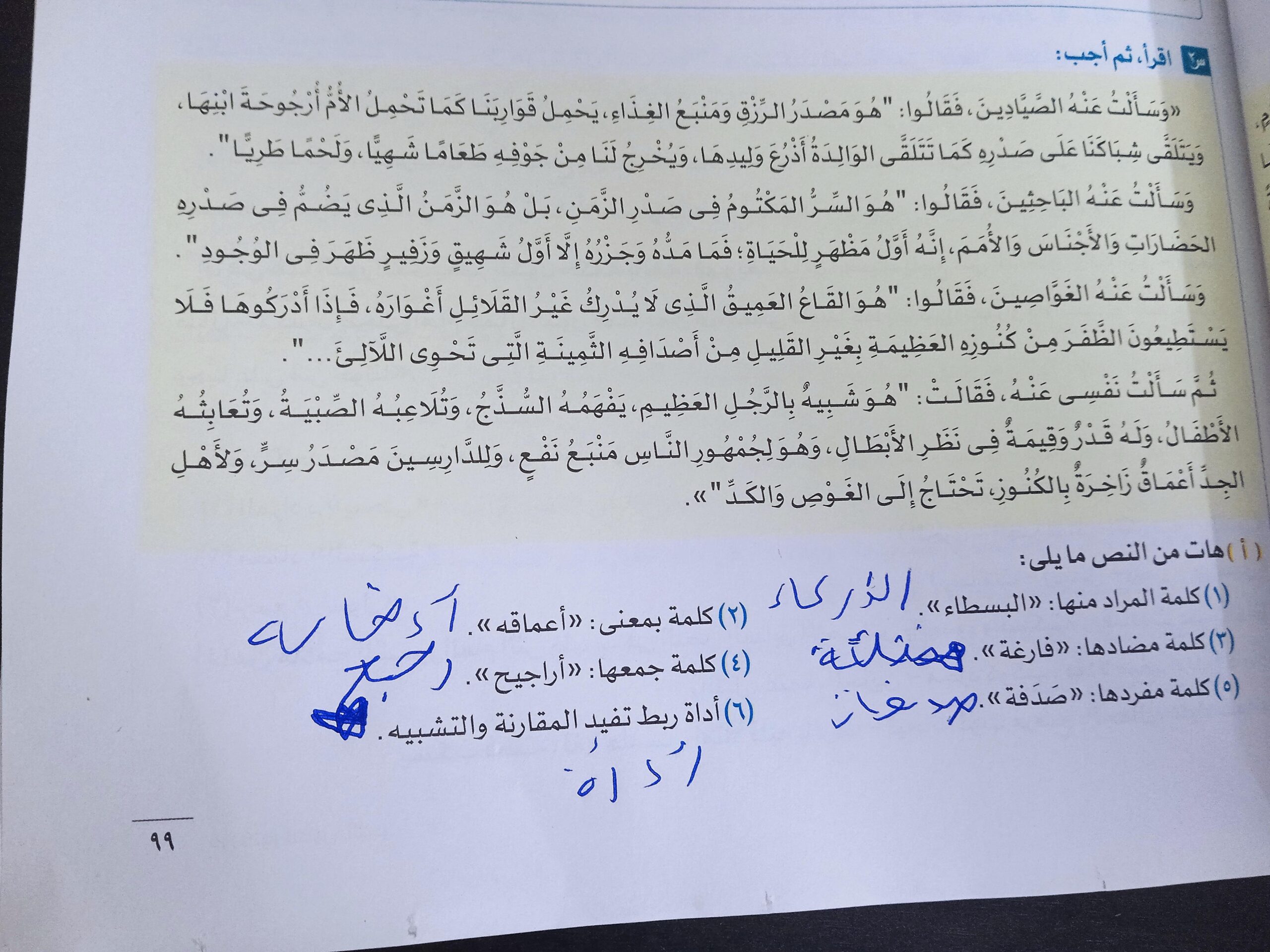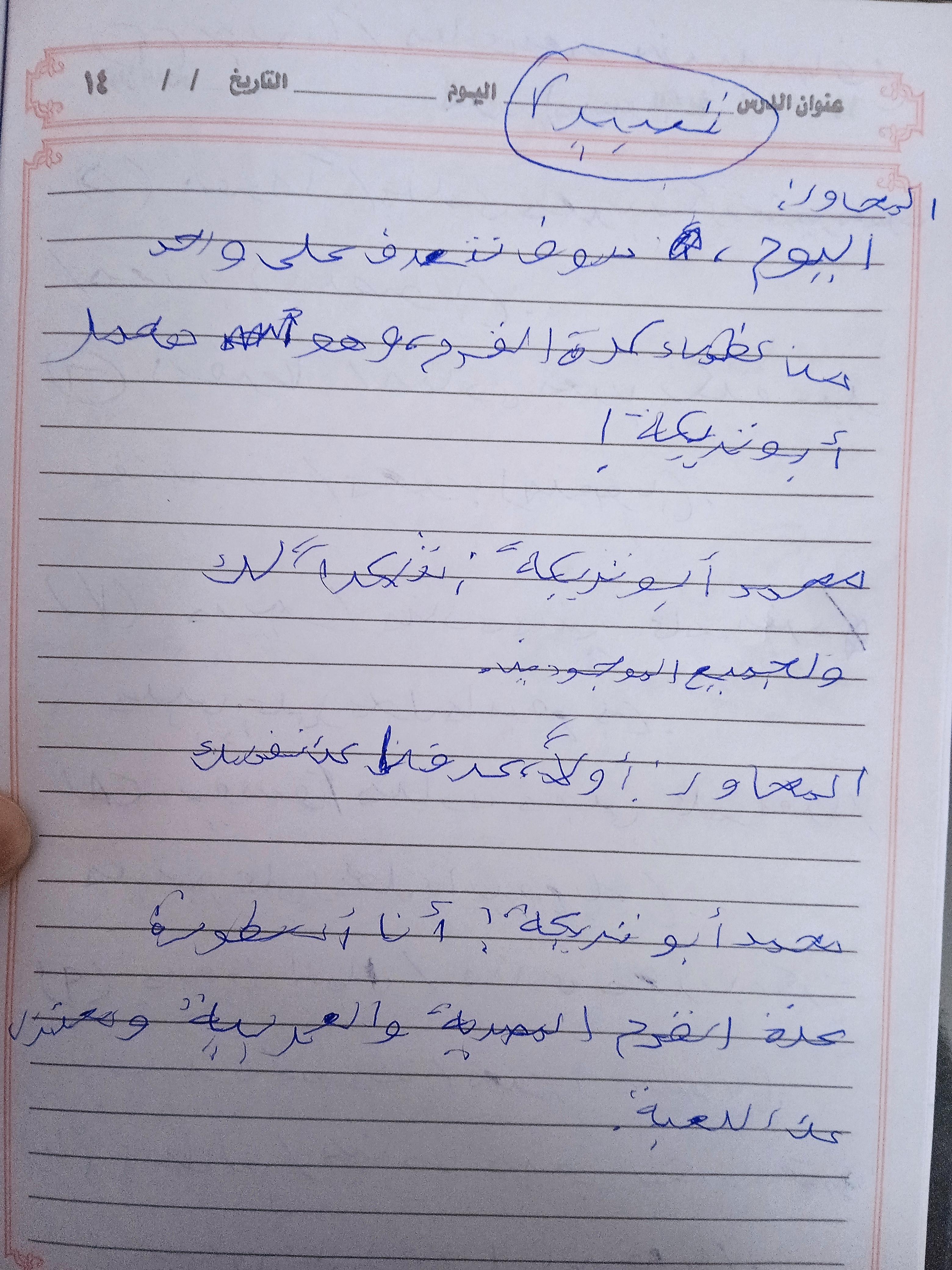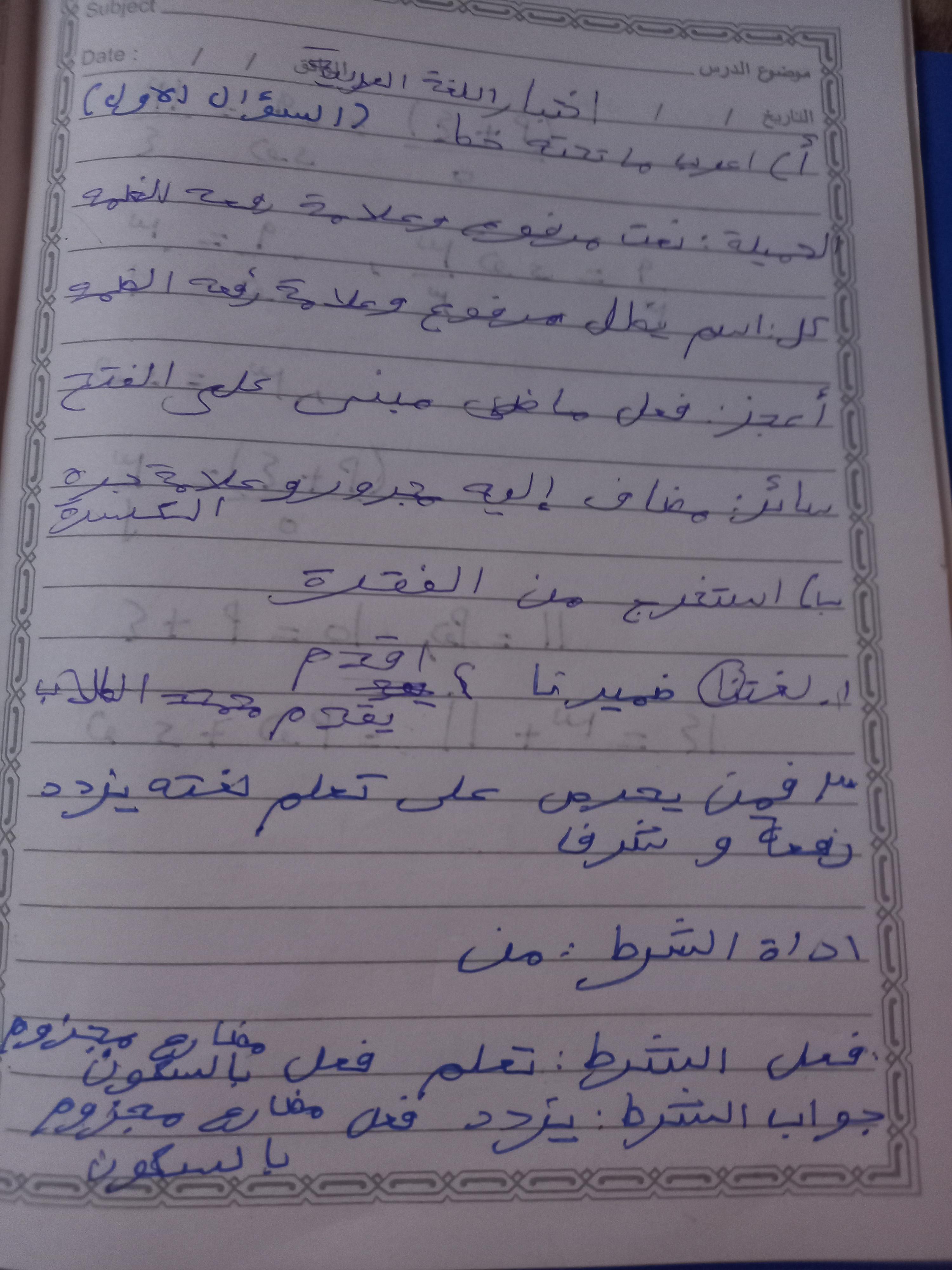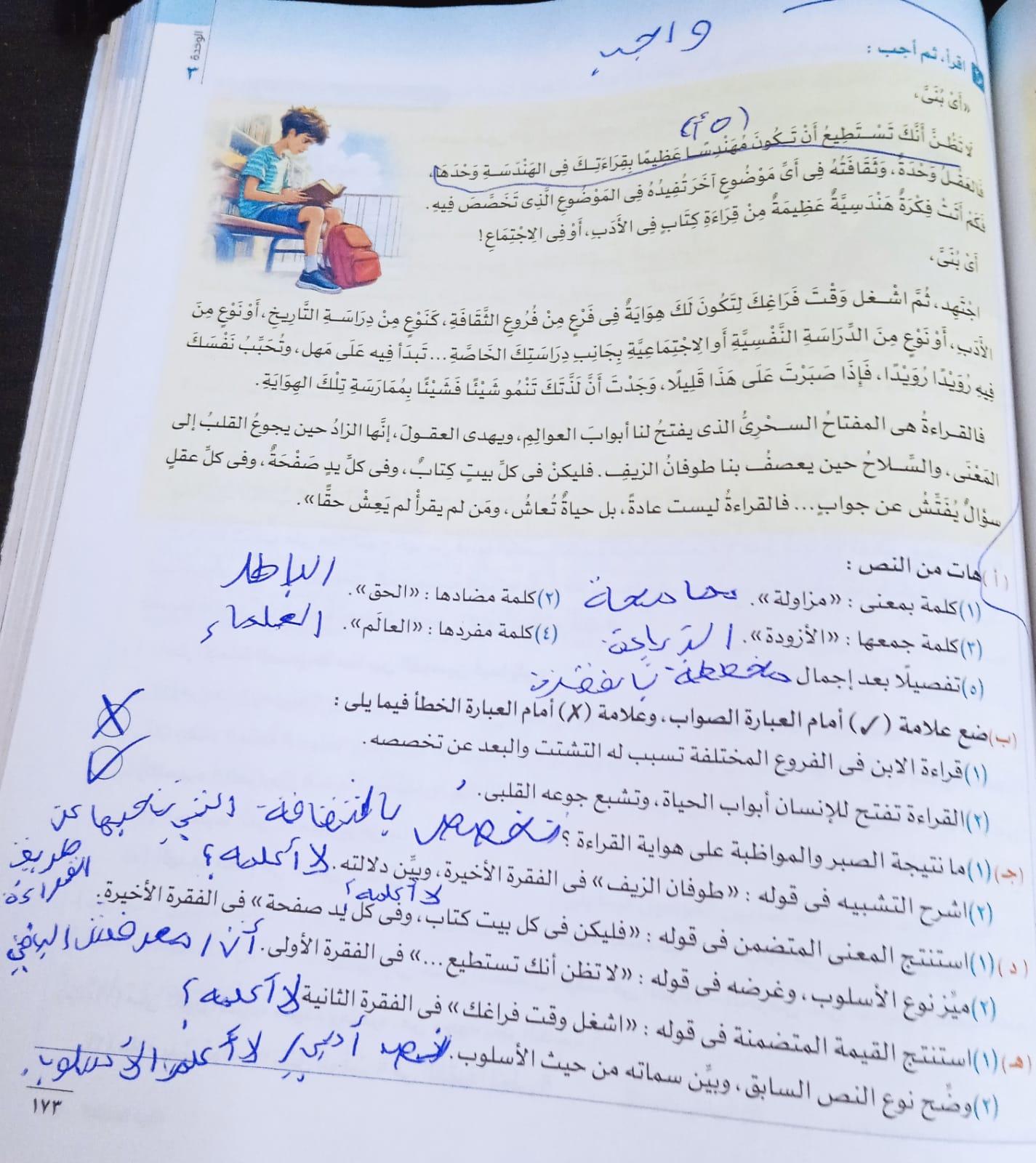 واجب العربي اليوم + انا اول واحد يكتب الواجب