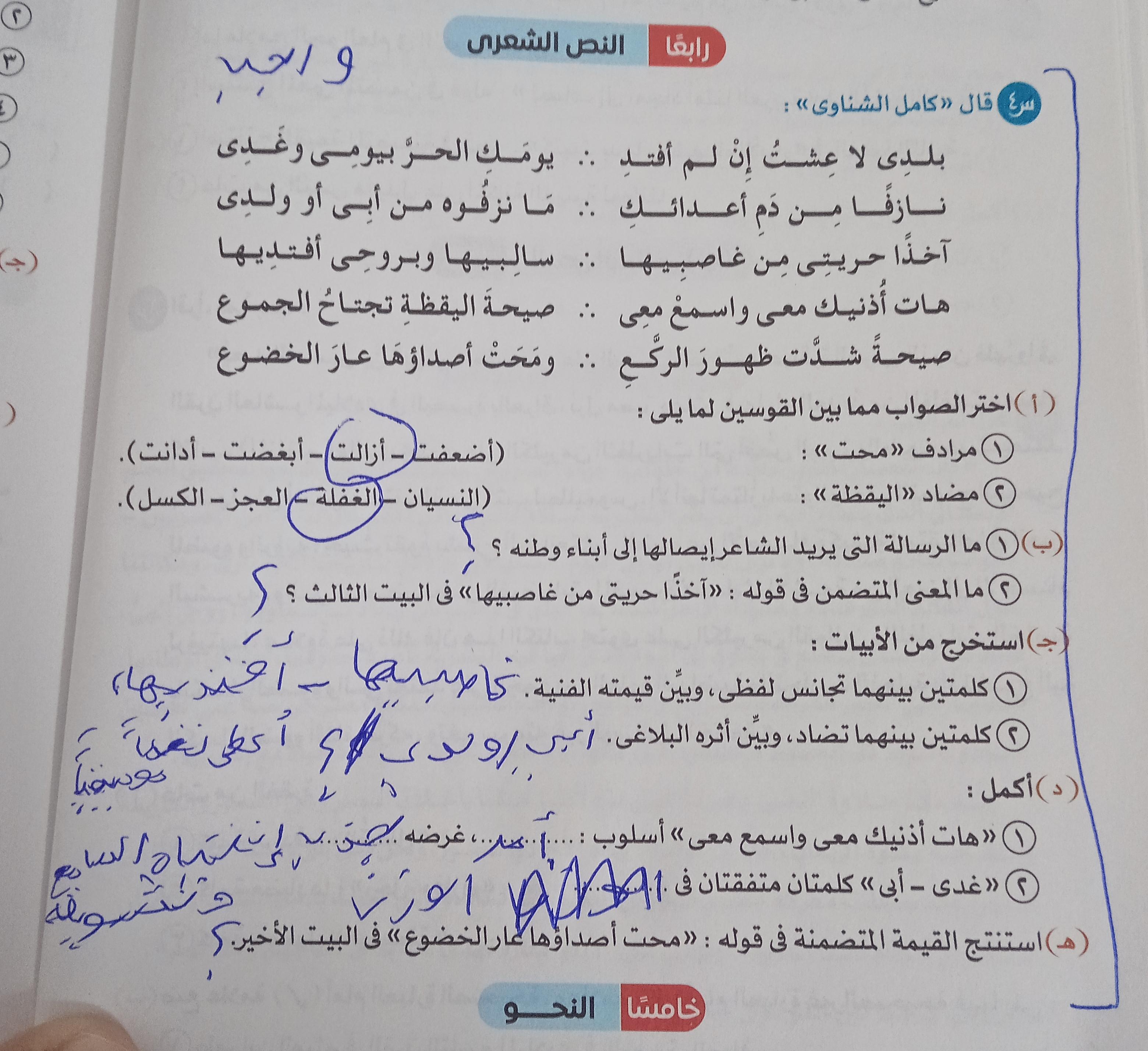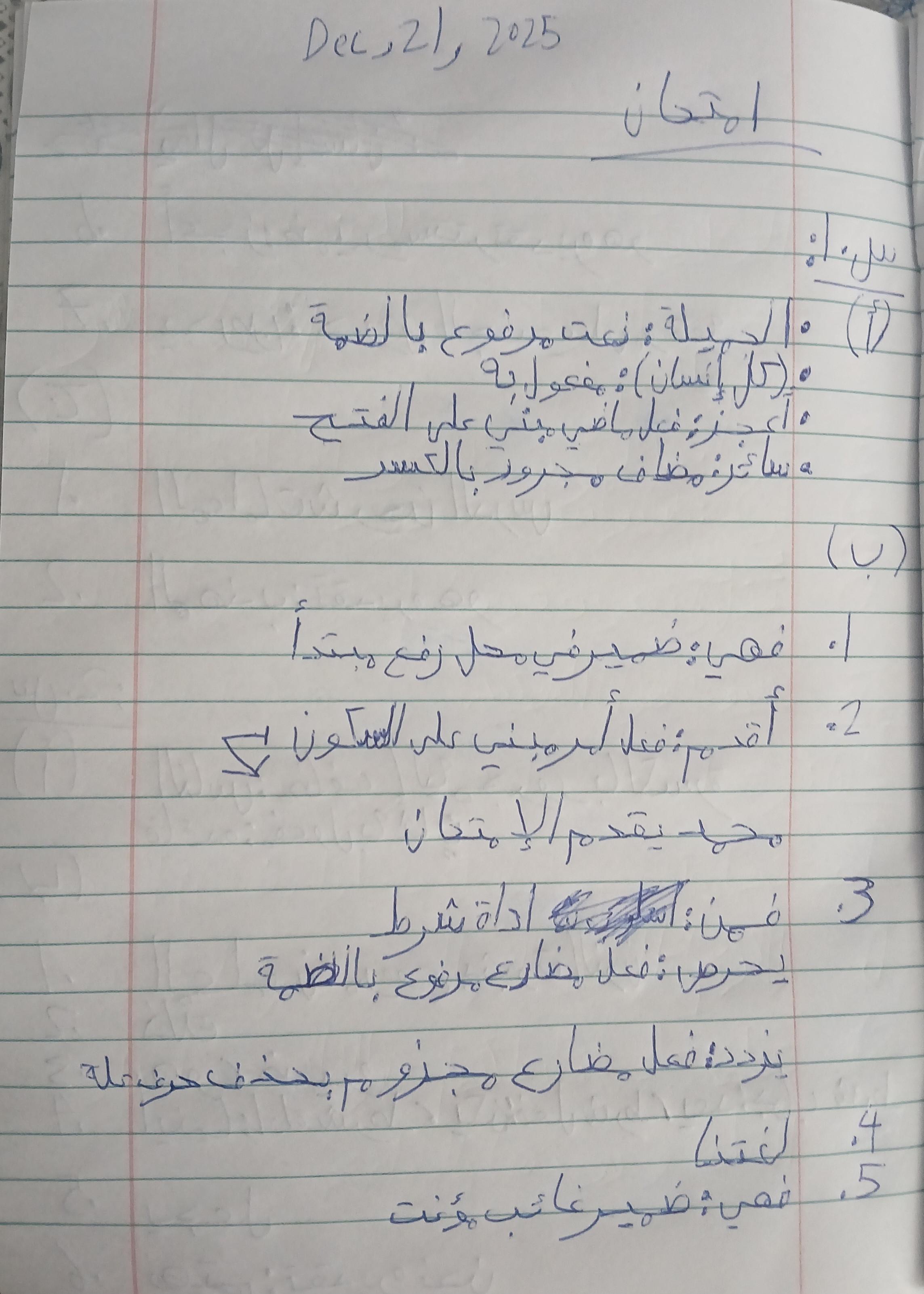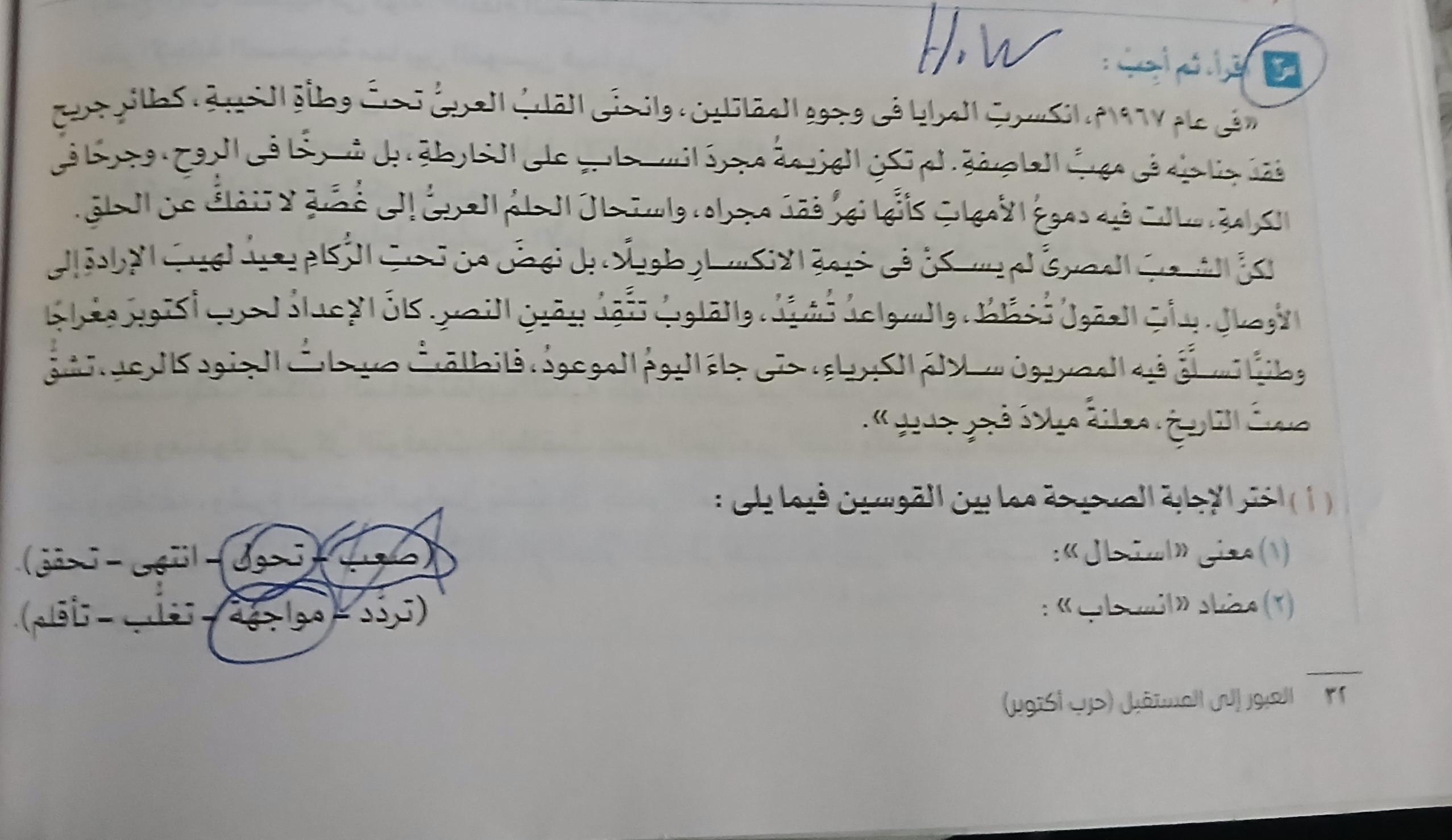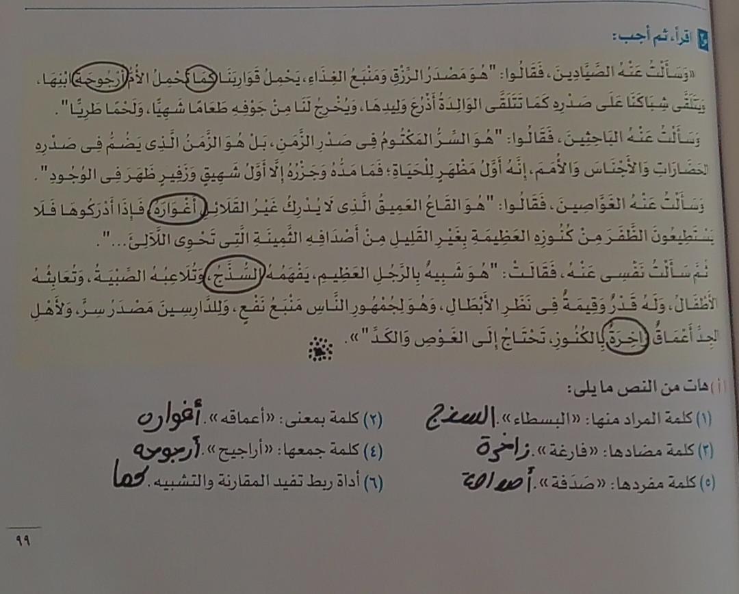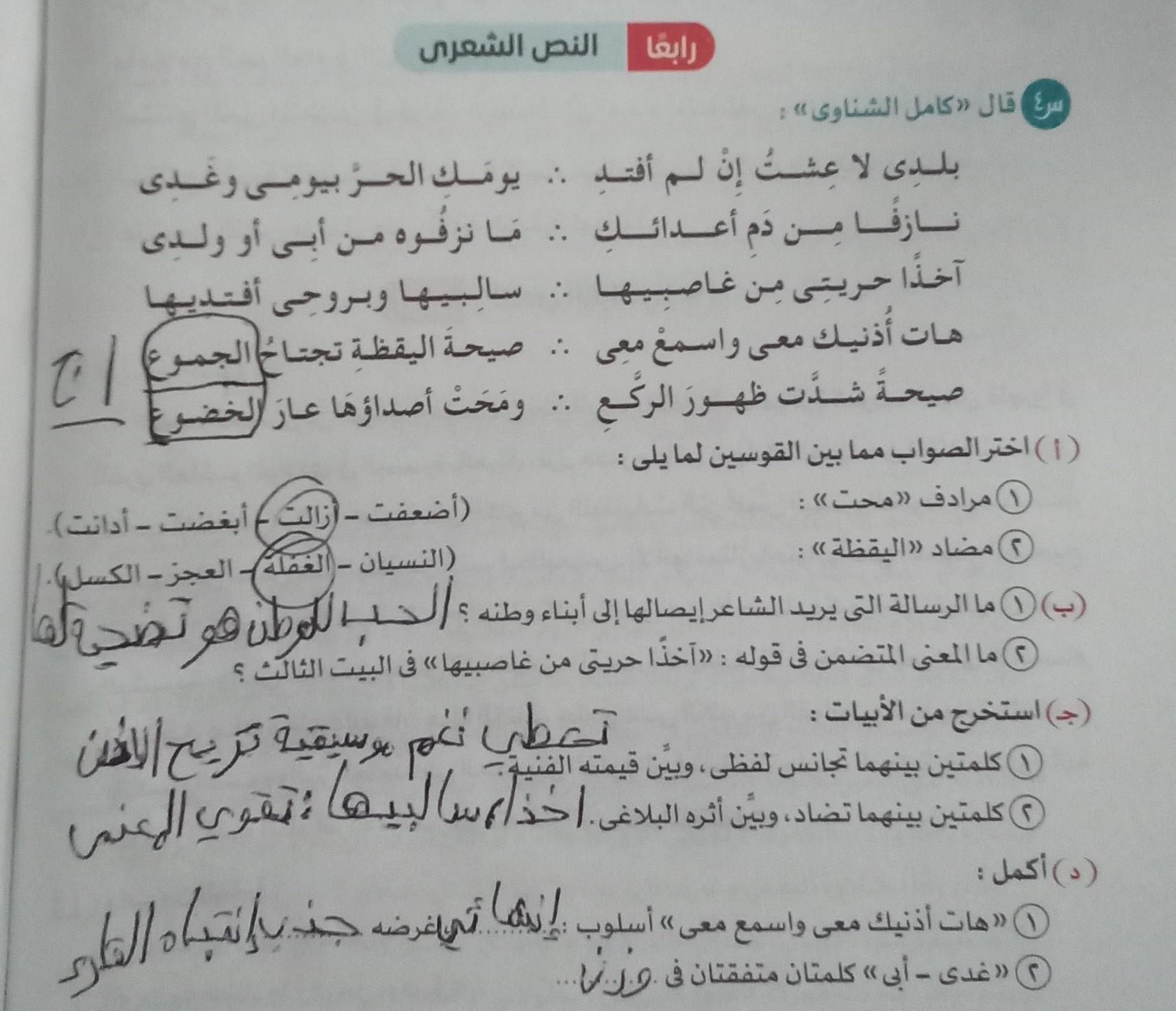 واجب العربي اليوم + انا اول واحد يكتب الواجب