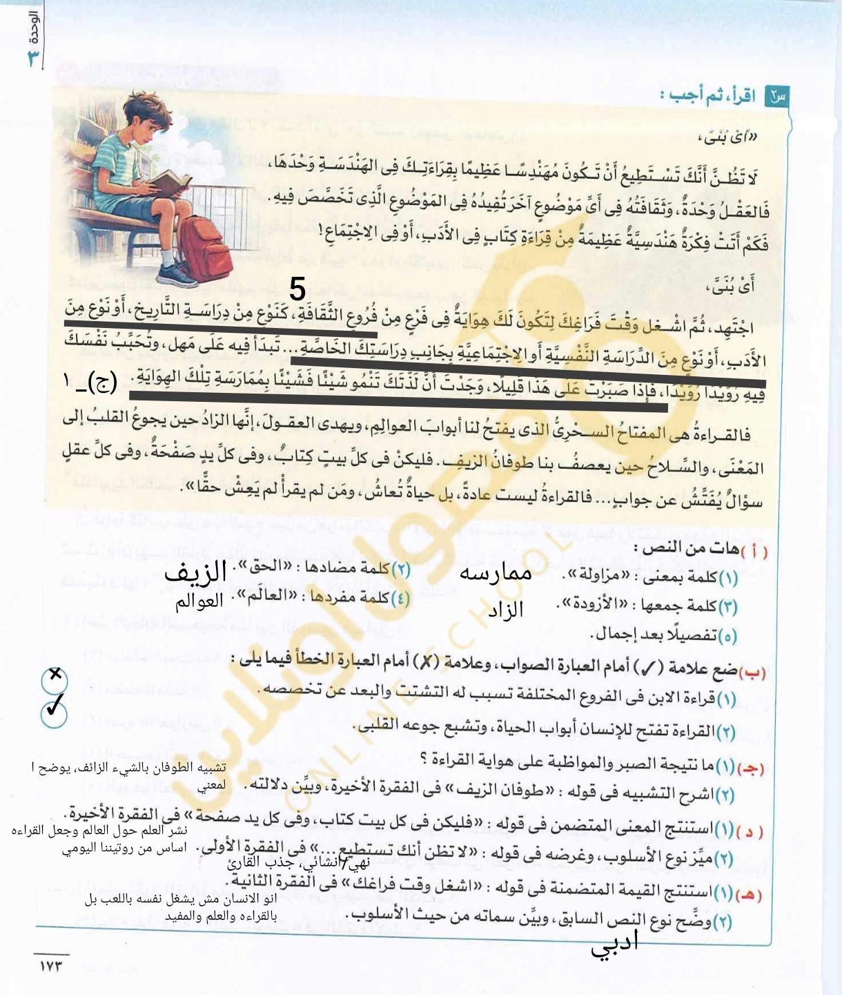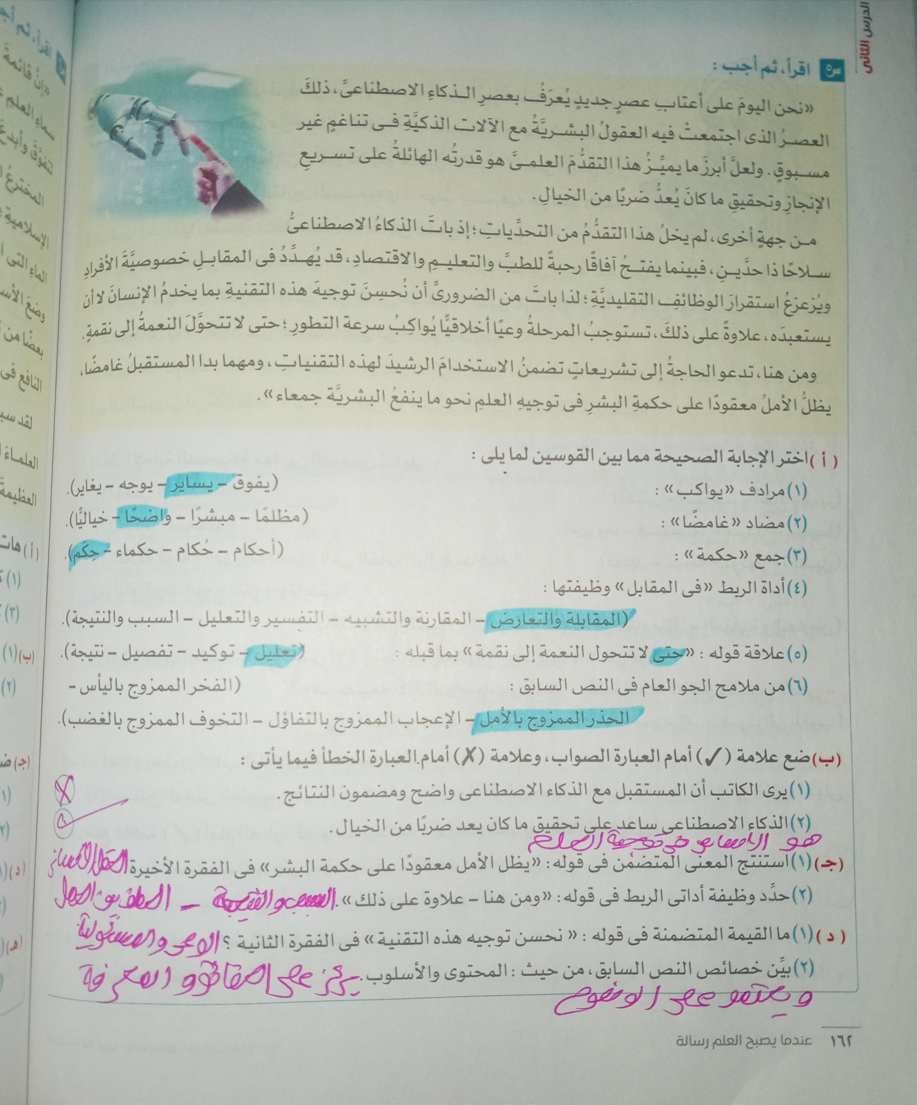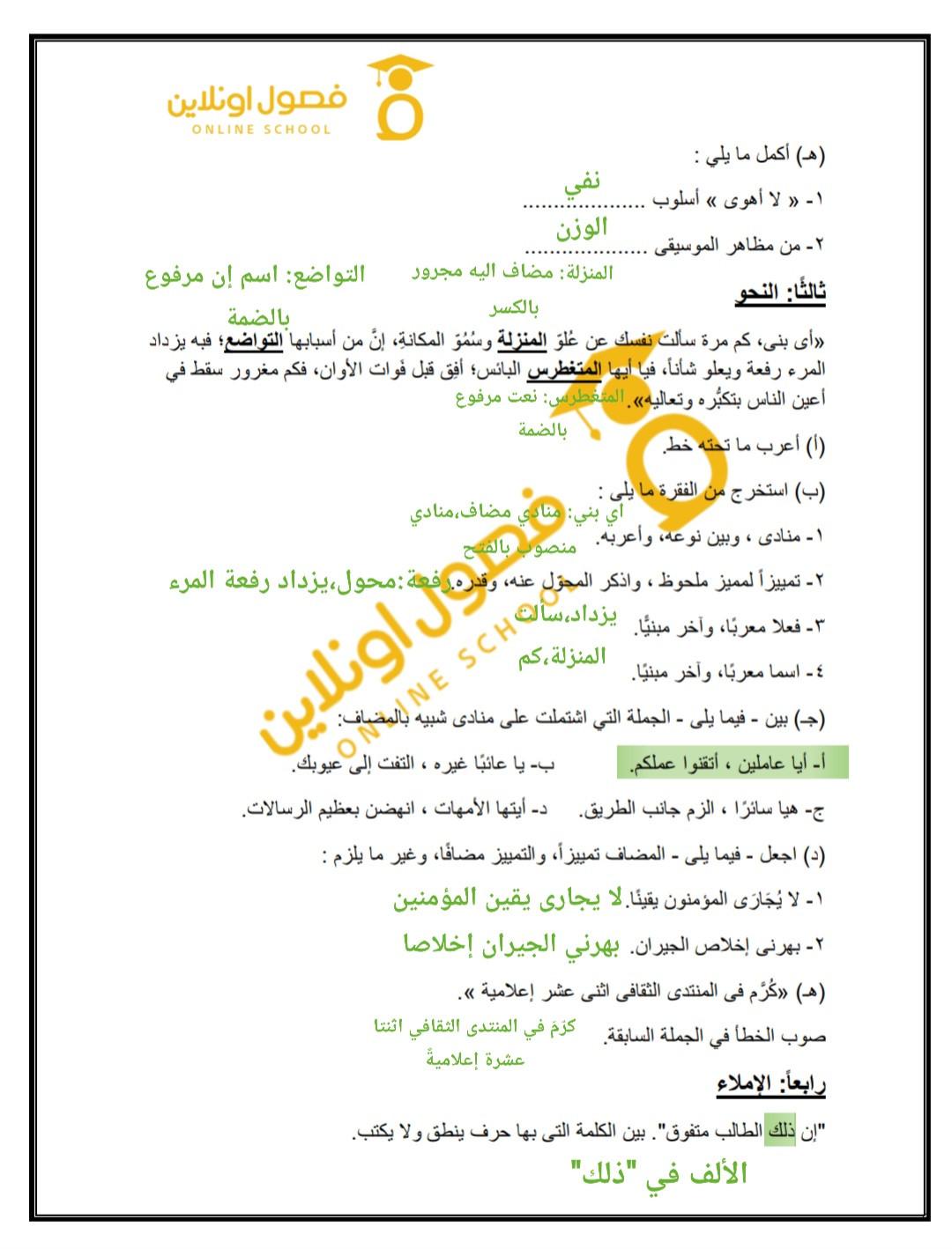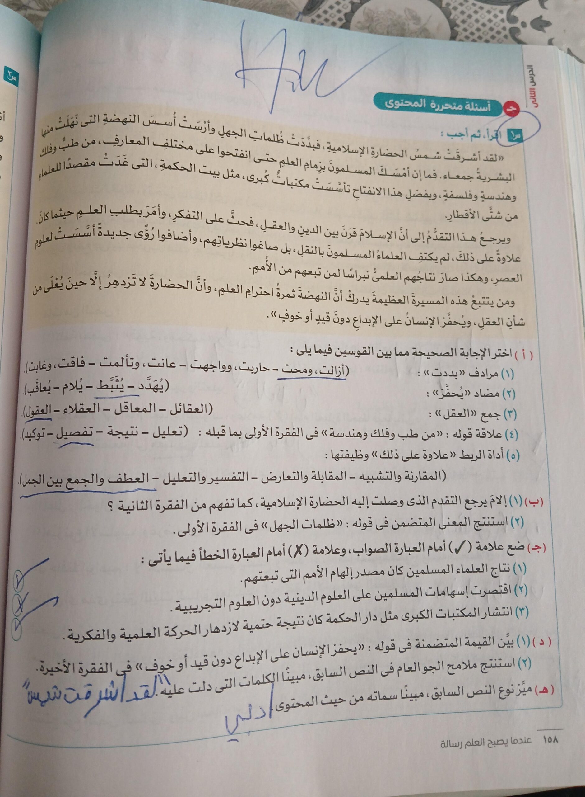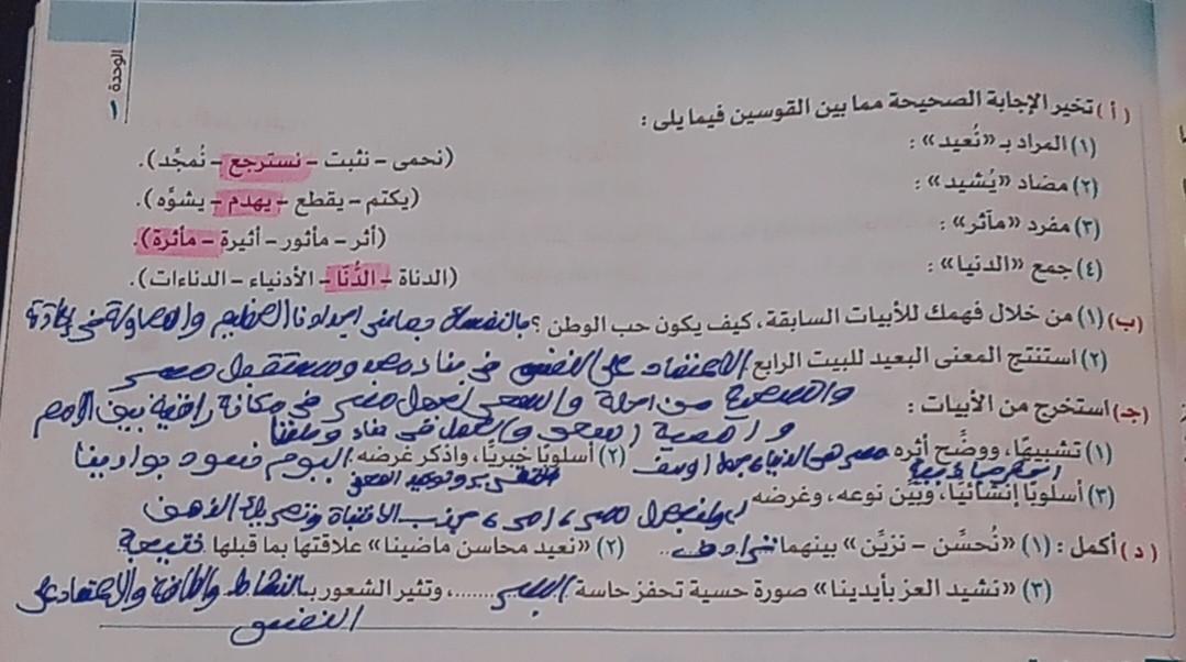 واجب العربي اليوم + انا اول واحد يكتب الواجب