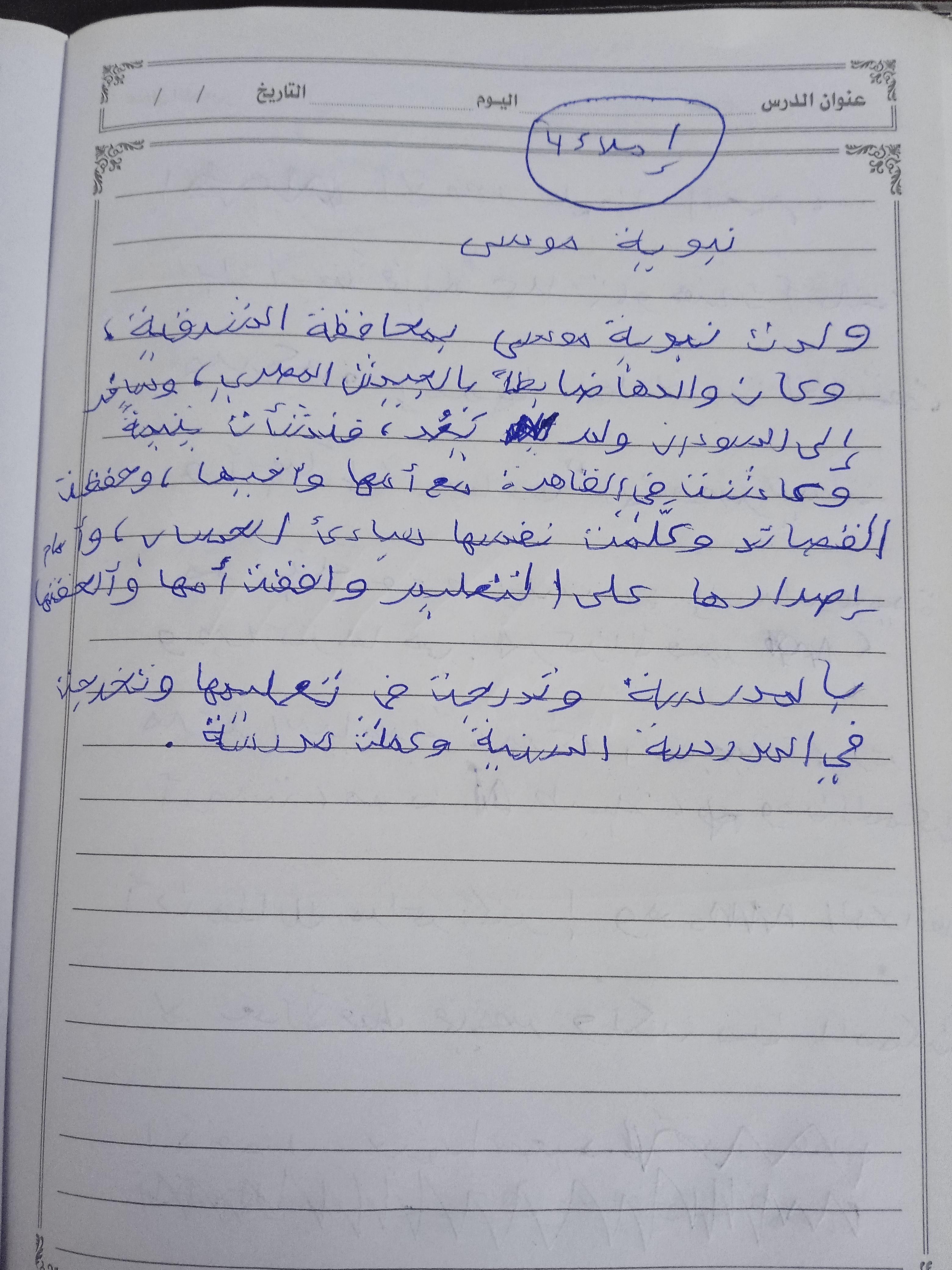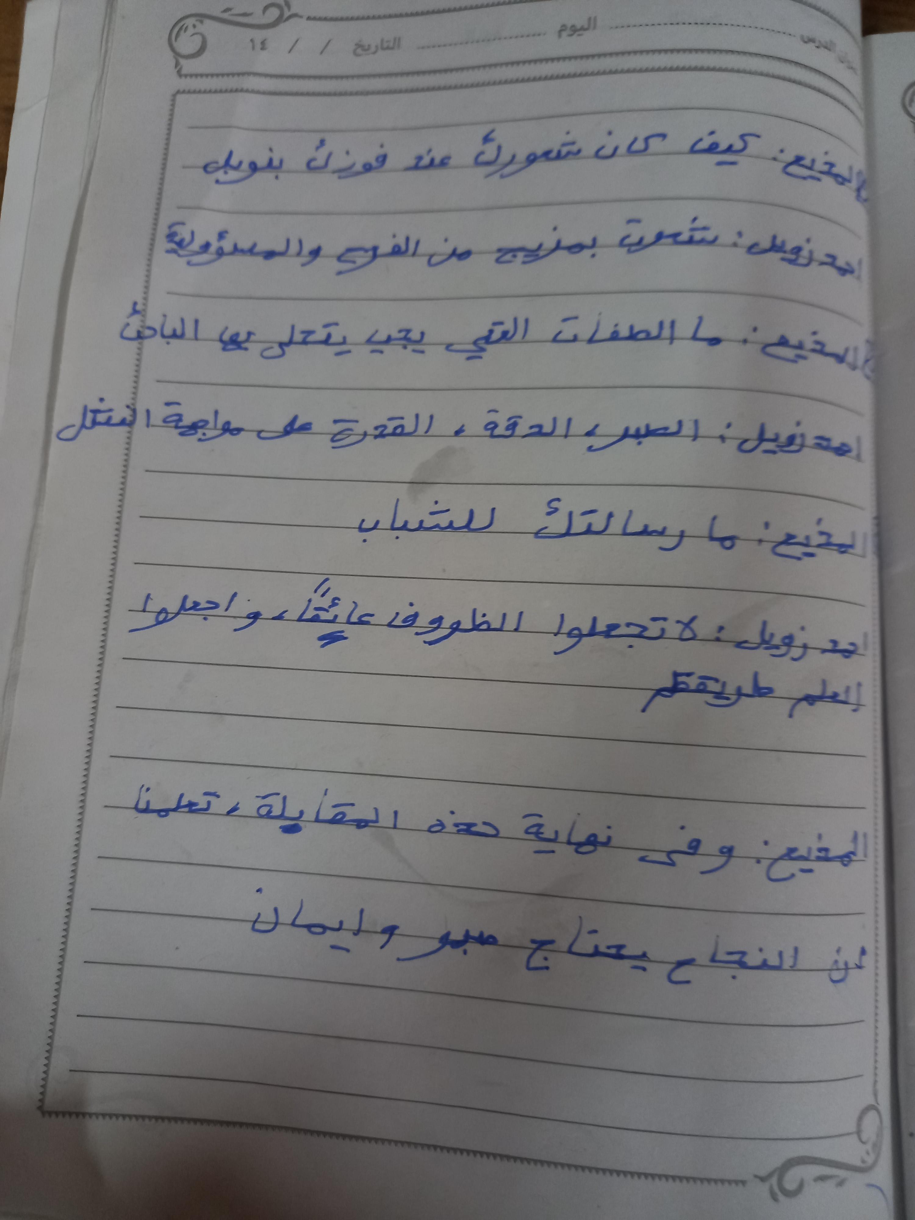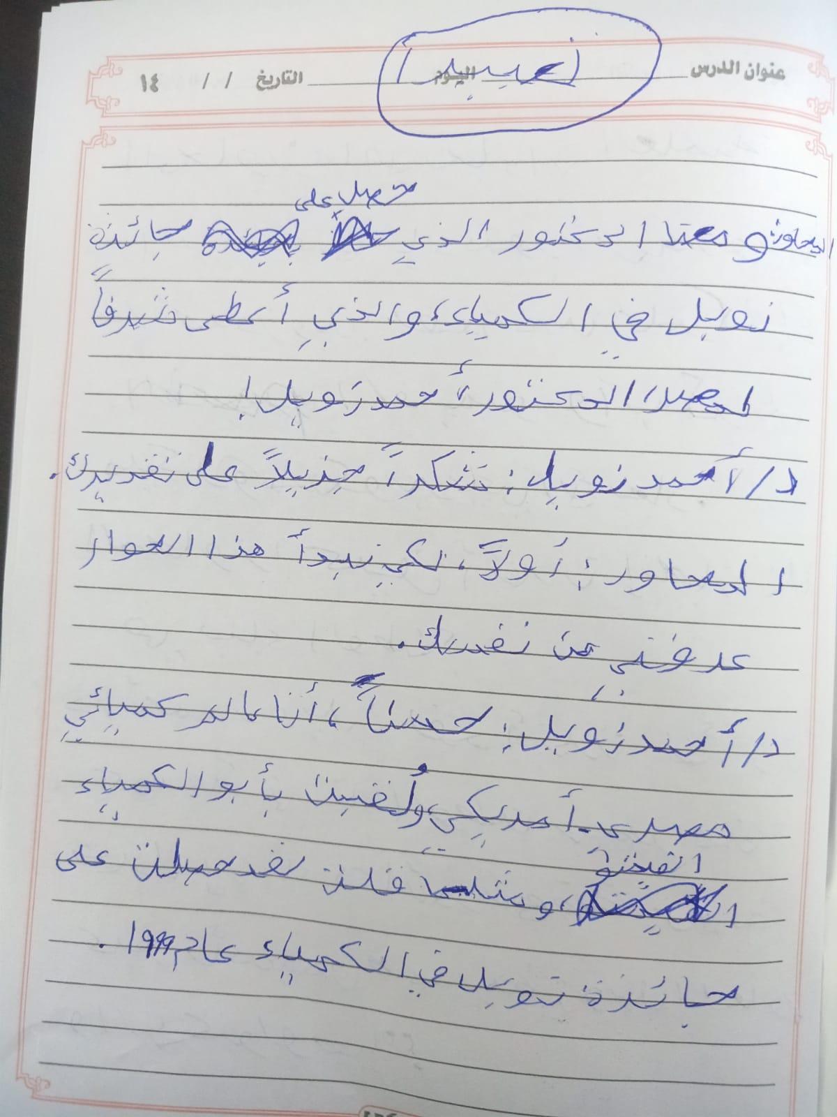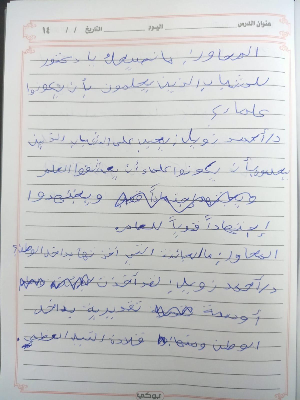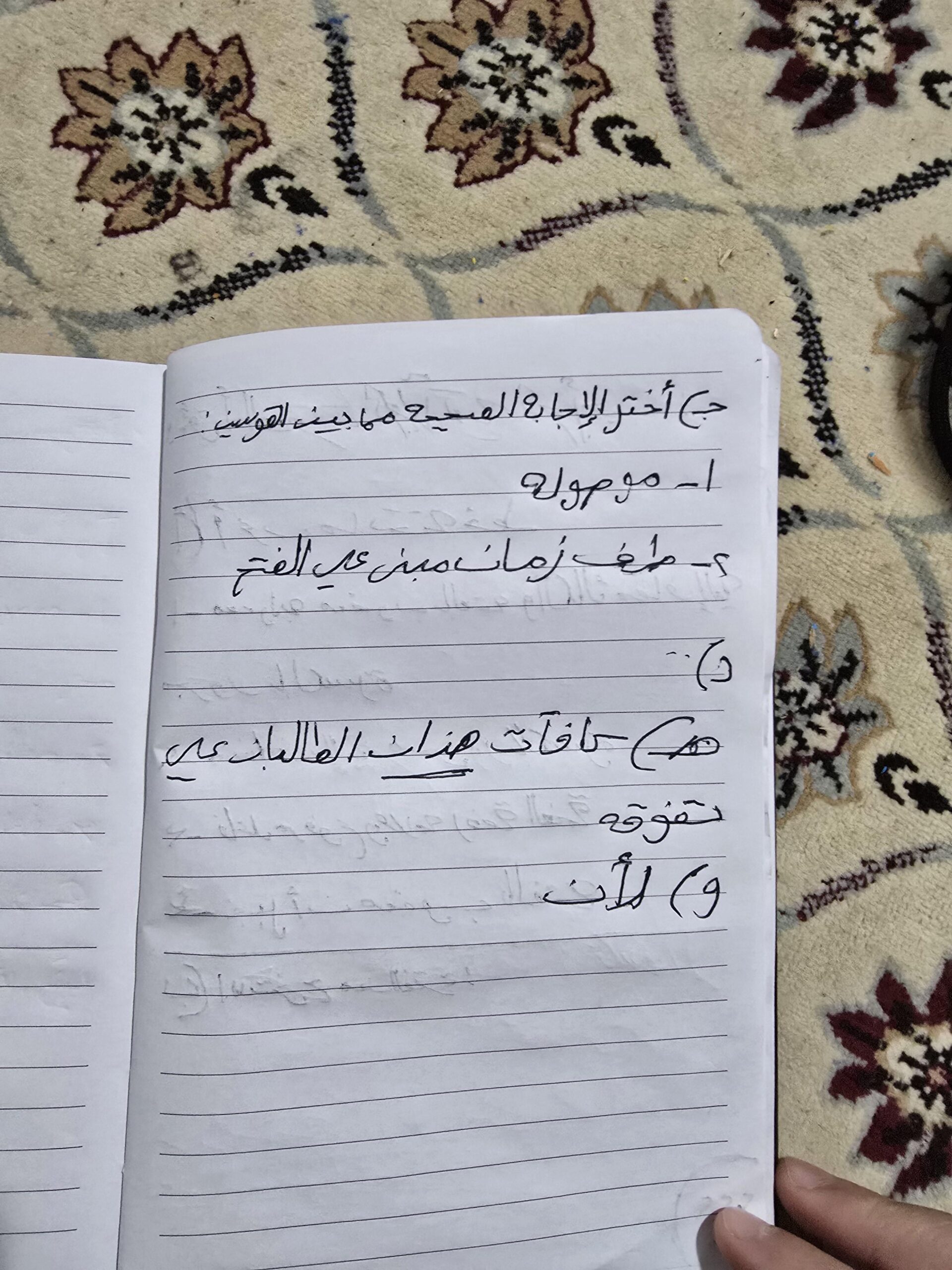 معلشي يا مستر معرفتش اكتبه في الكراسه لأن الوقت بتاع الامتحان فا كتبته كده اسرع