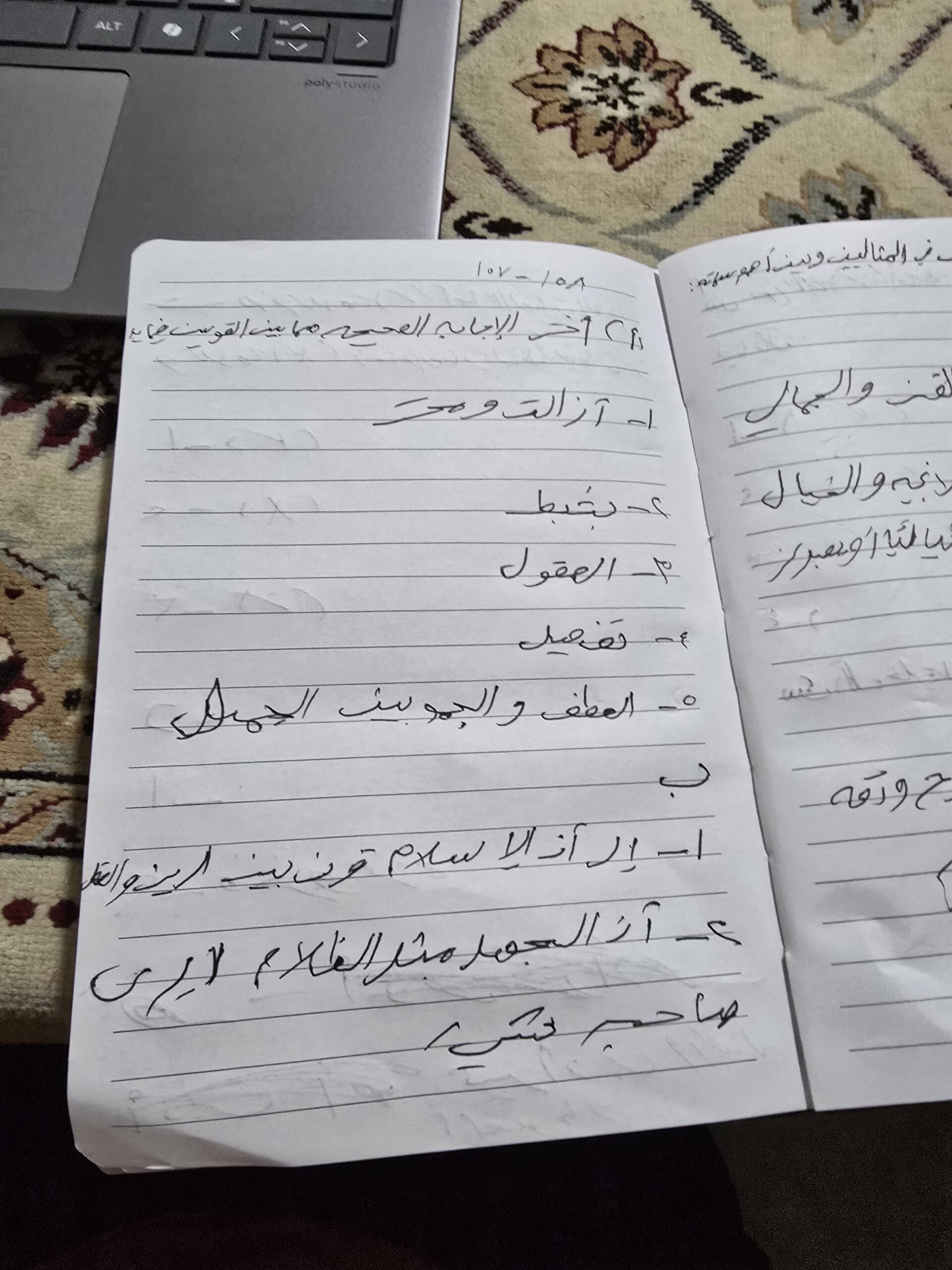الواجب.. نذاكر جيدا لامتحان الغد ❤️