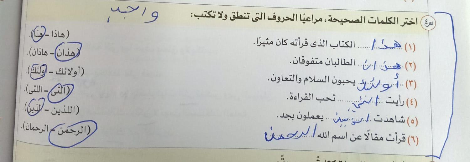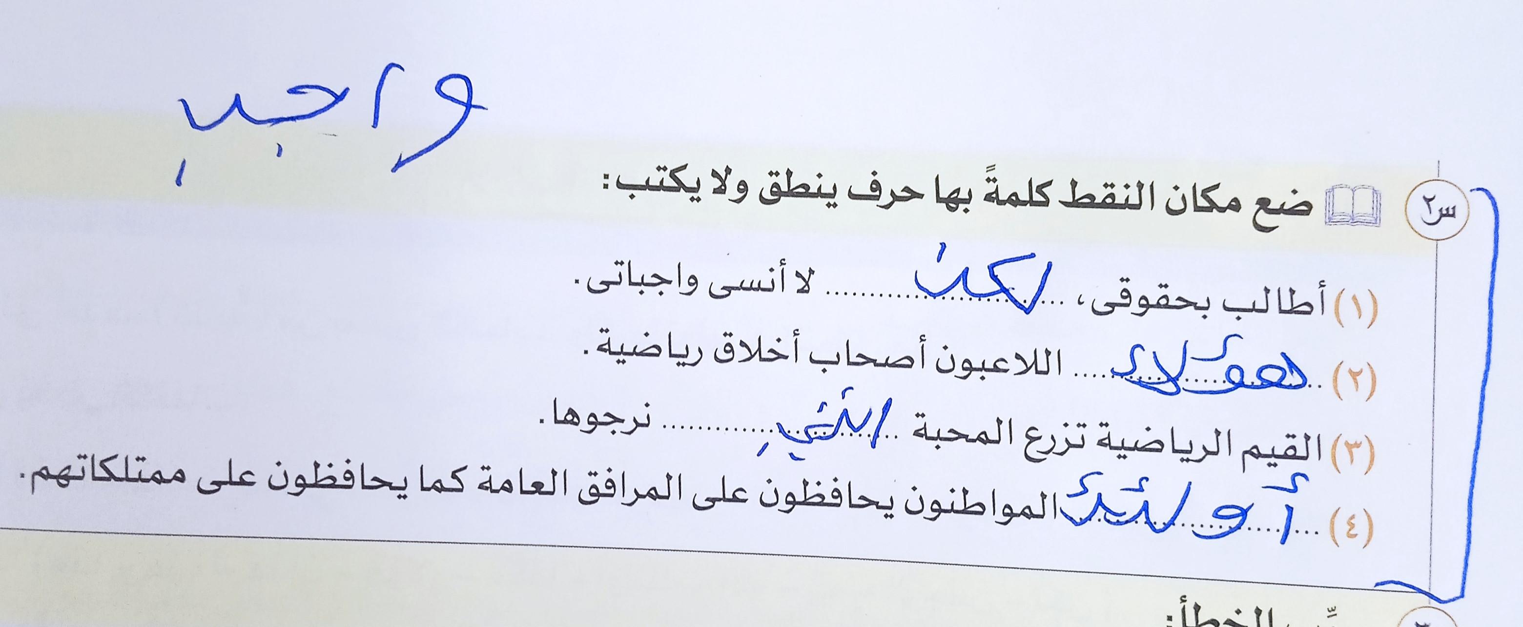 الواجب ليوم ٢٠٢٦/٠٣/٢٦