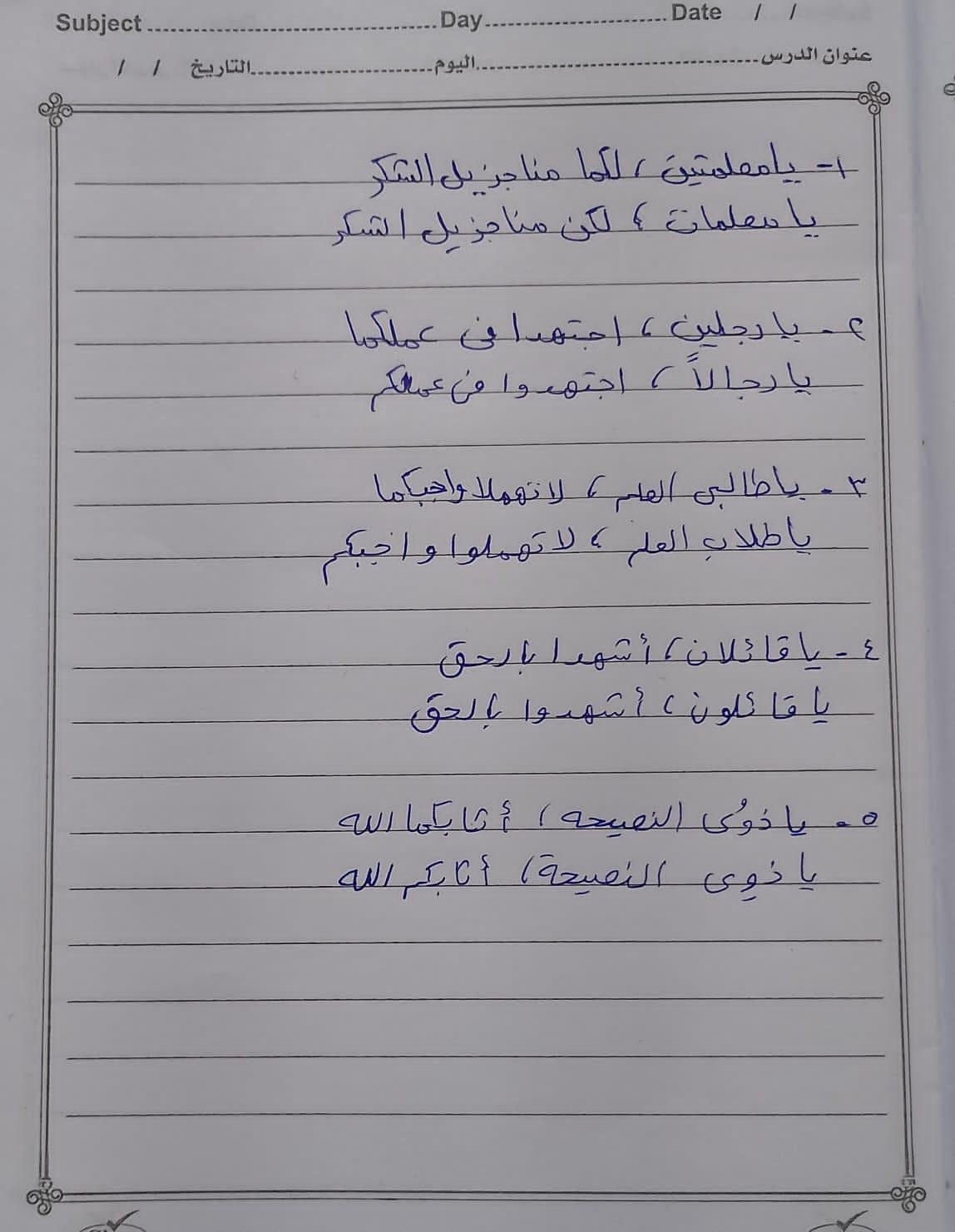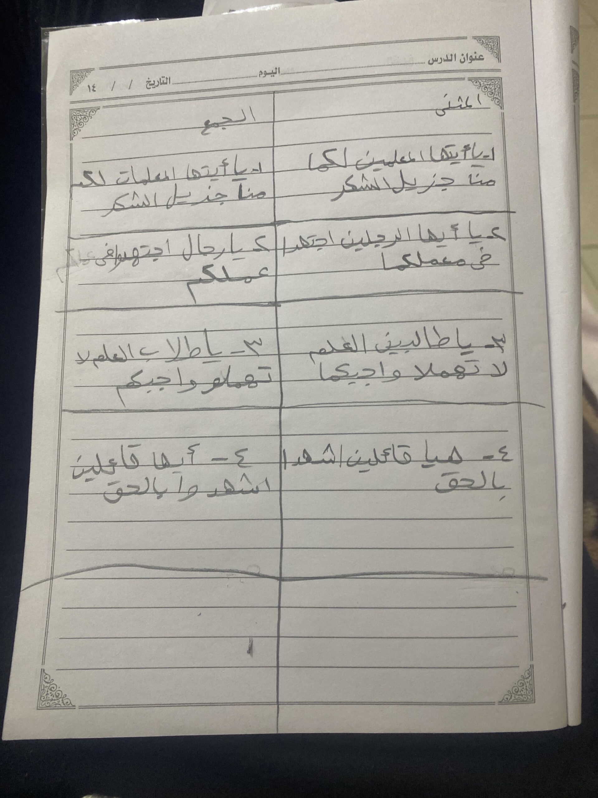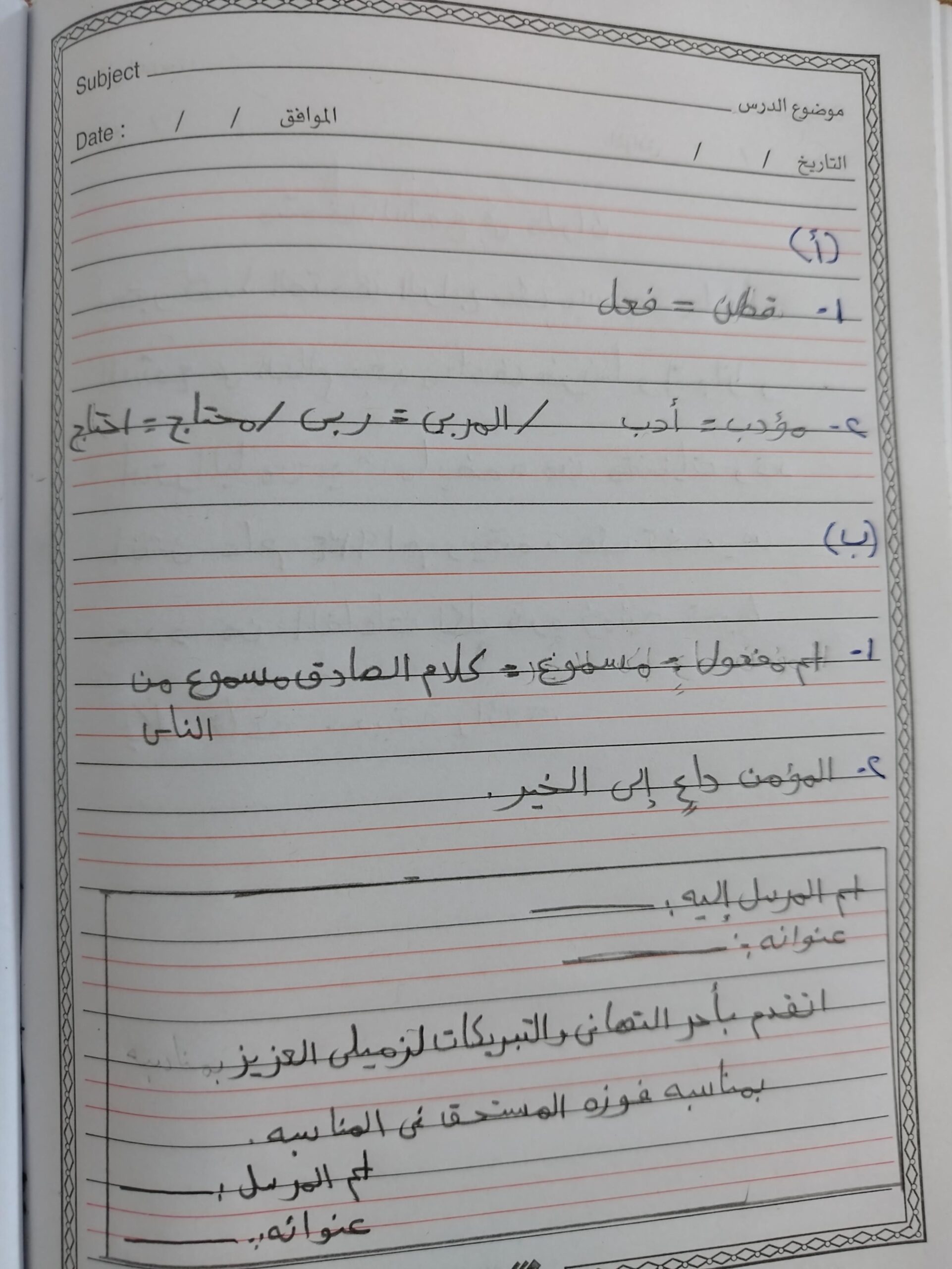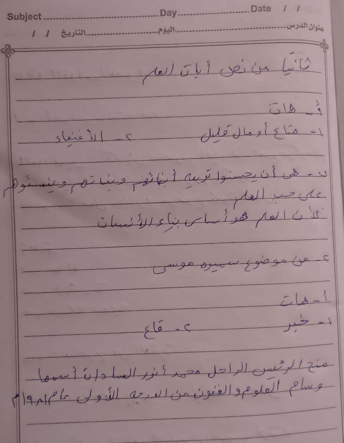 مس ممكن لو سمحتي حضرتك تبعتي الي اخدنا والي علينا حفظ والي عينا من واجبات