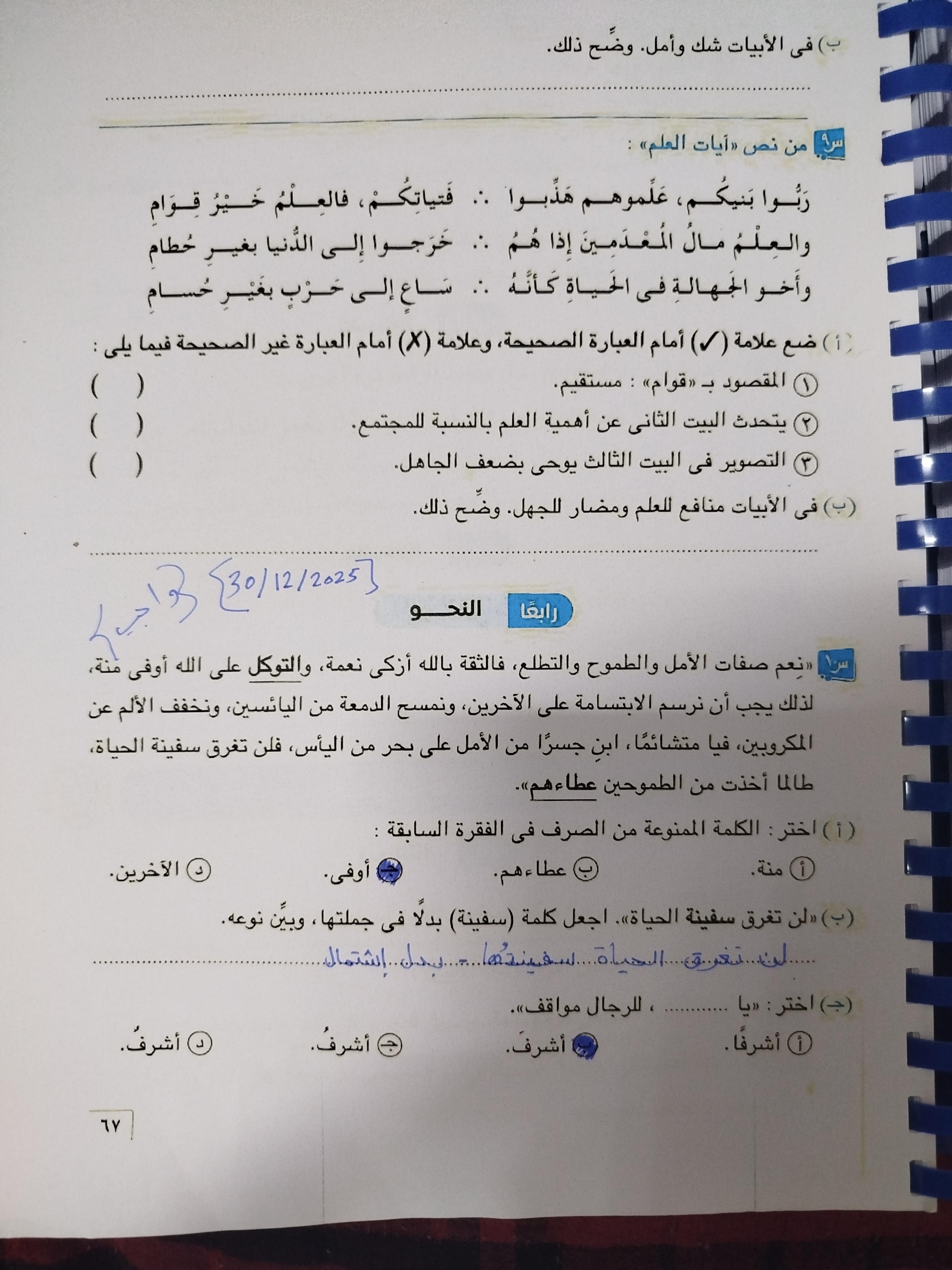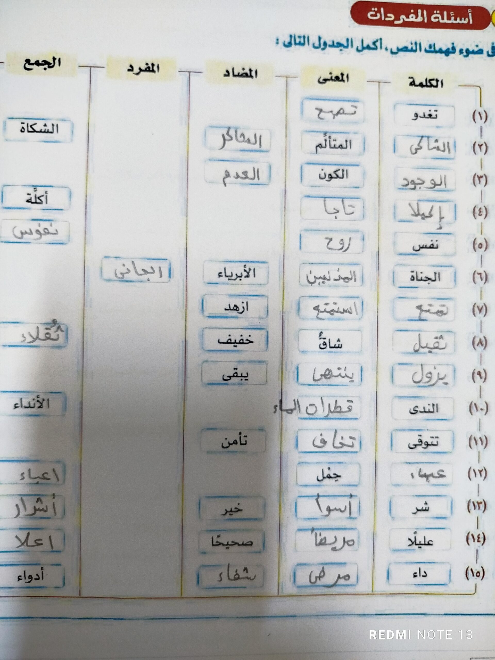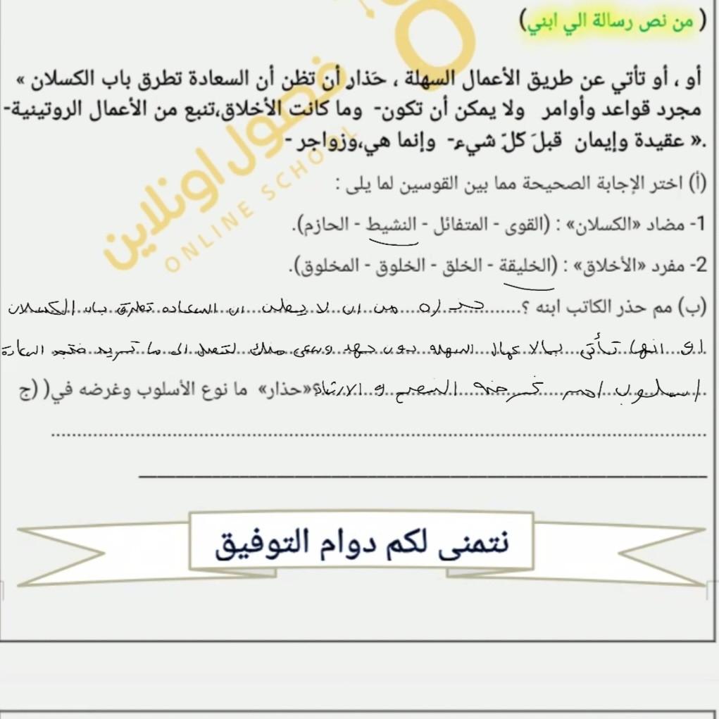 مس ممكن لو سمحتي حضرتك تبعتي الي اخدنا والي علينا حفظ والي عينا من واجبات