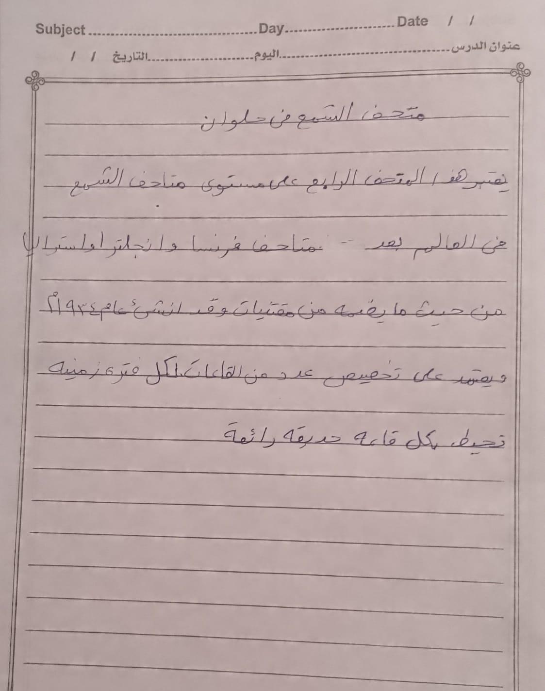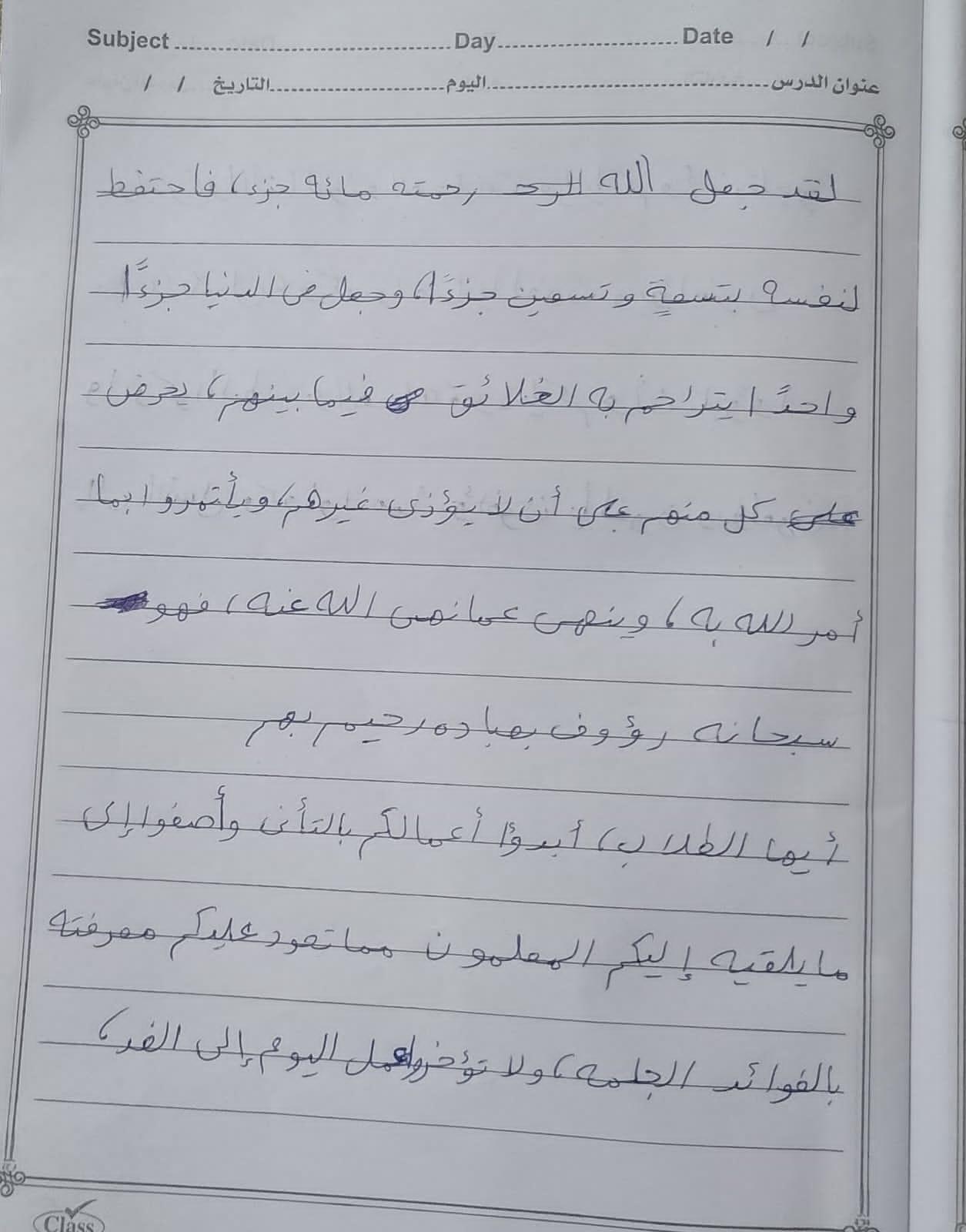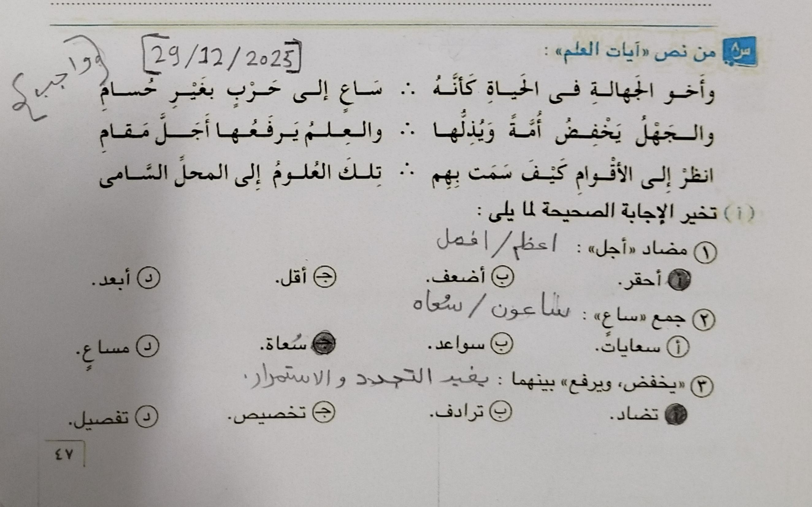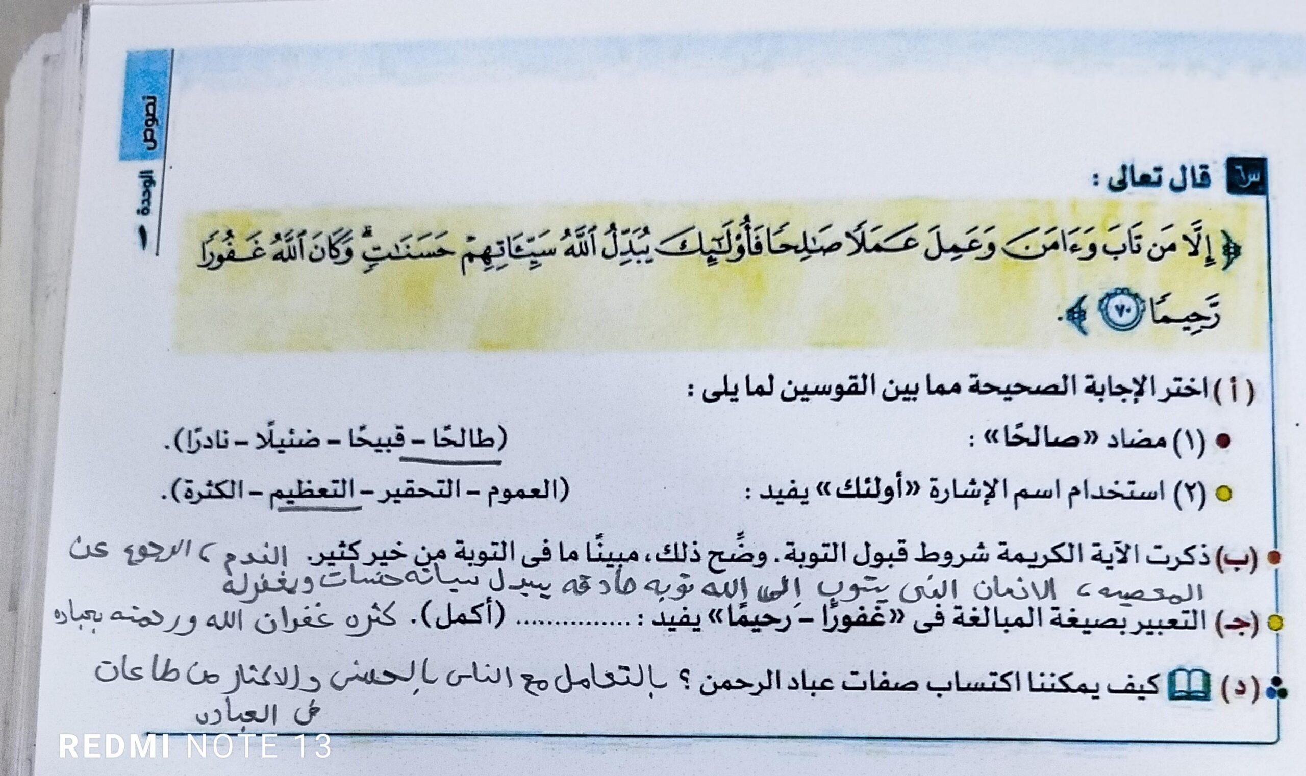 مس ممكن لو سمحتي حضرتك تبعتي الي اخدنا والي علينا حفظ والي عينا من واجبات