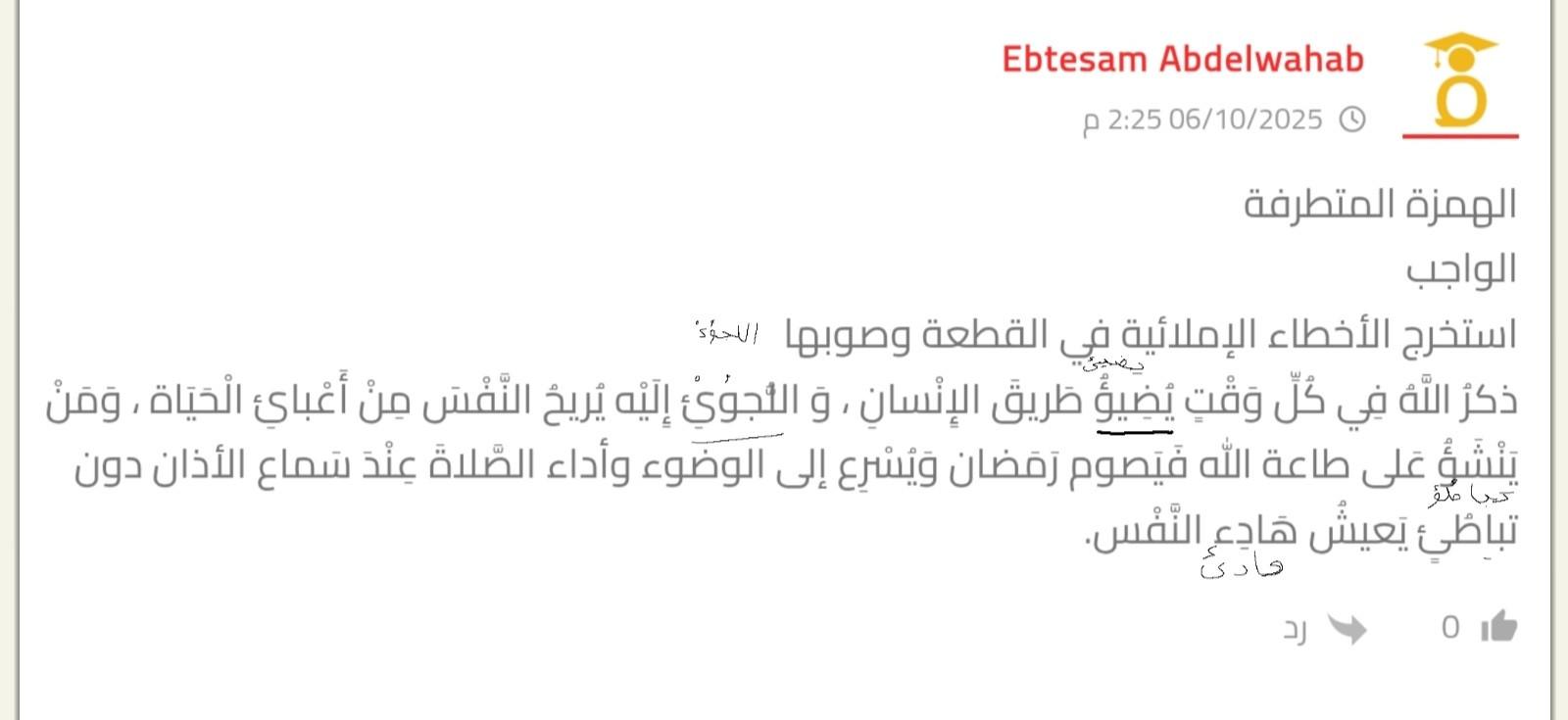 استخرج الأخطاء الإملائية في القطعة وصوبها