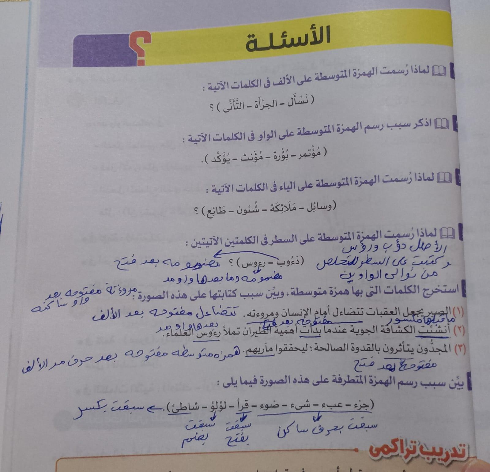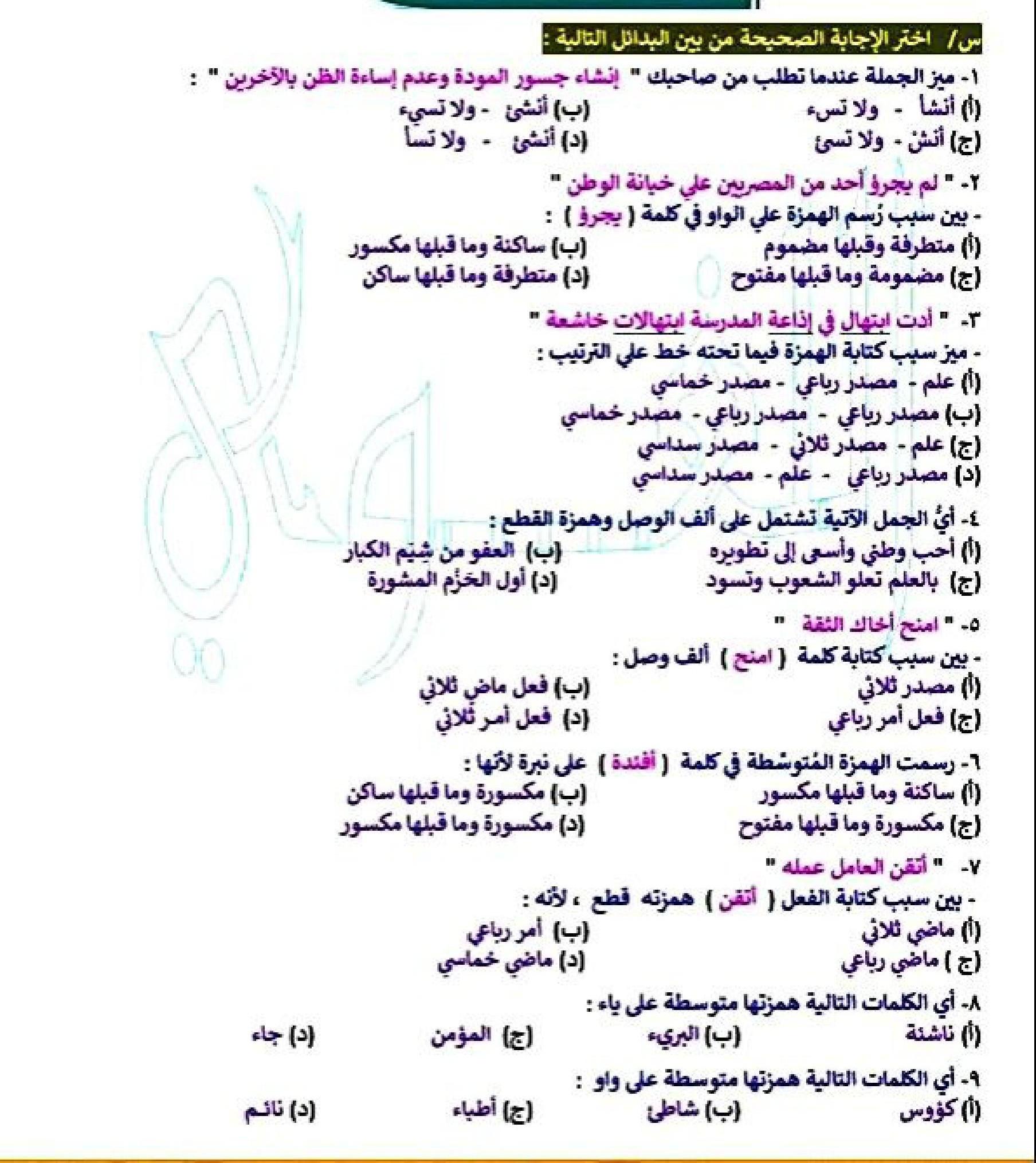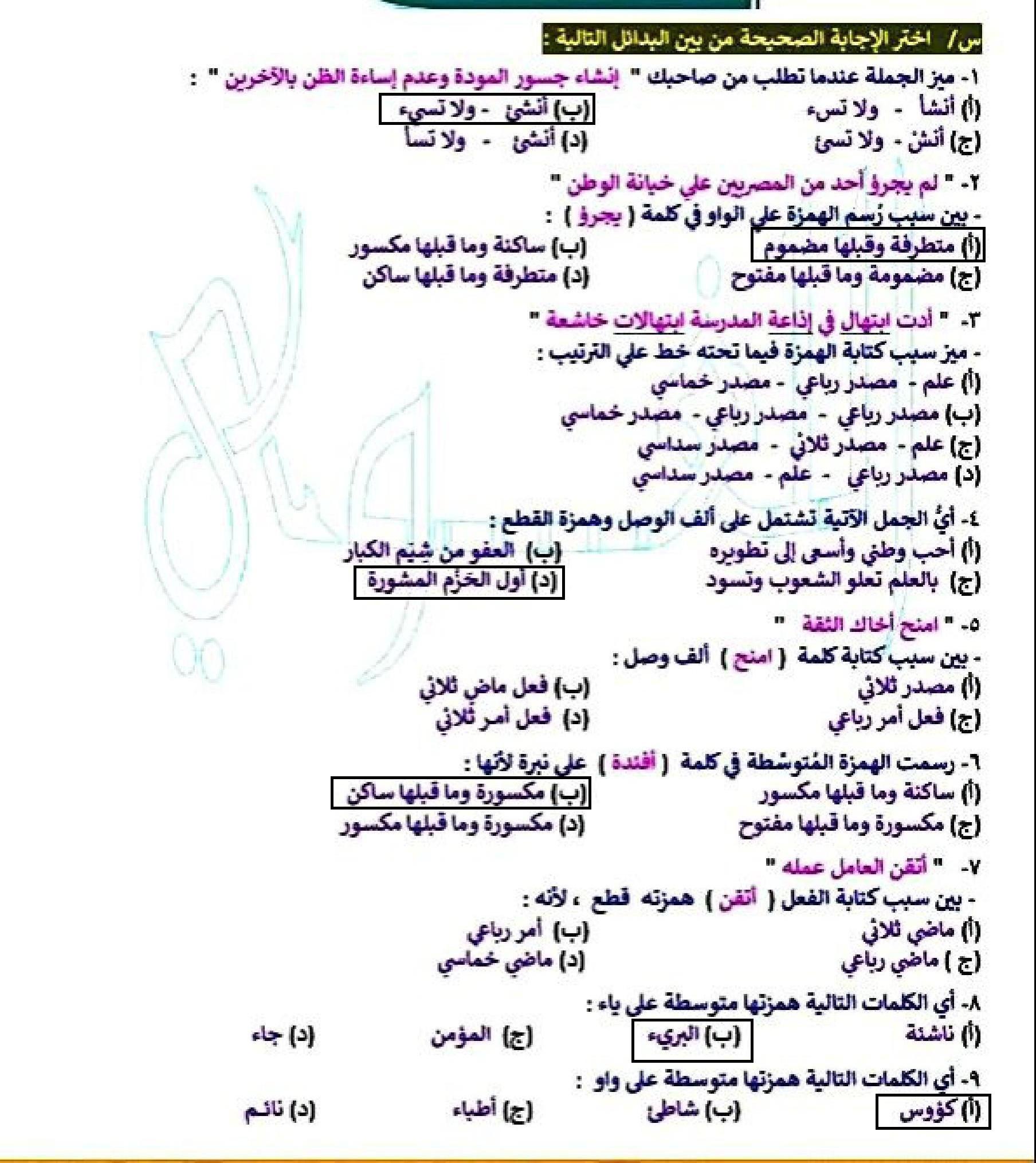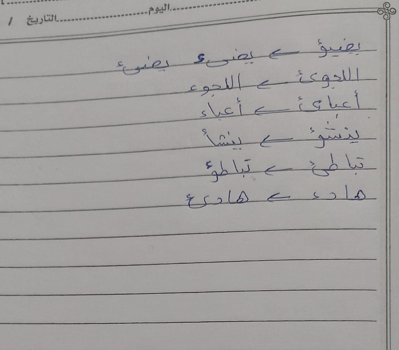 (يضيؤ-يضيئ) ، (اللجوئ-اللجوء) ، (اعبائ-اعباء) ، (ينشؤ-ينشأ) ، (تباطئ-تباطؤ) ، (هادء-هادئ)