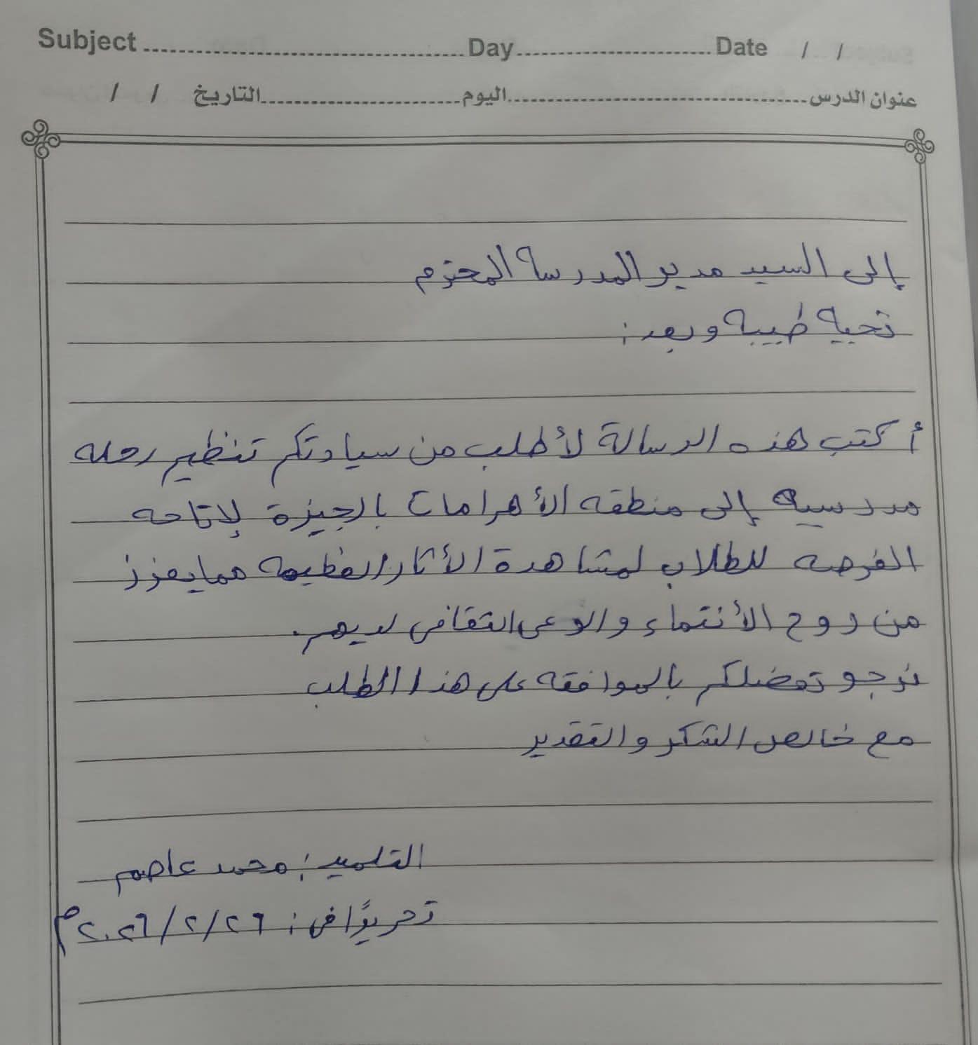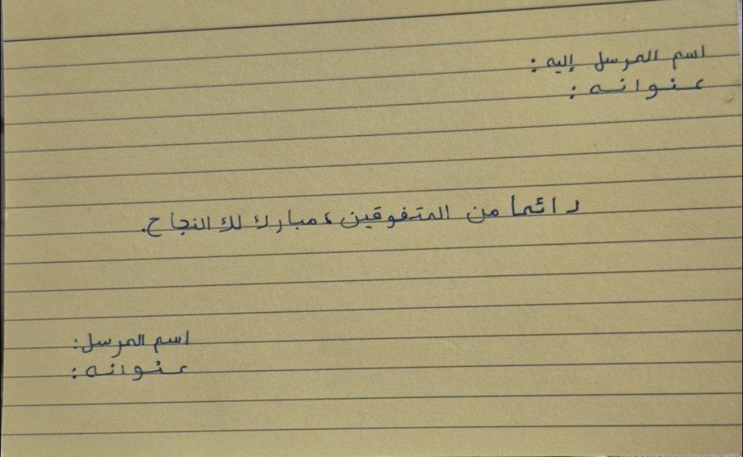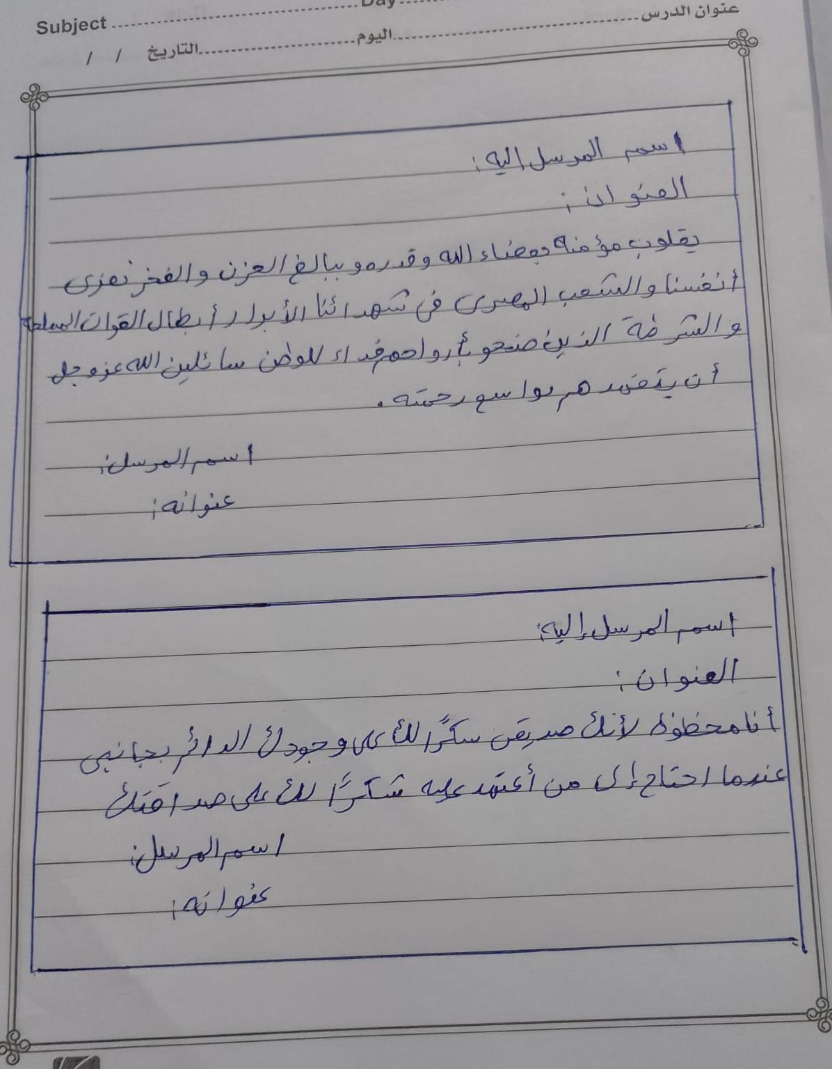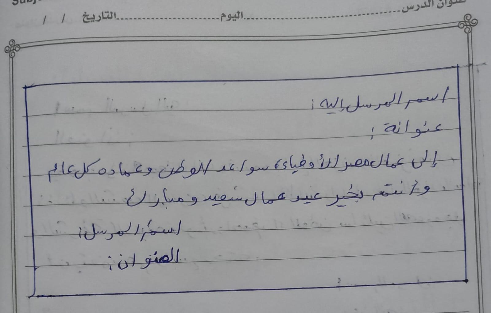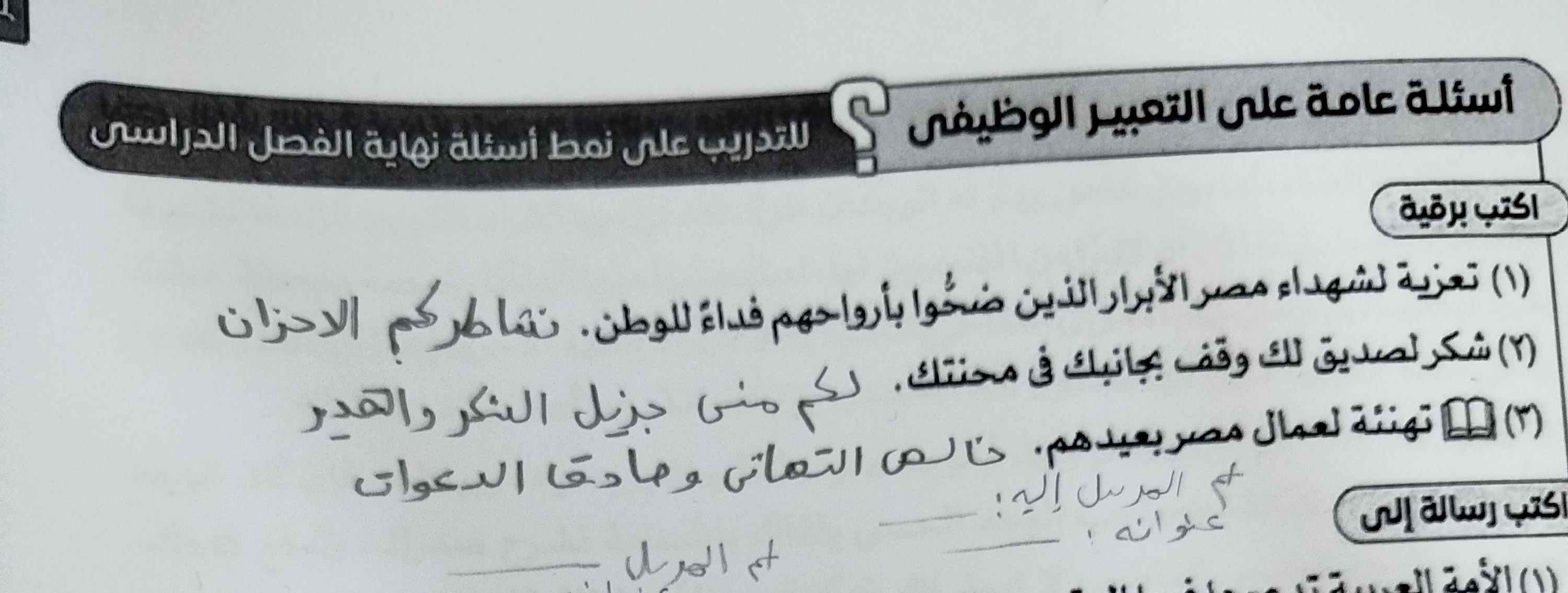 الواجب اكتب رساله الي صديقك تتدعوه لحضور عفل عيد ميلاد اخيك يوم 10 مارس