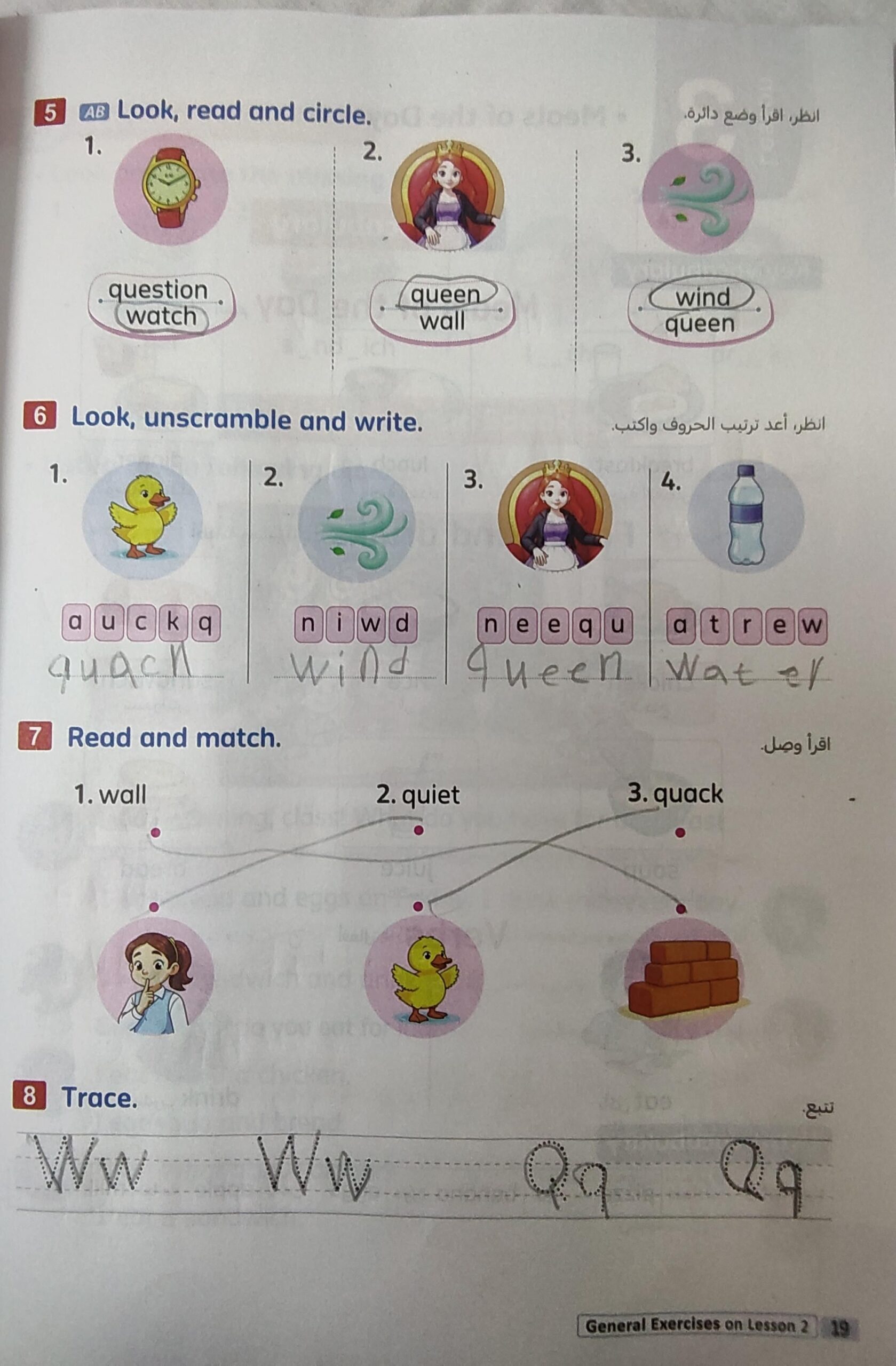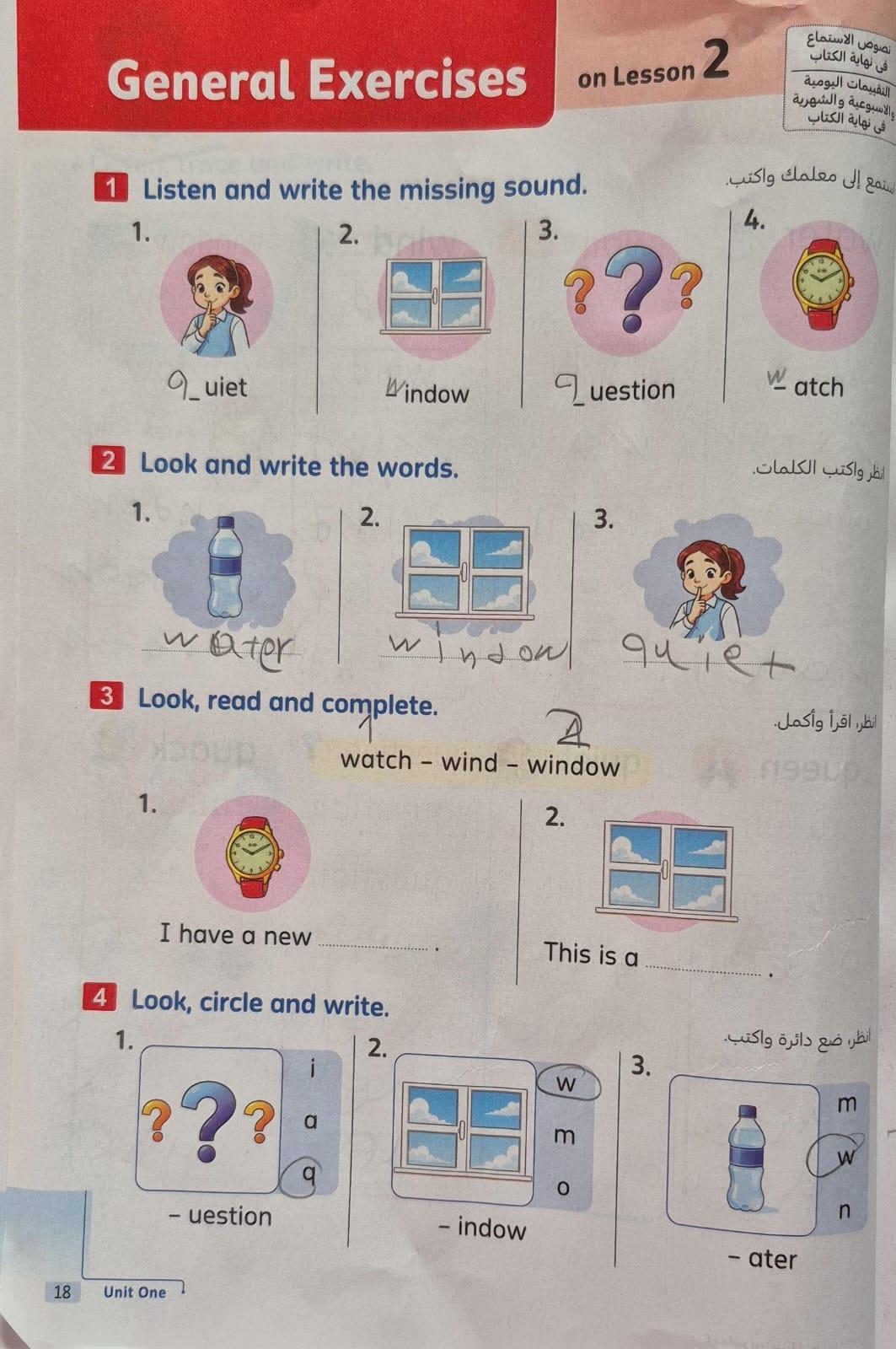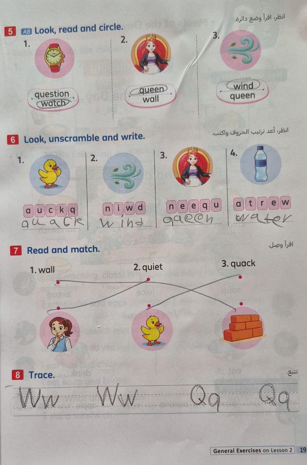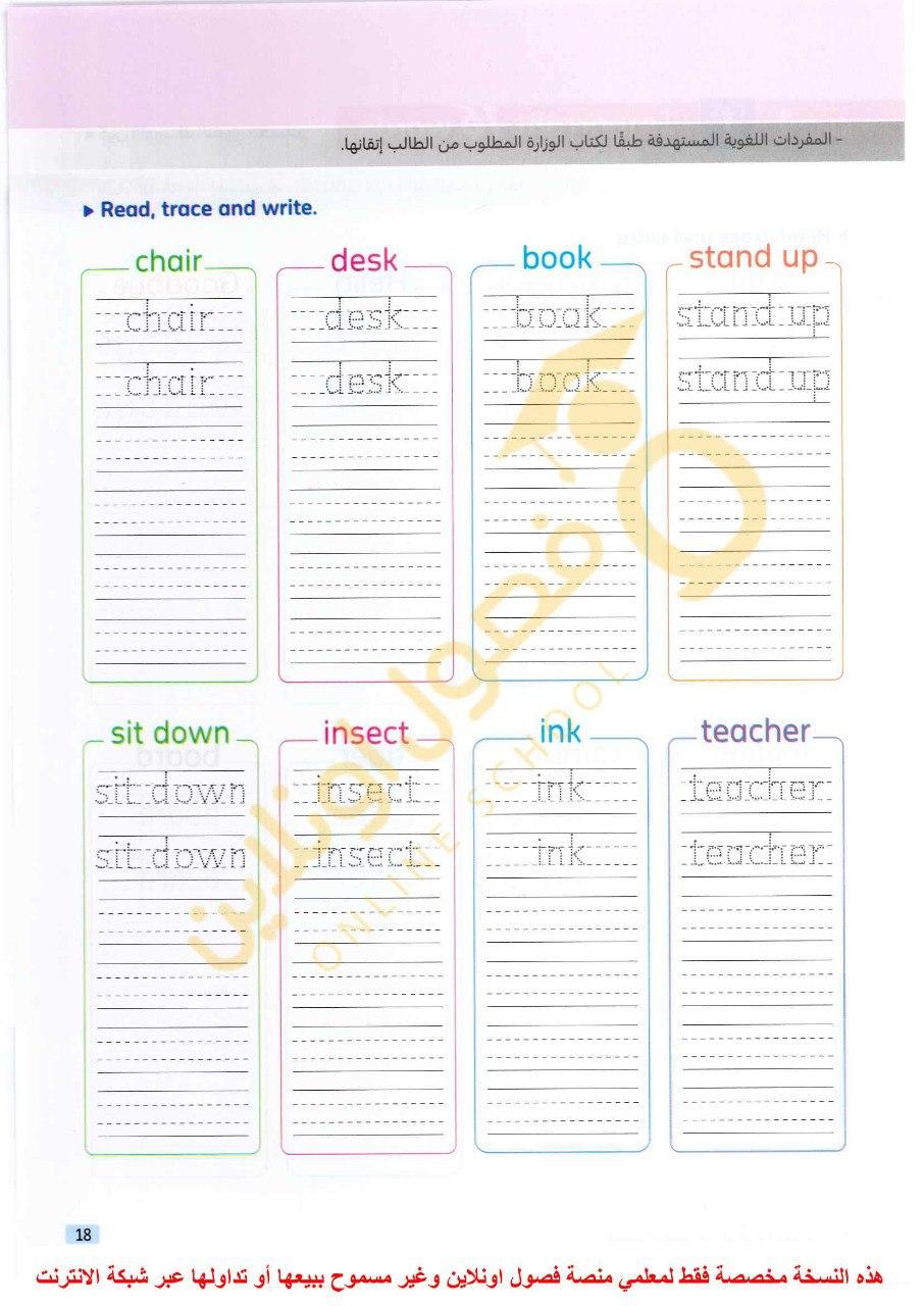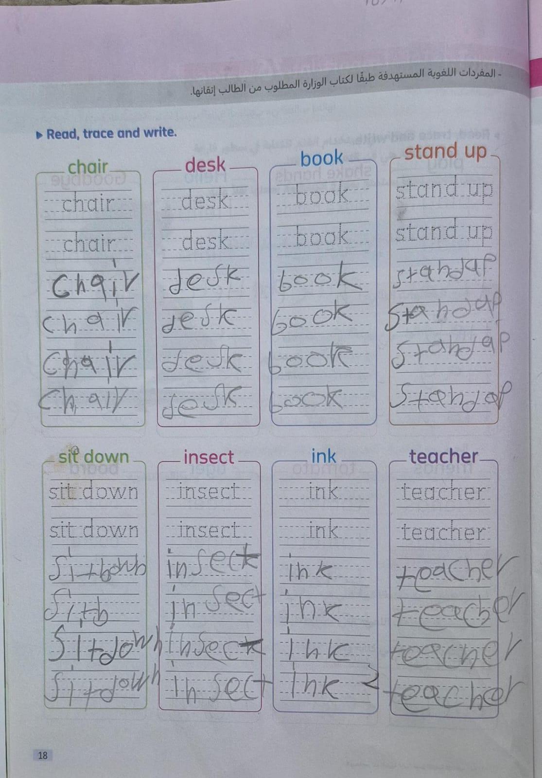 HW حفظ الكلمات وحل أسئلة الكتاب صفحة ١٨،١٩،٢٠